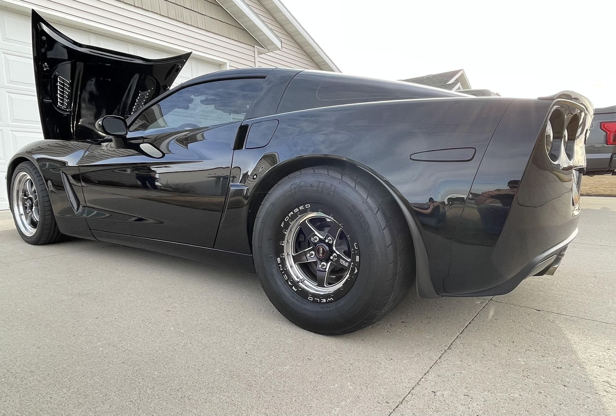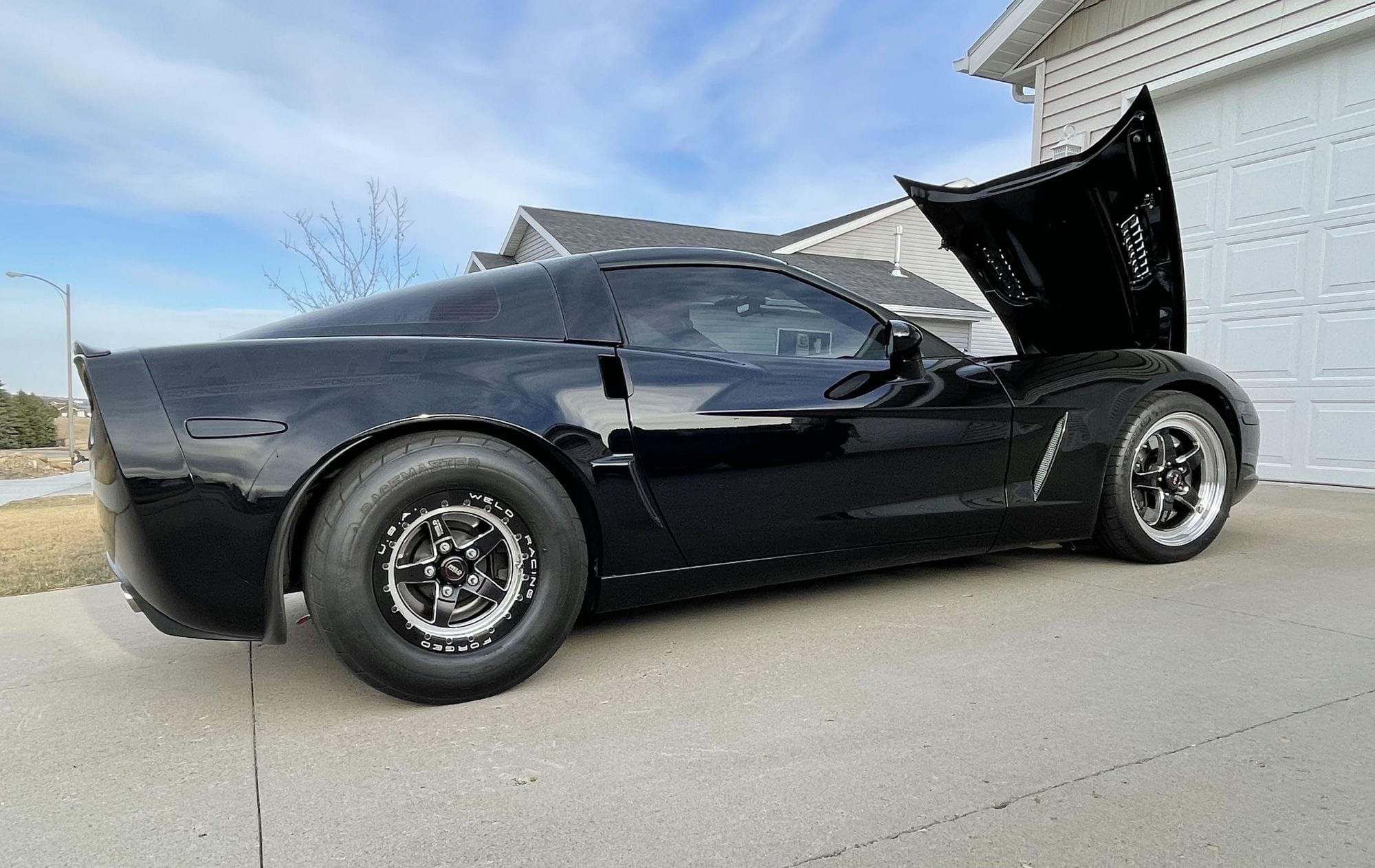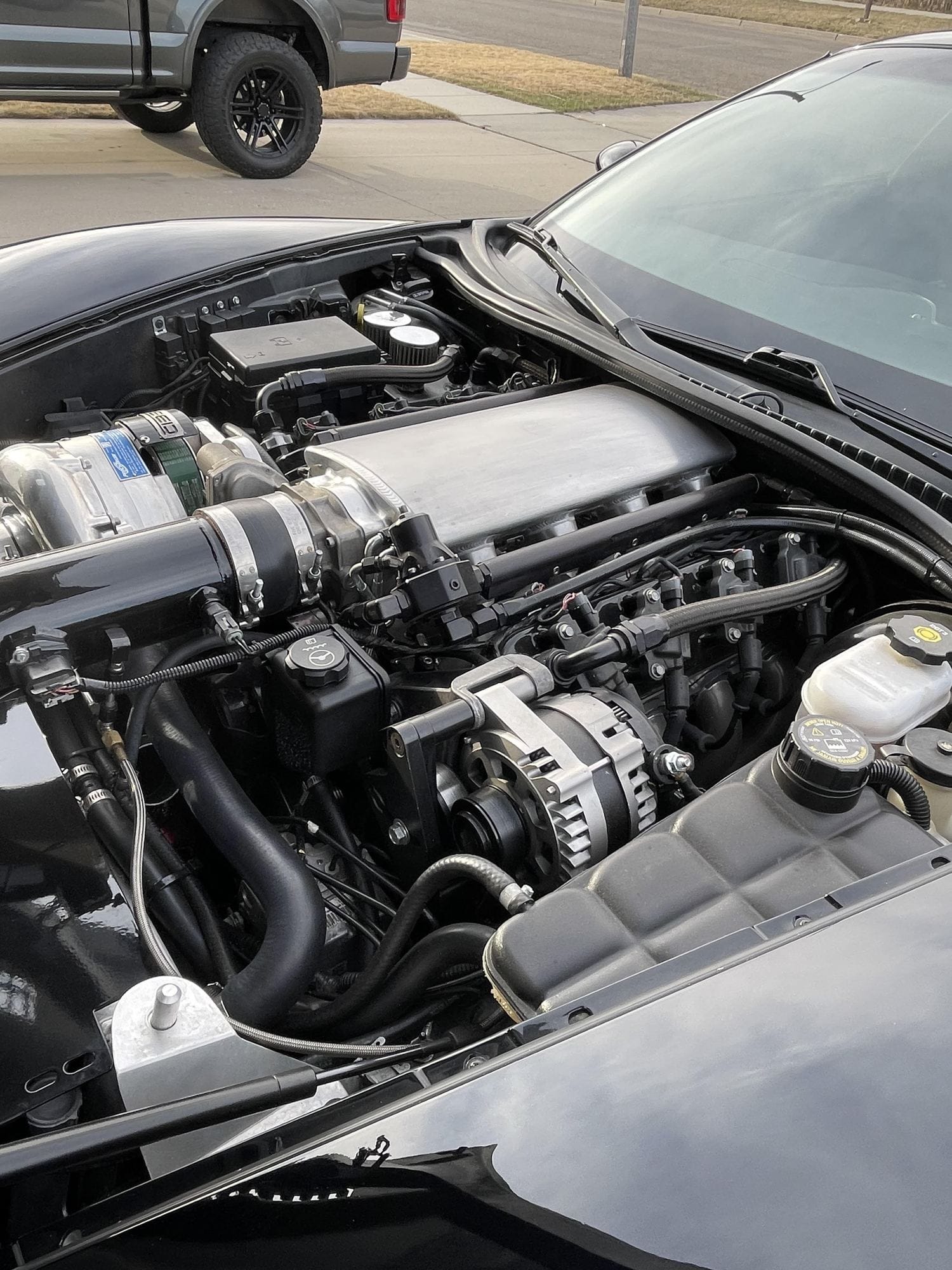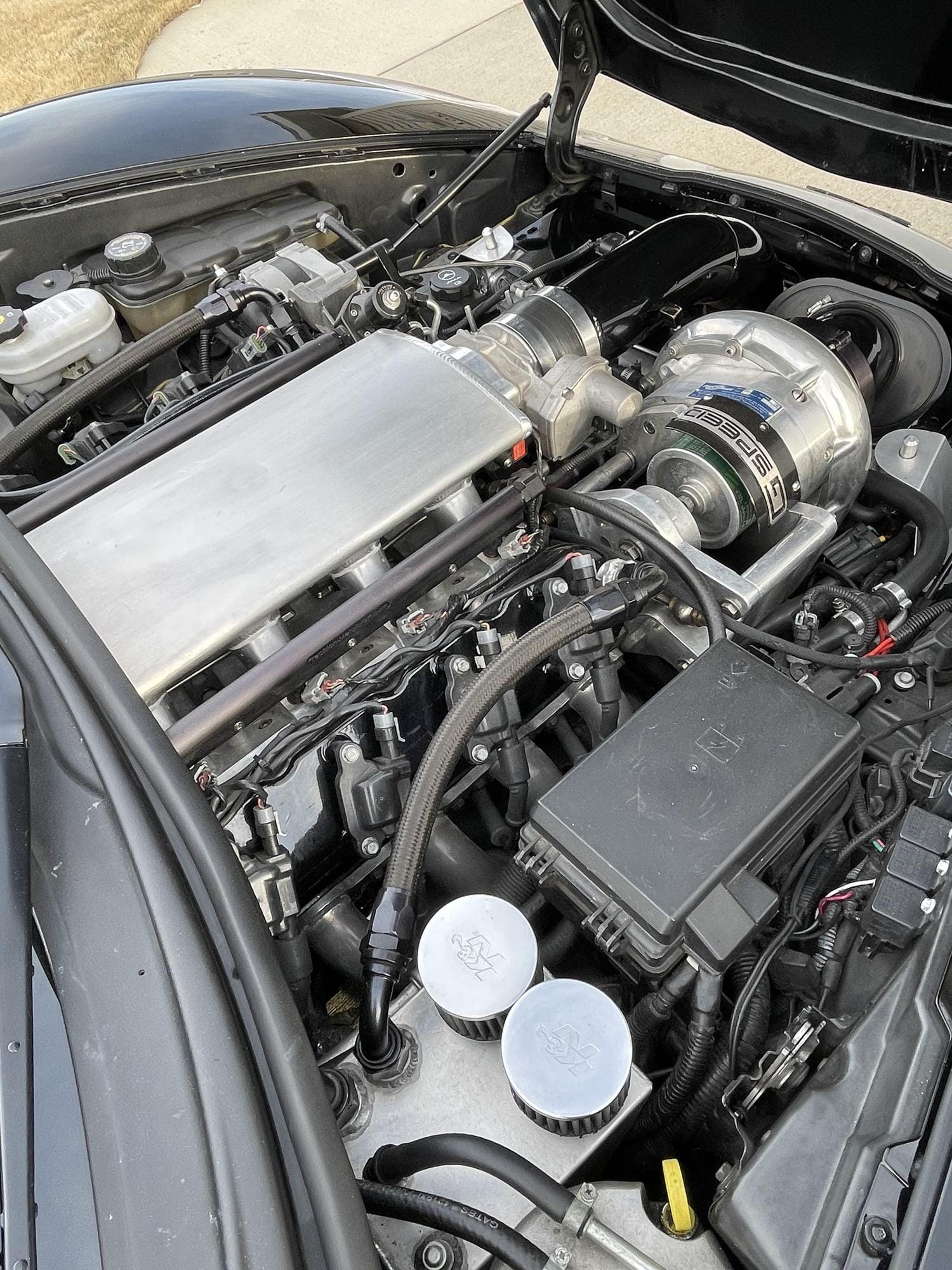 1400+whp 2008 Chevrolet Corvette 3LT in Black with 45,000 (Chassis) miles for sale! This C6 was built by Advanced Modern Performance, and tuned by Sam at AMP with an output of 1270whp on pump E85 and over 1400whp on Ignite Red race gas. Power is sourced from a Late Model Engines (LME) 427 LSX that’s paired with an AMP ProCharger F1X race kit, and mated to a stock low mileage Tremec TR-6060 6-speed manual transmission. This build features a wide variety of modifications, including ID2000 injectors, Aeromotive 7GPM brushless variable speed fuel pump, Alky Control dual nozzle methanol injection system, 2009 Z06 ECU, SPEC E-trim super twin clutch, PST 3.5” driveshaft, and much more. The owner also has a Pro EFI 112 ECU setup with the 5” screen, and Weld Alumastar 2.0 front wheels that can be included for the asking price. Only 5K miles on the build! Clean title!