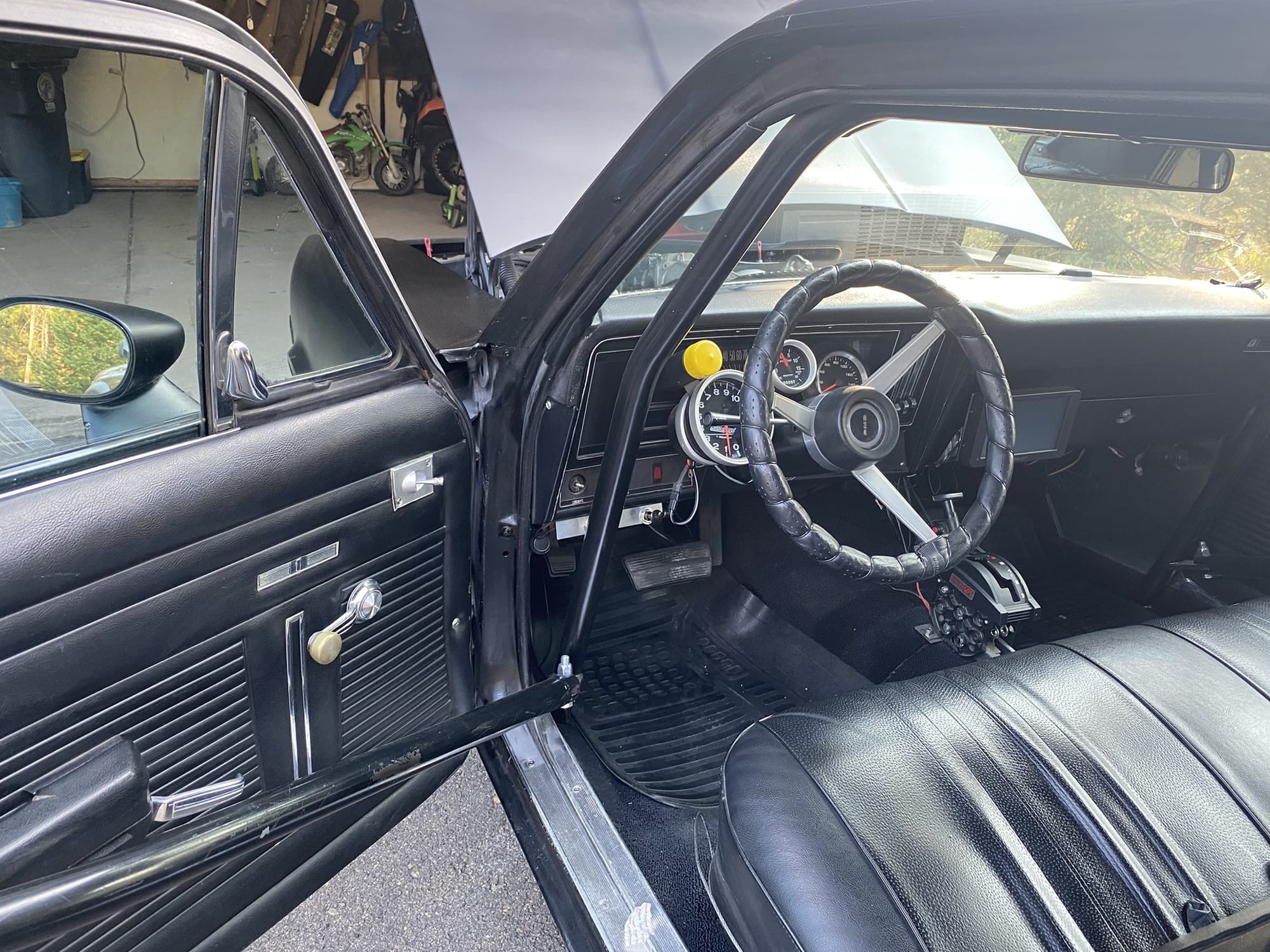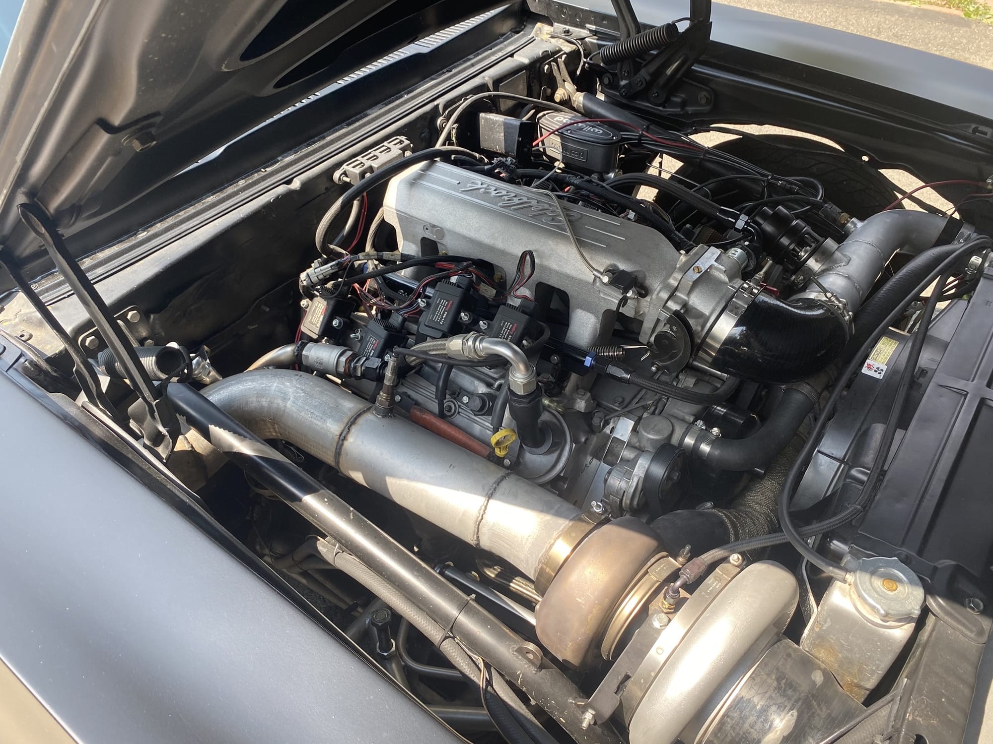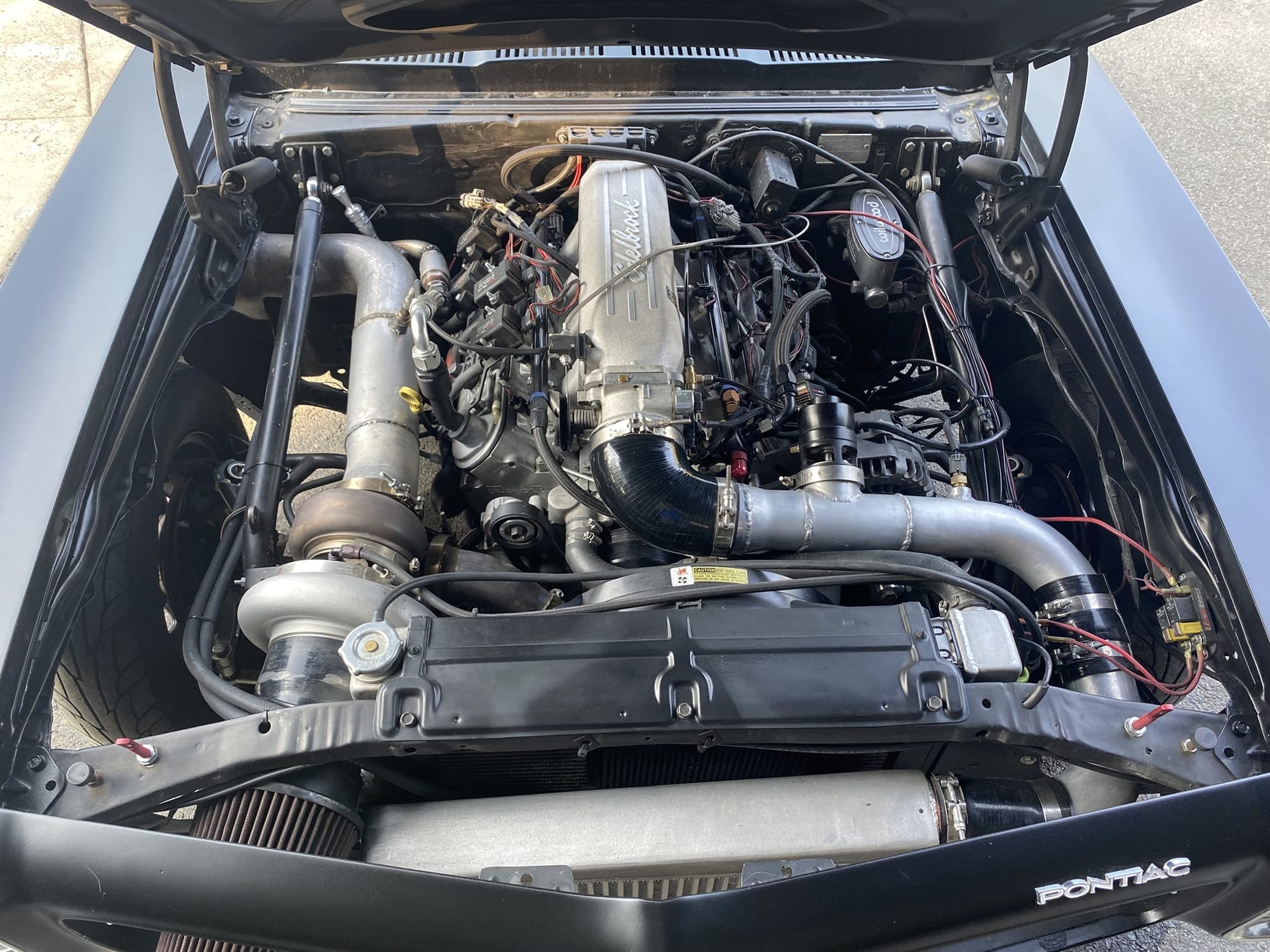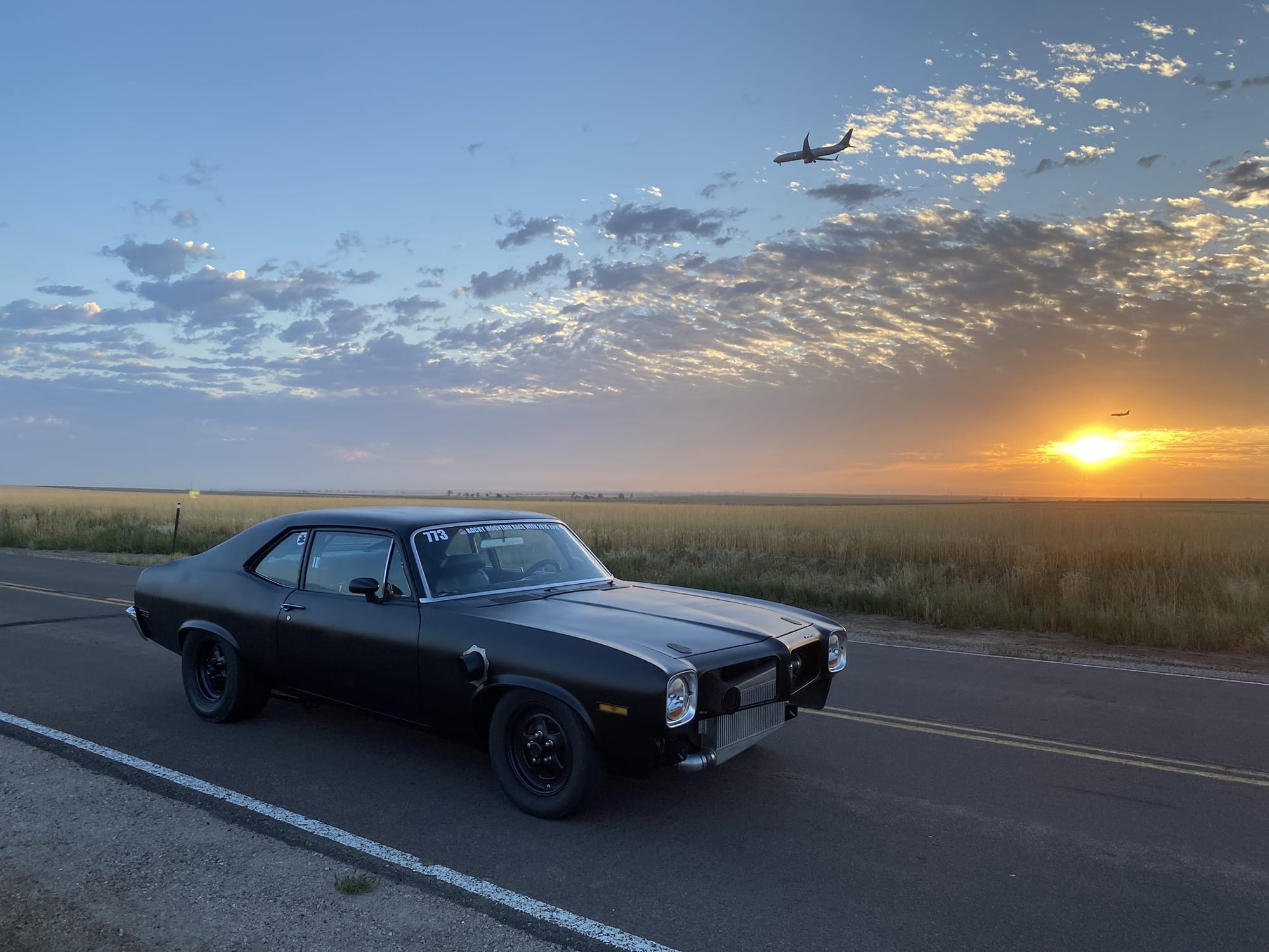1972 Pontiac Ventura in Flat Black for sale! This is a true 8-second street car that was built for endurance drag racing, it's completed Rocky Mountain Race Week 4 times with no failures. The owner has put over 18K miles on the car with the Holley EFI and turbo LS setup. There's only 7K miles on the current forged 5.3L that's paired with a F.I S485 turbo, and mated to a SFI case TH400 transmission (recently built this past winter). It's also equipped with a pneumatic exhaust valve that blocks off the 5" fender exit and forces it through a single 2.5" exhaust over the axle to an OEM style muffler. This makes the car sound stock, and it's great for long drives. All upgrades (minus the chromoly 8.5 cage) were installed by the owner throughout his 15 years of ownership, and tuning was handled by him as well. The car was only on the dyno for initial tuning just to check everything, it made around 700whp on 16Ibs of boost. As for track times, it's ran a 5.7 in the 1/8-mile and an 8.9 @ 151mph in the 1/4-mile on a 26x8.5 pro bracket radial. The floor pans are very solid, there's a small amount of rust in the trunk pan, however all panels (fenders, doors, rockers) are solid. The owner painted the car flat black with Hotrod Flatz and it looks okay, there are some dry spots and imperfections. The quarter lips have some rust, but it's not horrible. If you want to put a nice gloss paint job on the car, the owner recommends repairing the rear wheel well lips or do half quarters. It's a great reliable street car, the owner just has another project, and he's going a different direction. Over $40K in parts alone! Clean title!