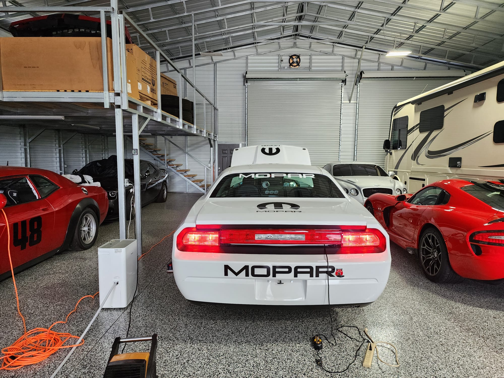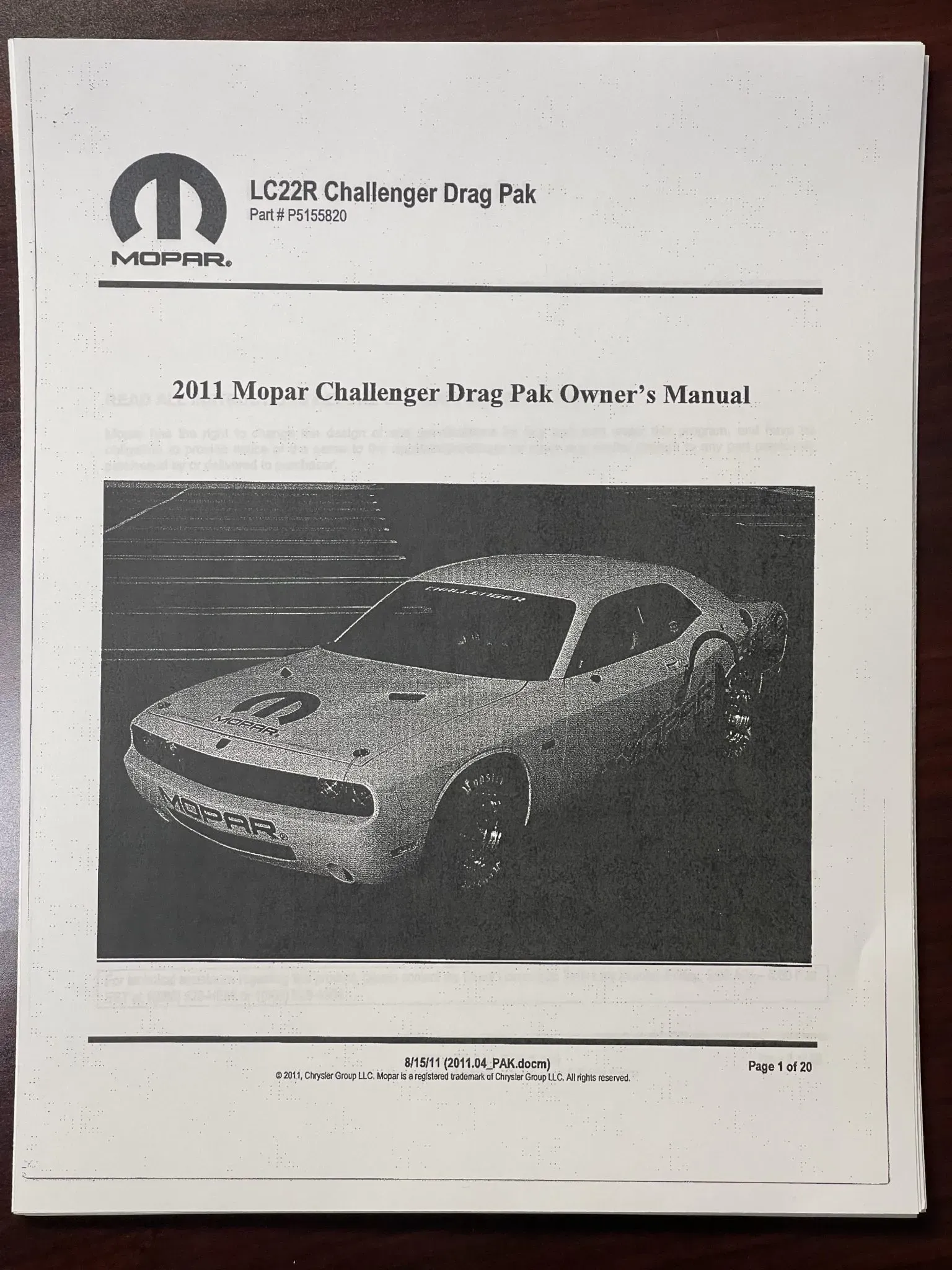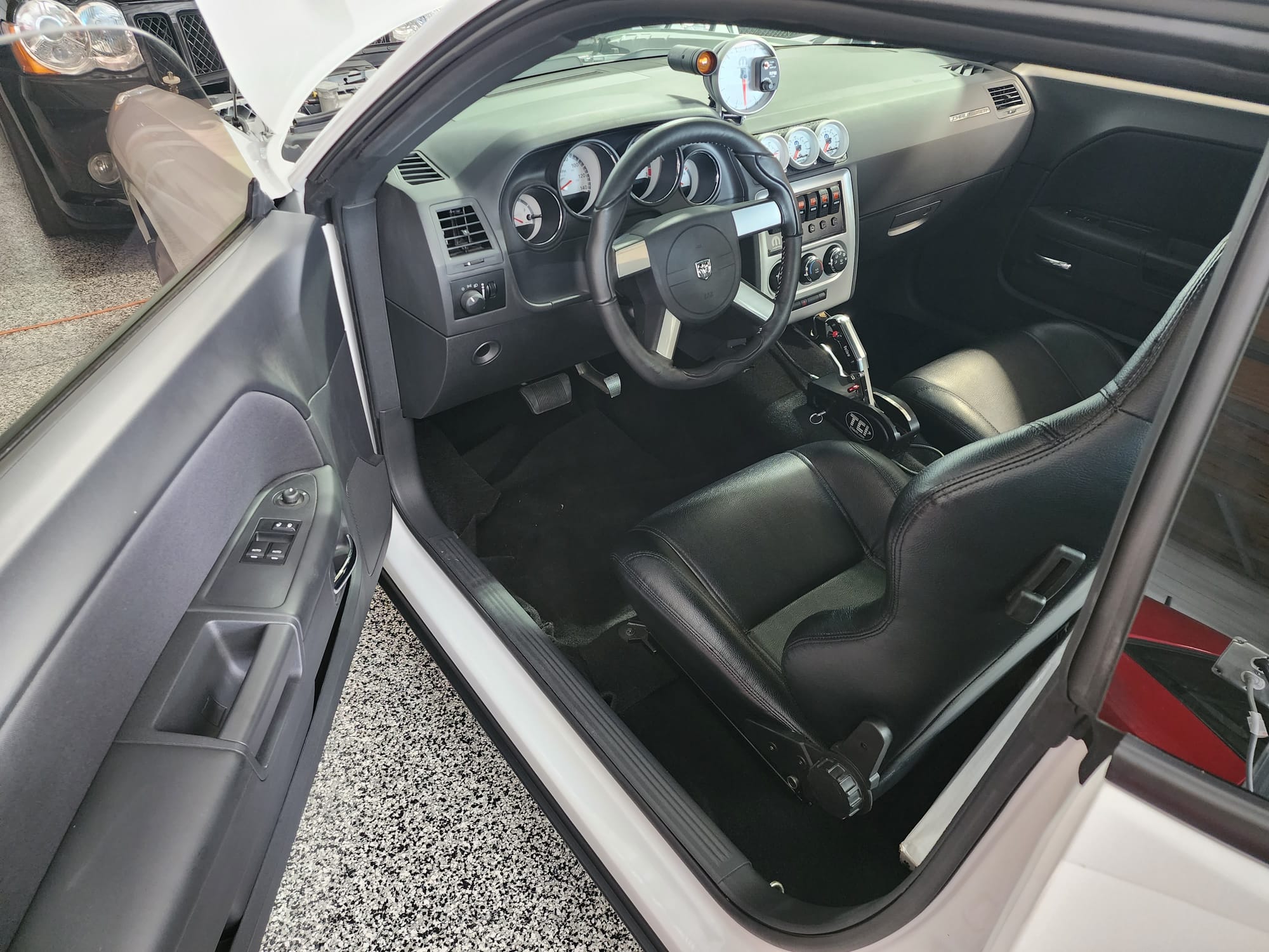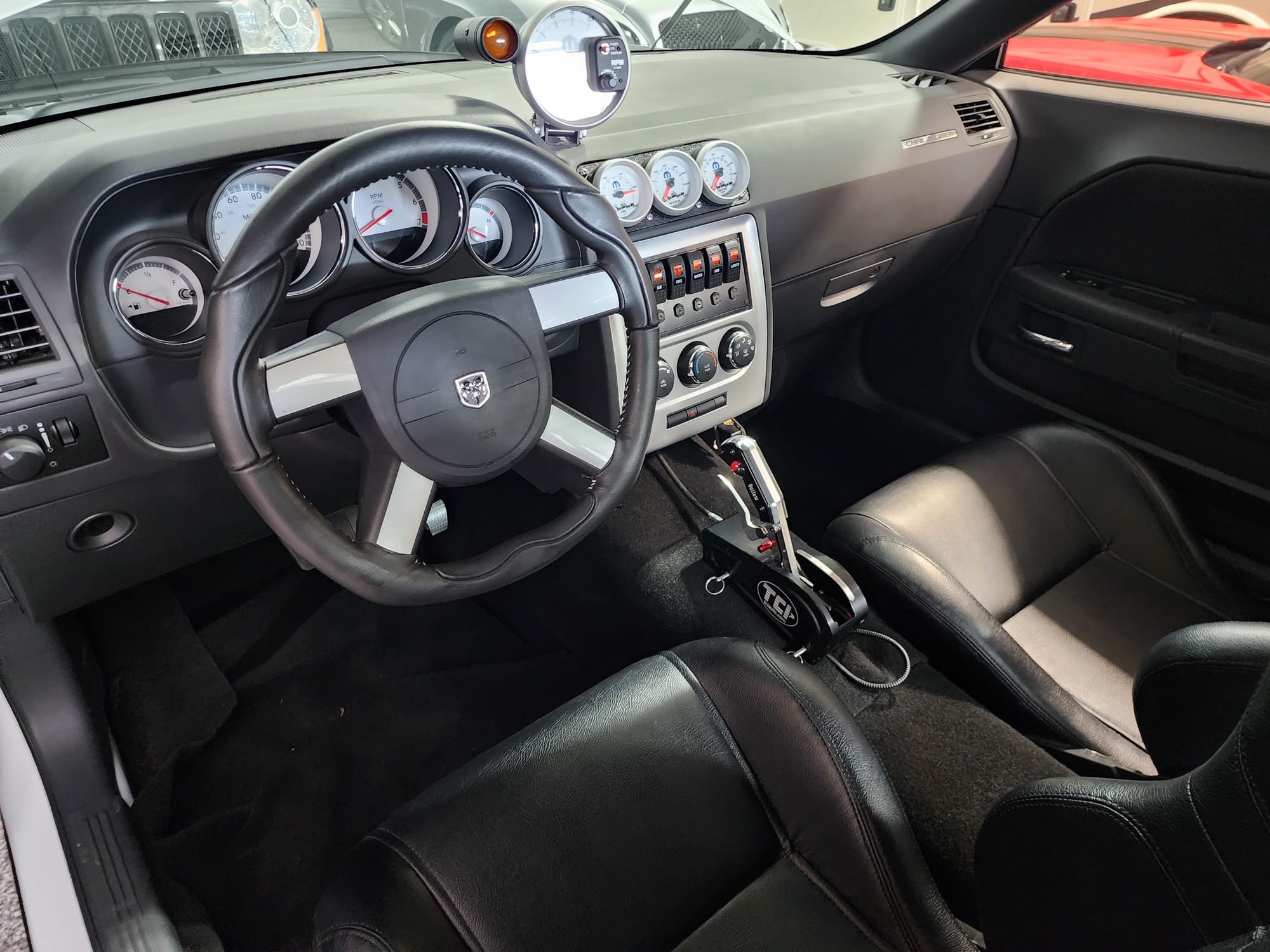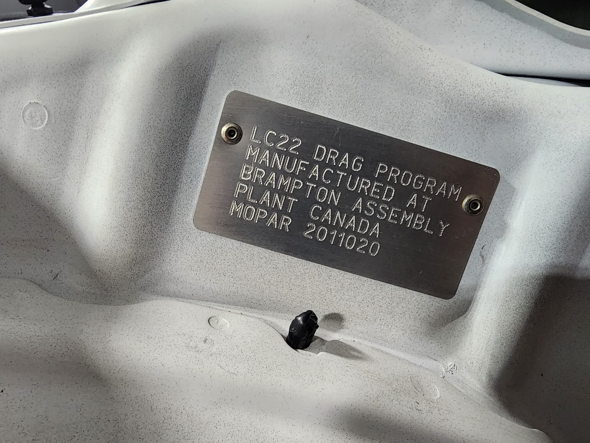 2011 Dodge Challenger Drag Pak #20/70 in White with 5 (delivery) miles for sale! Every couple of years, the Mopar brand releases a limited production of hand-built Mopar Dodge Challenger Drag Pak factory race cars for the public, designed to be a turn-key option for NHRA stock and Super Stock race classes. This iteration of the Drag Pak really stands out as it features a gen 4 8.4L 512ci Viper V10 engine under the hood, which is mated to an ATI 2-speed powerglide transmission, an effective combination that makes this Challenger brutally quick. Further equipped with countless quality components as part of the LC22 drag program, the weight was also reduced to 3,250Ibs. The car has not been down the track as it was previously on display at the Horton Classic Car Museum (Nocona, Texas), however an exact duplicate of this vehicle ran 9.20’s in the 1/4-mile (known to see 9-second quarter miles and trap 150 easily).