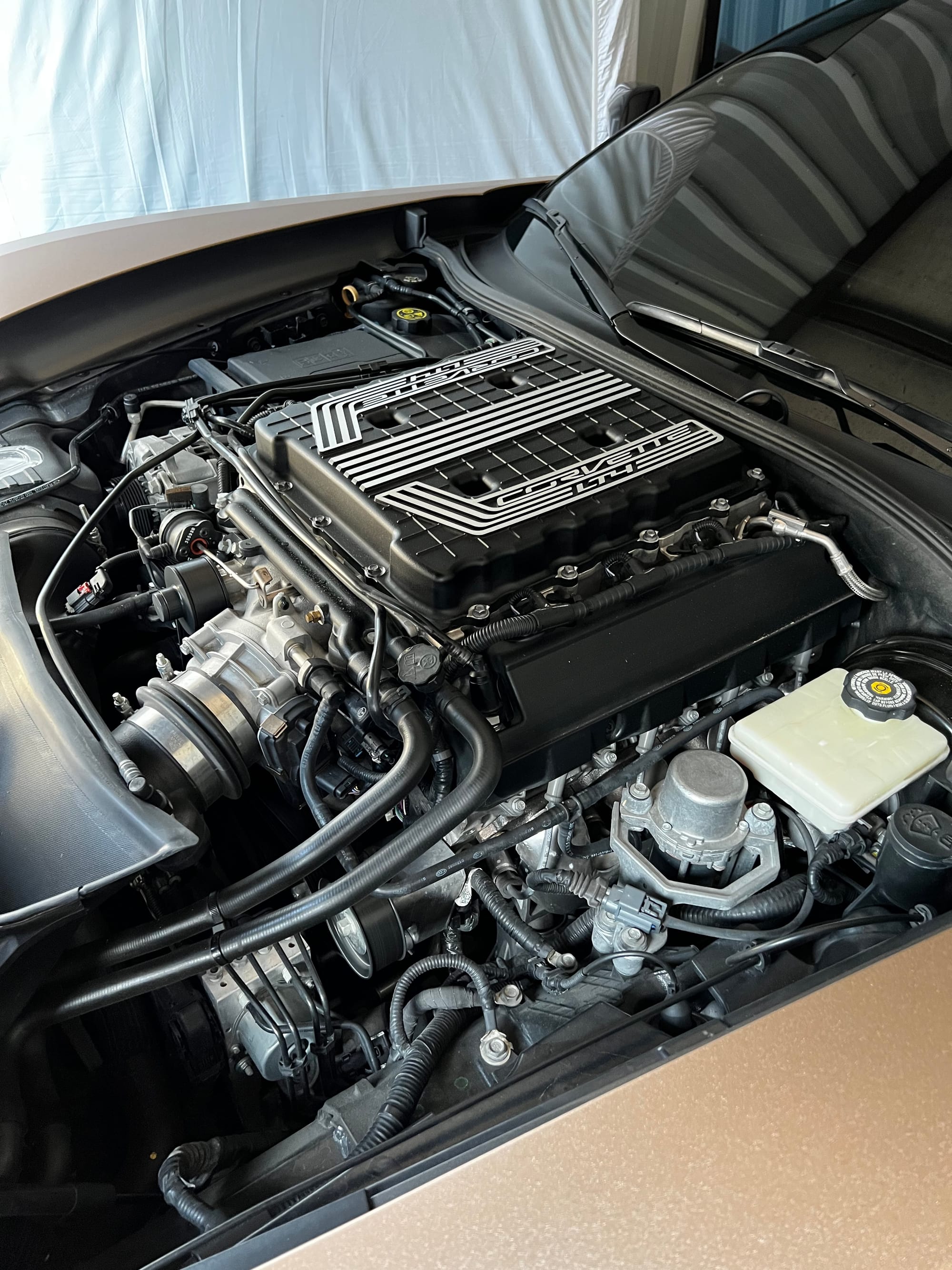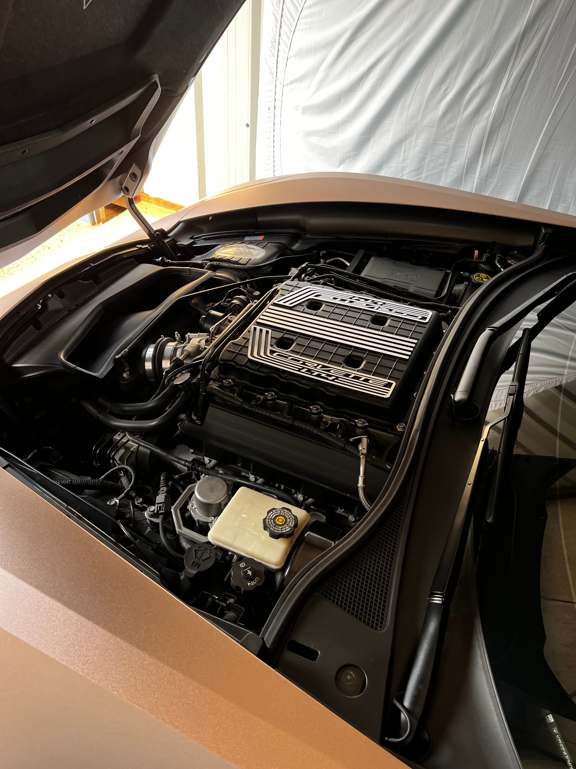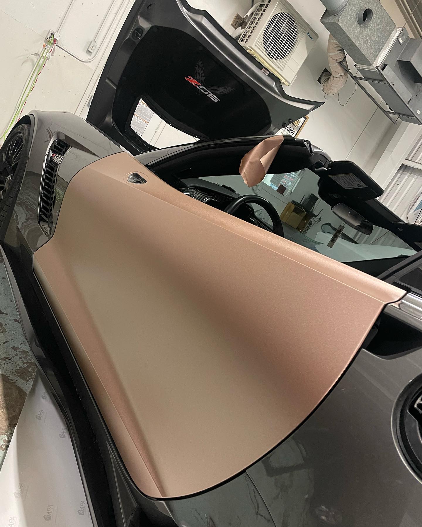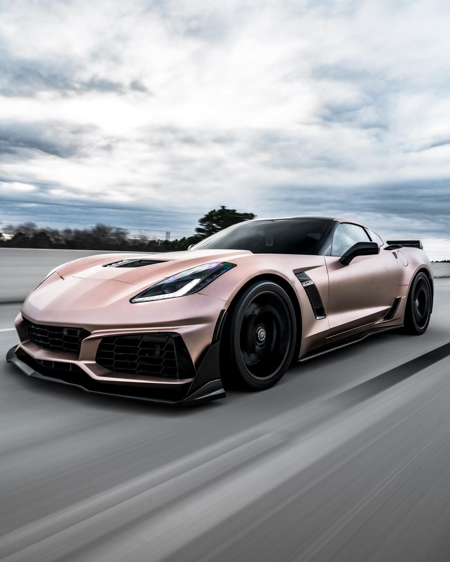 2015 Chevrolet Corvette Z06 2LZ in Shark Gray (Wrapped) with 18,878 miles for sale! Powered by a 6.2L LT4 that’s topped with the factory 1.7L supercharger, and mated to a Tremec TR-6070 7-speed manual transmission. This C7Z features a handful of upgrades, including a cold air intake, Corsa double helix x-pipe, and a muffler delete. In terms of aesthetics, the exterior was wrapped Satin Metallic Rose Gold by Modish Wraps followed by the installation of a ZR1 style front bumper/splitter, spoiler, and side skirts. The car is also lowered on stock bolts, and further equipped with a ZR1 style front bumper/splitter, spoiler, side skirts, and window tint. Only 9K miles on the upgrades. Receipts are available! Clean title!