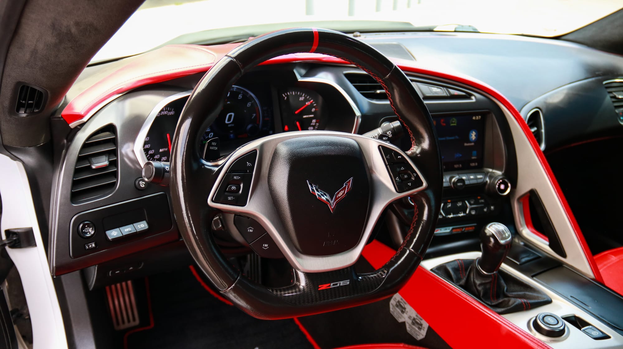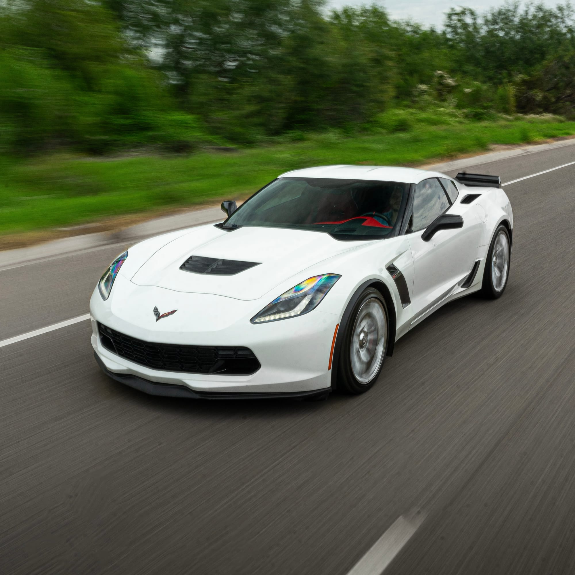 2015 Chevrolet Corvette Z06 3LZ in Arctic White with 83,753 miles for sale! This clean C7Z is propelled by a 6.2L LT4 that’s coupled with a 1.7L Eaton R1740 supercharger, and linked to a Tremec TR-6070 7-speed manual transmission. Modifications remain light with the installation of an upgraded exhaust system, including a set of headers. The car is ready to be enjoyed in its current configuration, or ready for it’s first major round of modifications. Both the interior and exterior shows incredibly well, the Artic White exterior paired with the vibrant Adrenaline Red interior is a killer combination. Clean title, and Carfax!