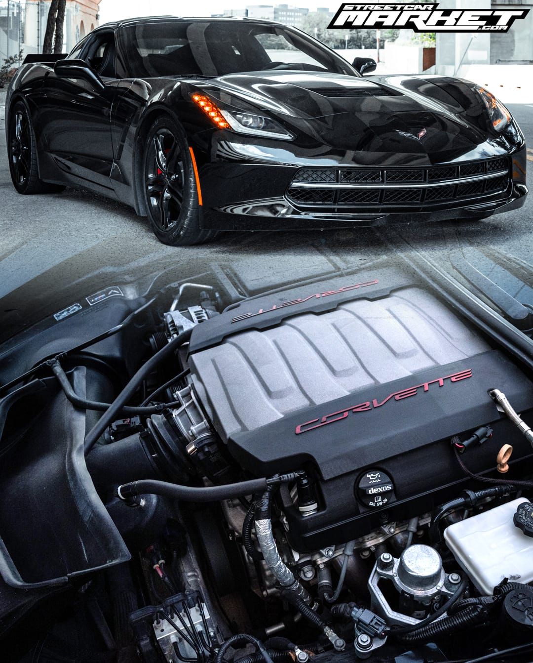2016 Chevrolet Corvette 1LT in Black with 46,000 miles for sale! This C7 is powered by a 6.2L LT1 that’s fitted with an upgraded camshaft, and backed by an 8L90 paddle-shift 8-speed automatic transmission. Additional upgrades include a full exhaust system with headers and aftermarket tips, followed by a set of 305/30R19 Nitto NT555 tires, and rear spoiler. The vehicle was initially purchased from the dealership with the modifications already installed. This cammed C7 runs 100% no problems/no lights on the dash, it sounds very aggressive with this setup! The car does carry a rebuilt title, the owner can provide the Carfax as well!