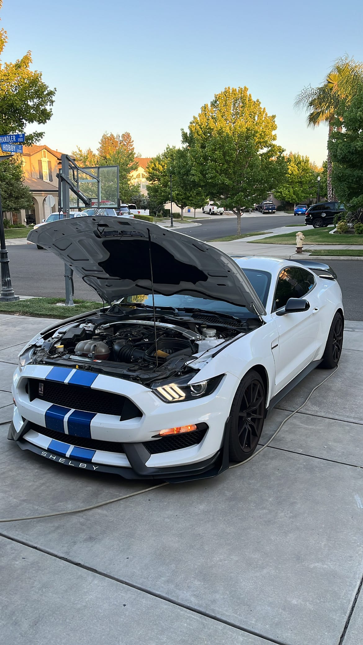 2018 Ford Mustang Shelby GT350 in Oxford White with 8,550 miles for sale! This GT350 is powered by a high-revving 5.2L flat-plane crank V8 that’s backed by a Tremec TR-3160 6-speed manual transmission. Modifications remain light with the installation of a few upgrades, including catless mid-pipes, O2 spacers, x-pipe, ProFlex Fuel Commander for E85 support, and a GT350R style spoiler. All modifications were performed by the owner, and the exterior also features Paint Protection Film (PPF) on the front bumper/partial roof/sides. The oil was recently changed at 6K miles by Ford. Clean title!
