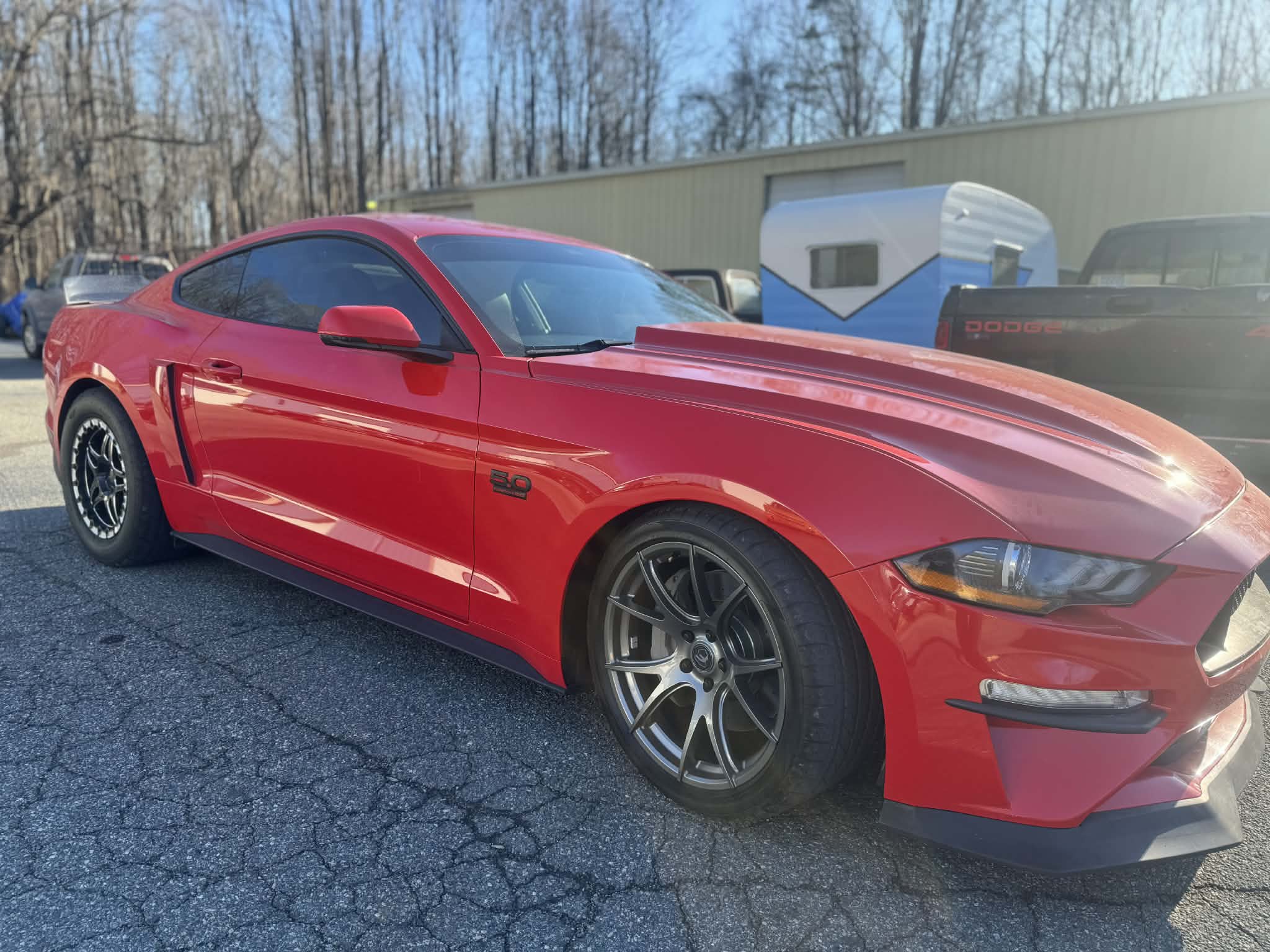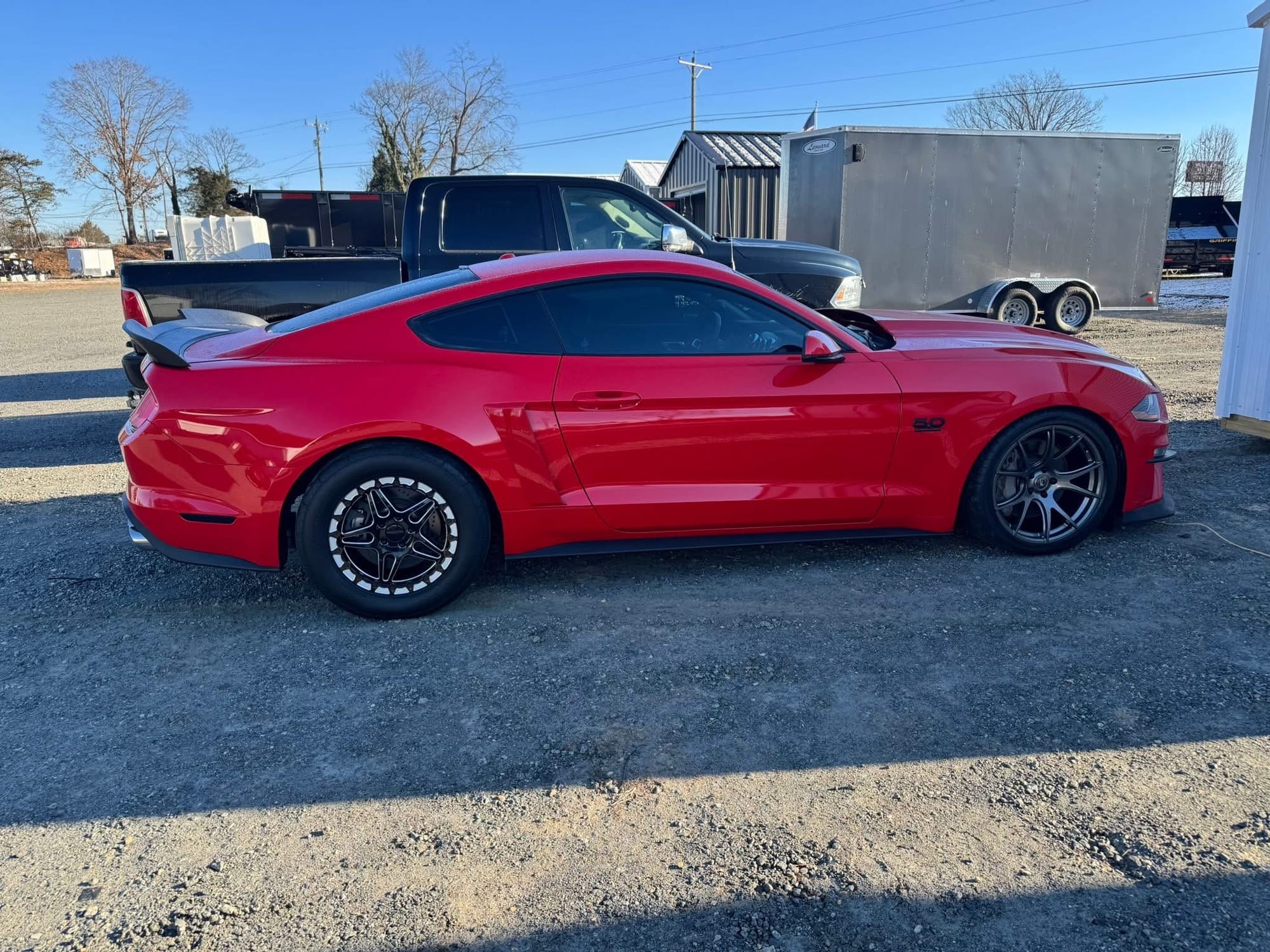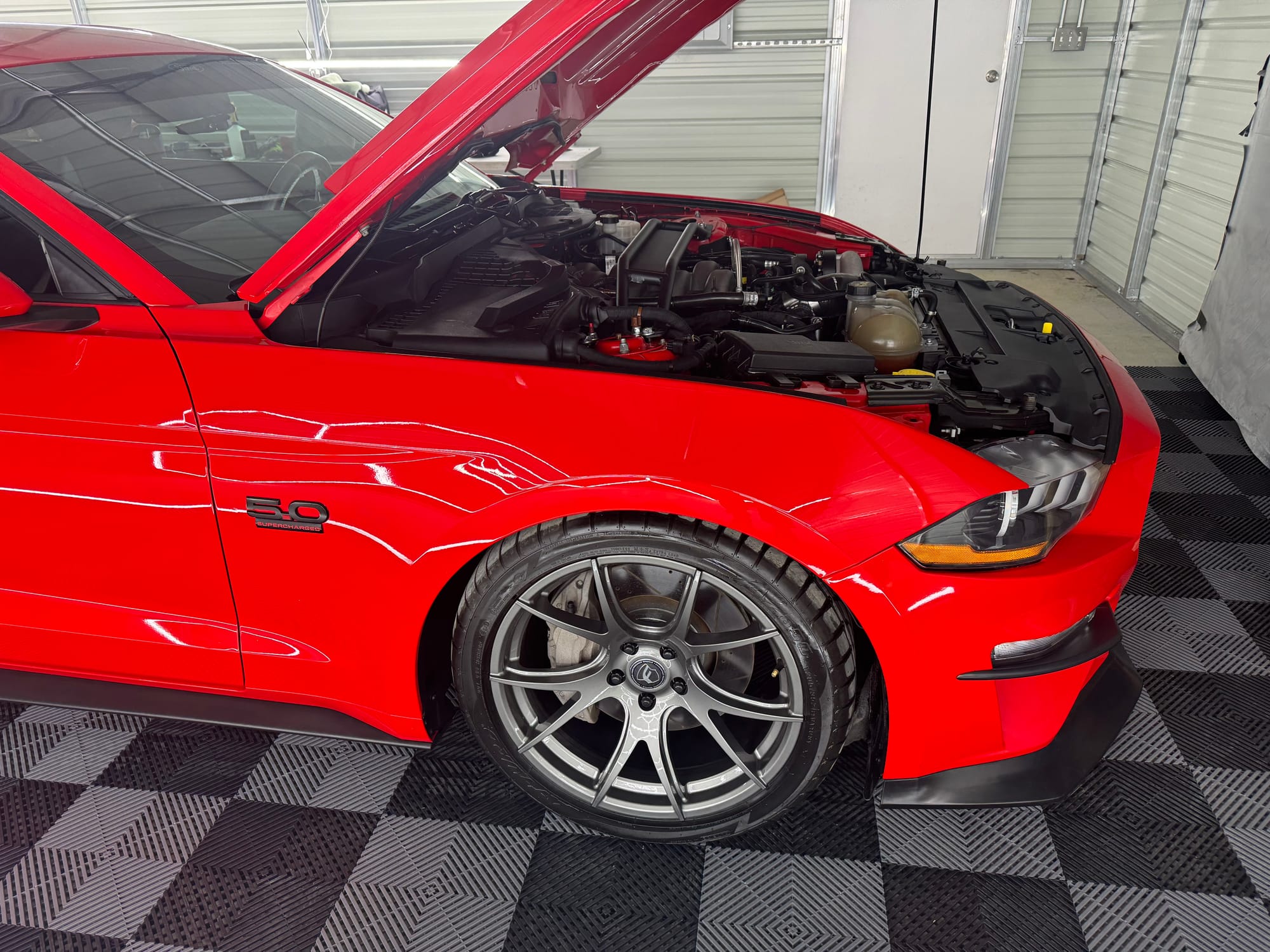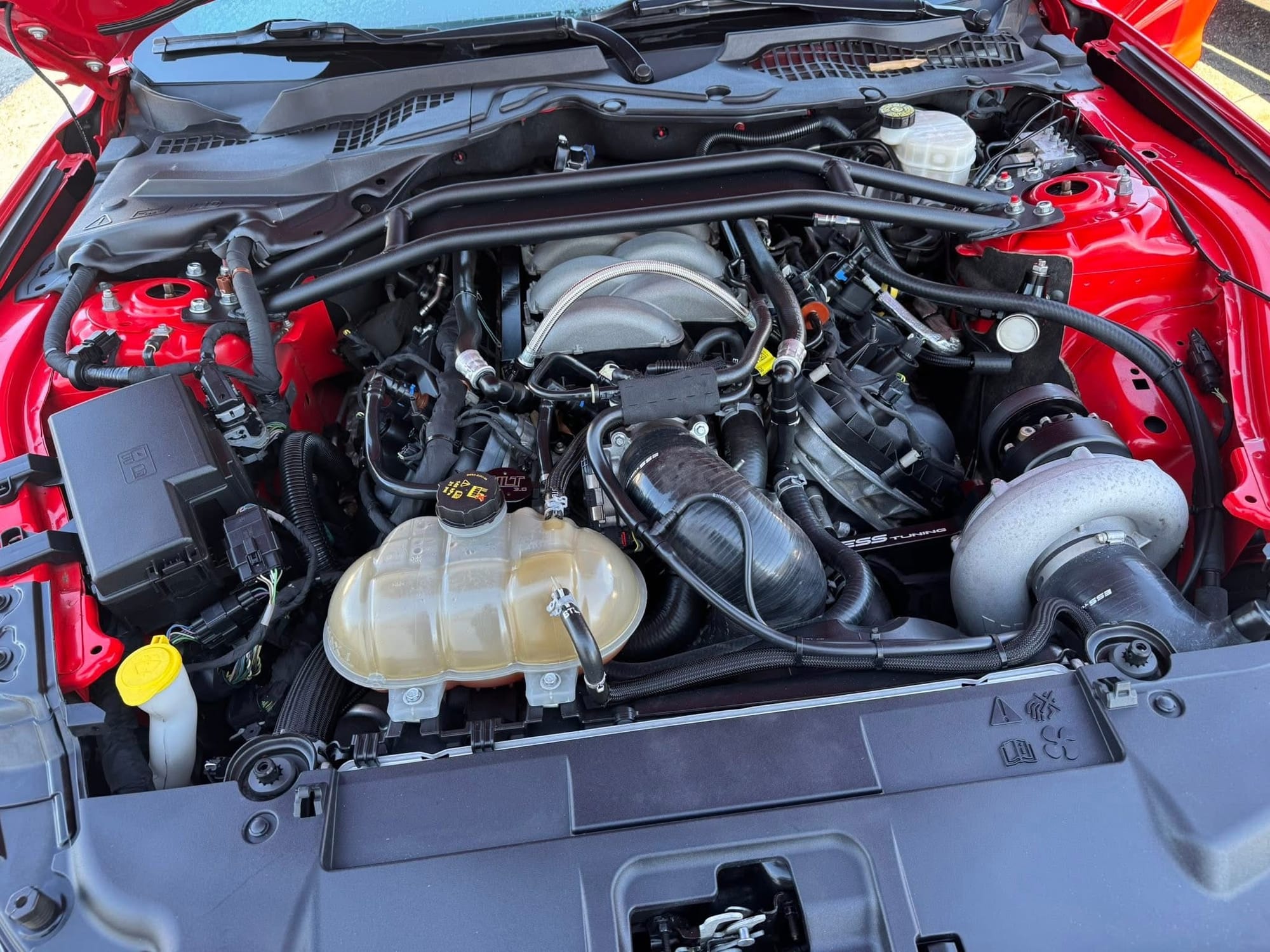 ~850whp 2019 Ford Mustang GT Premium in Race Red with 56,000 miles for sale! This Mustang packs a gen 3 5.0L Coyote that’s paired with an ESS G3 supercharger, and linked to a 10R80 10-speed automatic transmission. The Coyote was also fitted with Boundary oil pump gears along with their upgraded crank sprocket. The fuel system was upgraded to a Sai Li dual pump return style fuel system, VMP fuel rails, and a set of Injector Dynamic ID1050 fuel injectors. Following the 10R80, the drivetrain also features a Driveshaft Shop aluminum driveshaft, and a set of G-Force axles. Additional upgrades include a pair of Stainless Works long tube headers, catless mid-pipe, MBRP catback (no mufflers - mufflers included), XS Power battery, BMR Bread & Butter suspension package, Ford Performance lowering springs, and more. Modifications were installed under the previous owner, and tuning was handled by Wengerd Performance (tuned on 93 octane & E85). The car hasn’t seen a dyno in its current configuration with the 105mm pulley, however the owner estimates the car is laying down around 850whp on E85. The car recently received an oil change along with a fresh paint correction, which was topped with a 10-year ceramic coating. The owner is really looking to trade for a manual Mustang, Corvette or Camaro, he’s willing to downgrade if the buyer is putting cash on top. If it’s LS-powered, it should have a camshaft and full bolt-ons, with a preference for a supercharger. Clean title! The asking price is firm.