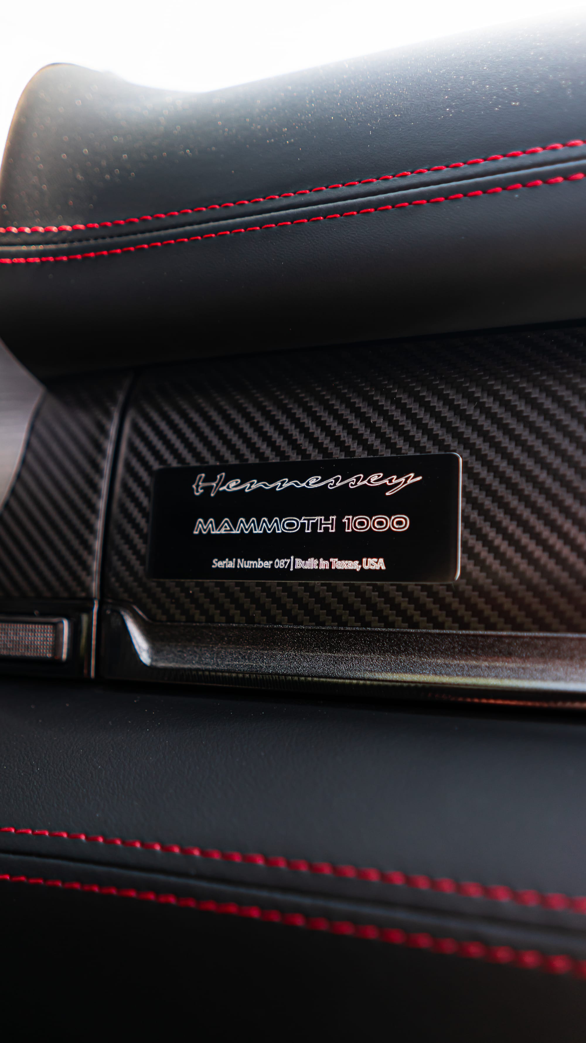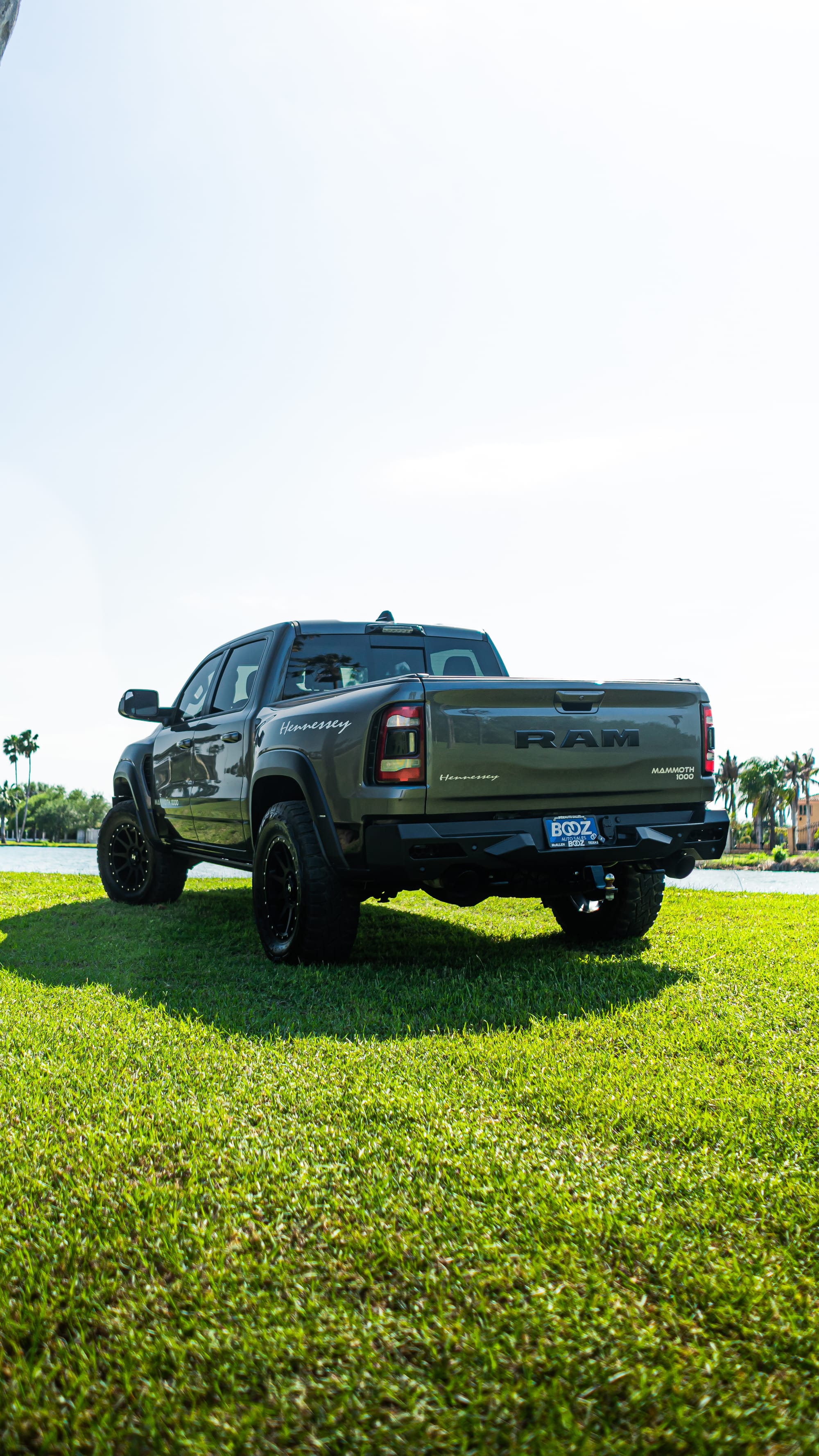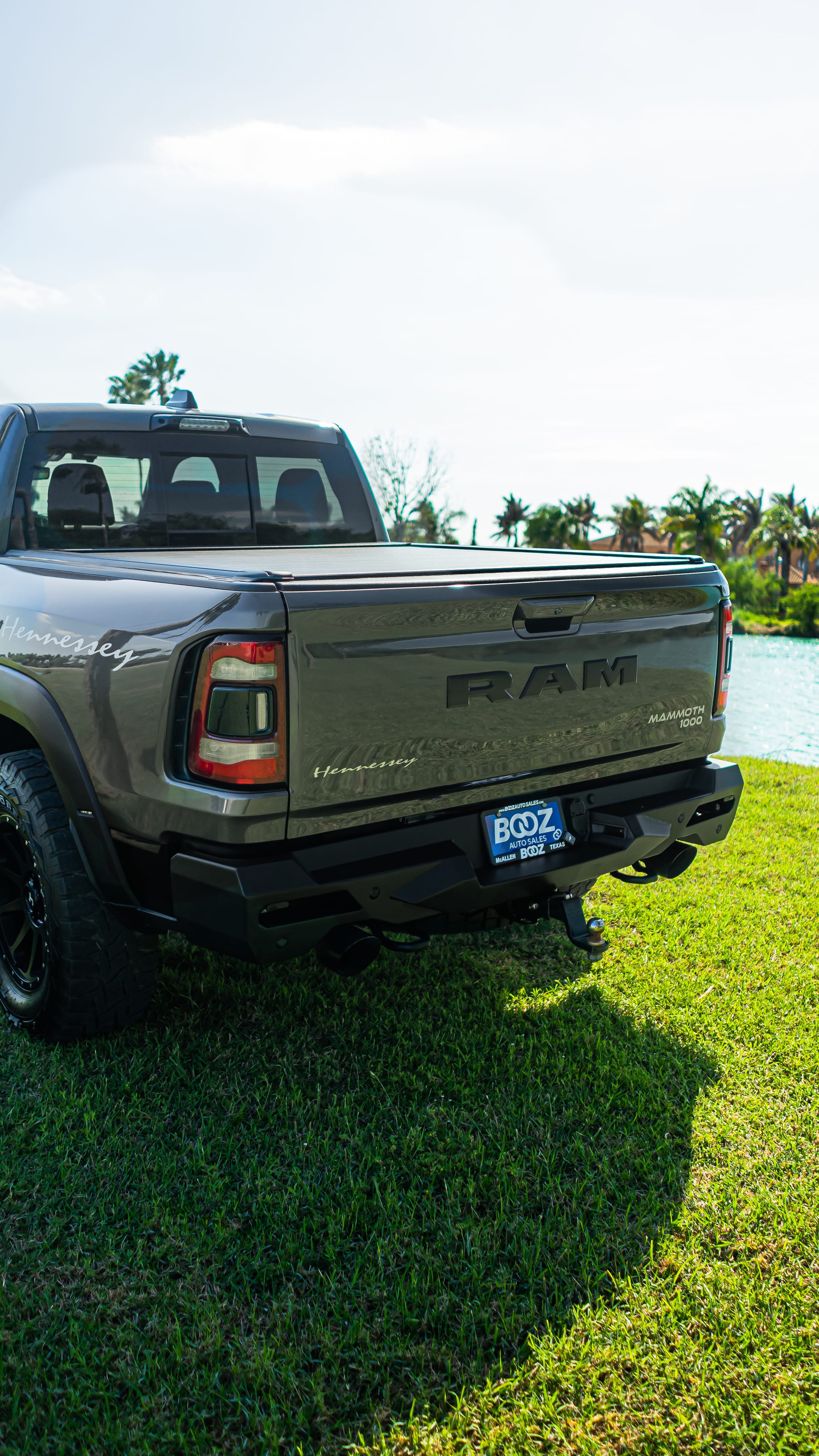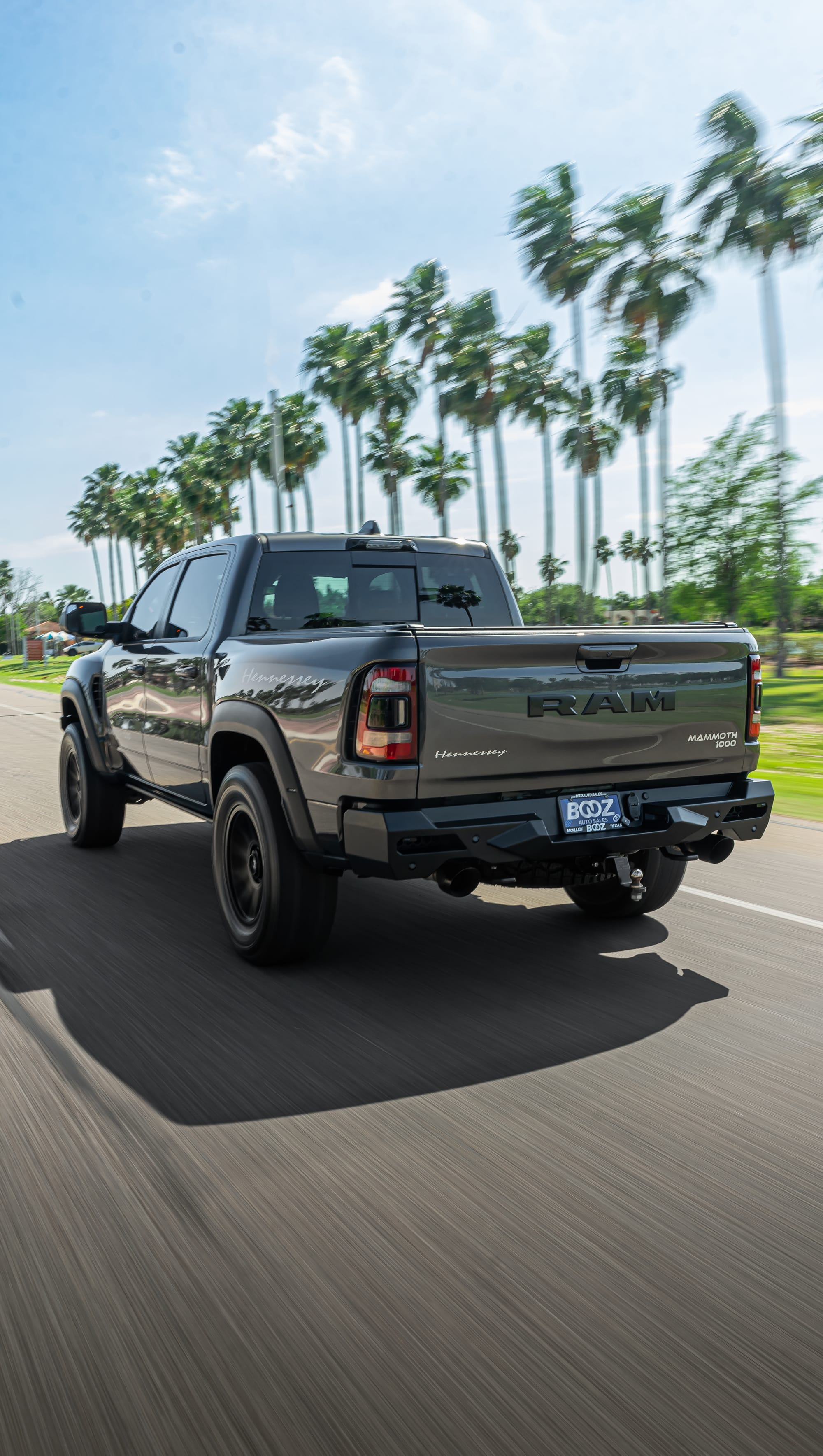 2022 Hennessey Mammoth 1000 Ram TRX in Granite Crystal with 38,158 miles for sale! Only 200 Ram TRX trucks were slated to receive the MAMMOTH 1000 package from Hennessey for the 2022 production year, this particular example is #087. Power comes courtesy of a 6.2L HEMI that’s topped with an upgraded 2.65L supercharger, and linked to an 8HP95 8-speed automatic transmission. Following the upgraded high-flow supercharger, the supercharger system utilizes pulley upgrades along with a heavy duty supercharger belt, and high-flow filtration system. Additional performance upgrades include a crank case ventilation system, crank damper pin assembly upgrade, high-flow fuel injectors, upgraded spark plugs, and an upgraded thermostat. This TRX was also outfitted with the MAMMOTH Off-Road Kit (Stage 2), which features MAMMOTH custom bumpers, 20” Hennessey wheels wrapped in 37” off-road tires, front leveling kit, electronic fold out steps, and Hennessey/MAMMOTH badging. Tuning was completed by Hennessey as well with their ECM/TCM calibration, resulting in an output of 765.63whp/737.17wtq on a Dynojet. All invoices/documentation from Hennessey will be included along with the dyno sheet. Clean title!