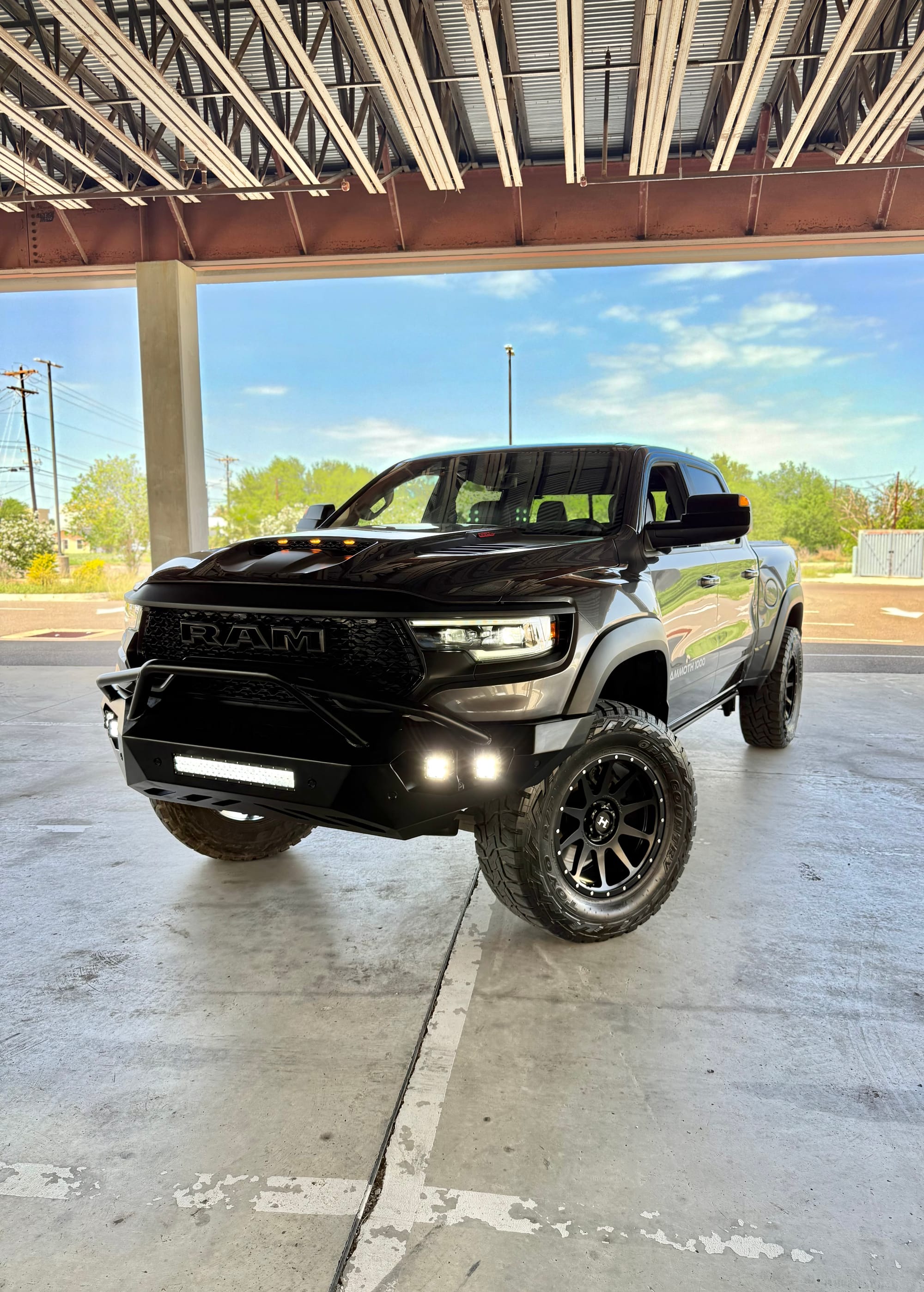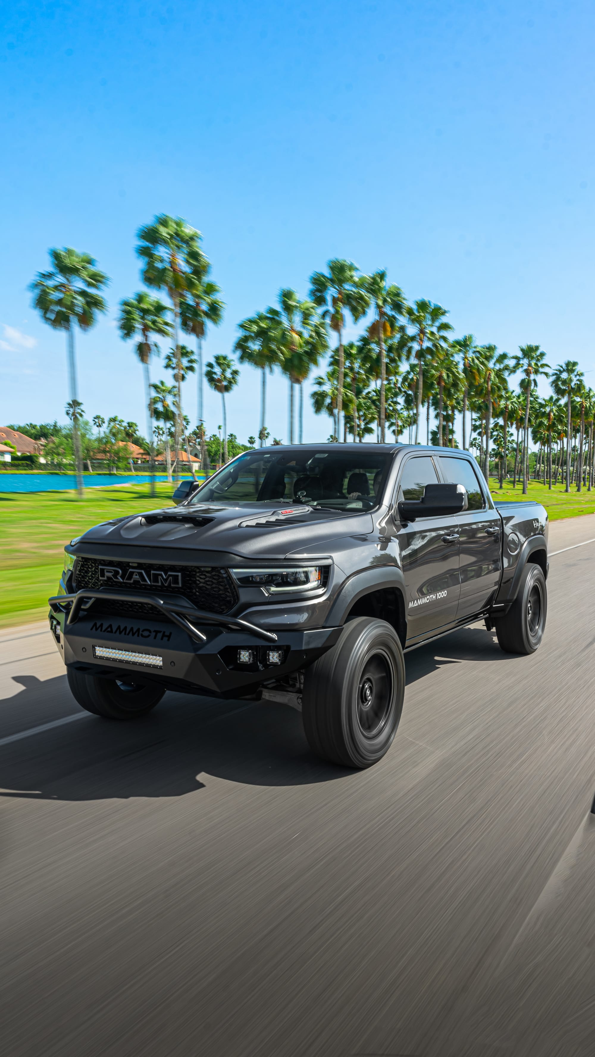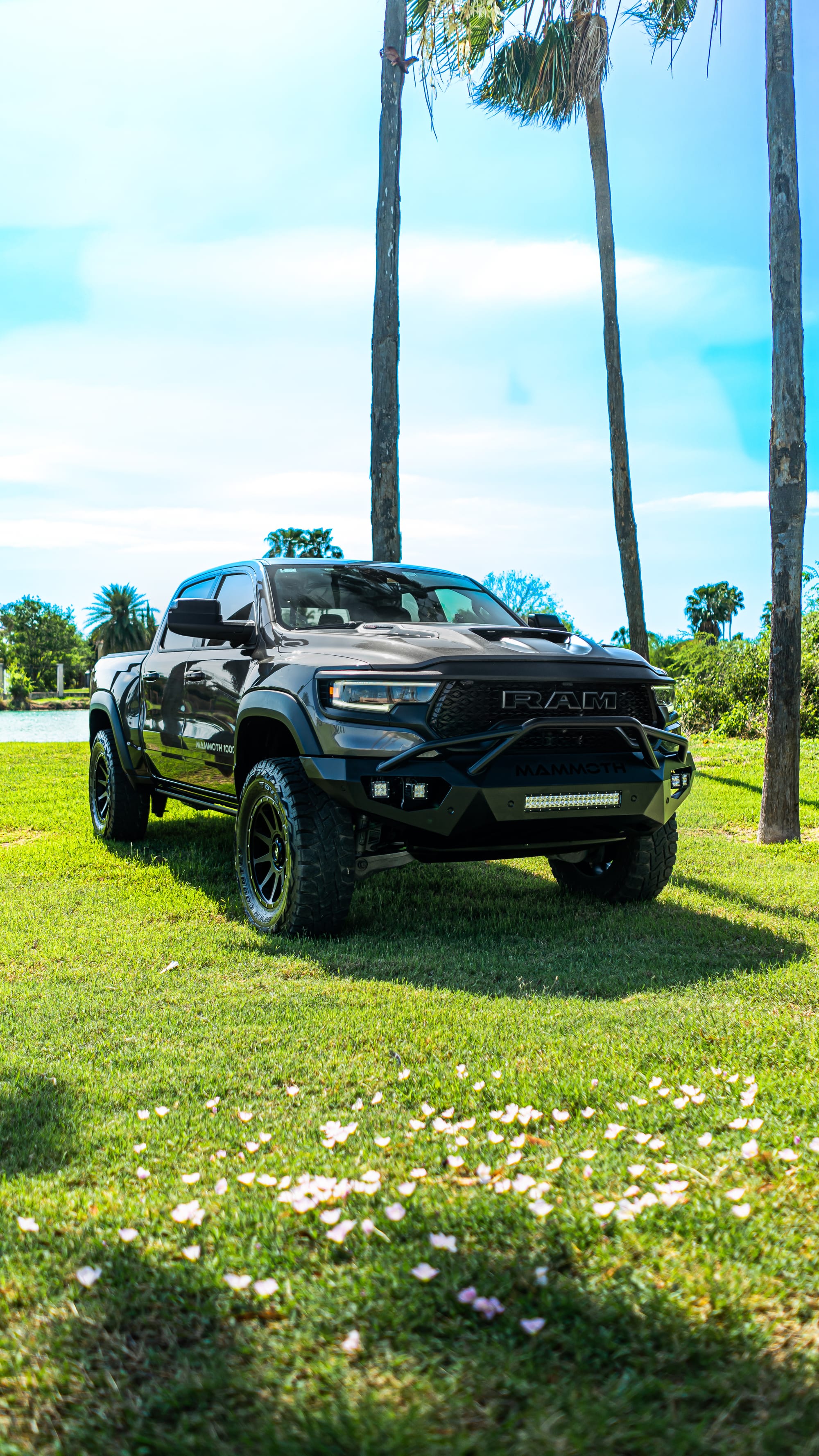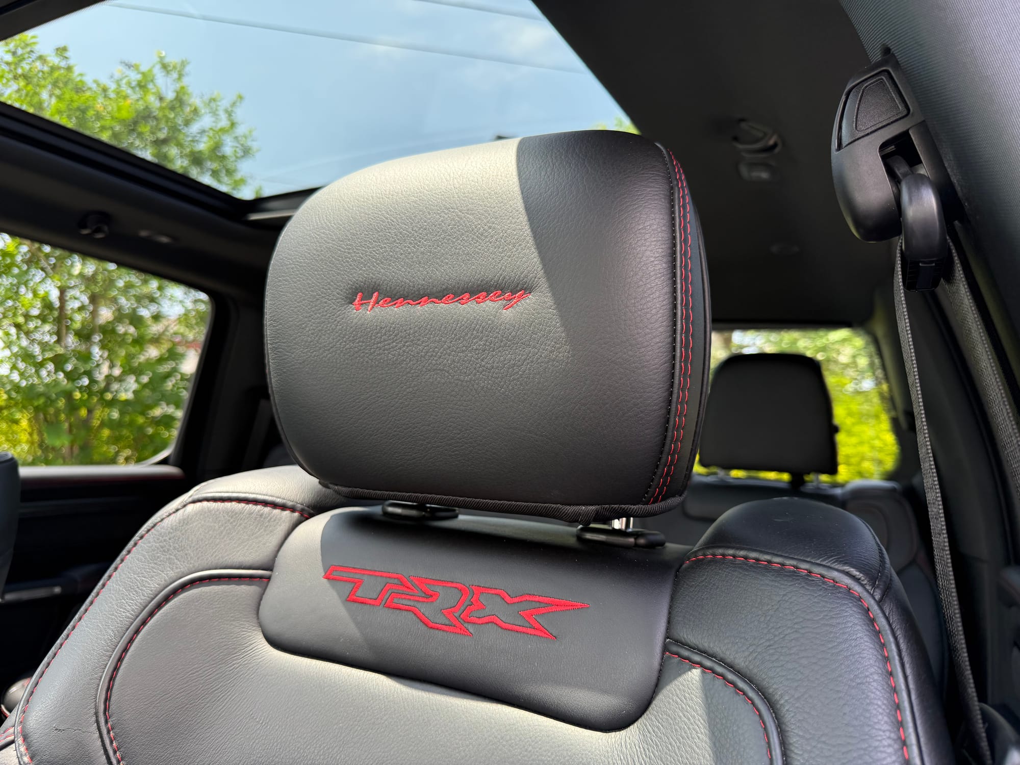 2022 Hennessey Mammoth 1000 Ram TRX in Granite Crystal with 38,158 miles for sale! Only 200 Ram TRX trucks were slated to receive the MAMMOTH 1000 package from Hennessey for the 2022 production year, this particular example is #087. Power comes courtesy of a 6.2L HEMI that’s topped with an upgraded 2.65L supercharger, and linked to an 8HP95 8-speed automatic transmission. Following the upgraded high-flow supercharger, the supercharger system utilizes pulley upgrades along with a heavy duty supercharger belt, and high-flow filtration system. Additional performance upgrades include a crank case ventilation system, crank damper pin assembly upgrade, high-flow fuel injectors, upgraded spark plugs, and an upgraded thermostat. This TRX was also outfitted with the MAMMOTH Off-Road Kit (Stage 2), which features MAMMOTH custom bumpers, 20” Hennessey wheels wrapped in 37” off-road tires, front leveling kit, electronic fold out steps, and Hennessey/MAMMOTH badging. Tuning was completed by Hennessey as well with their ECM/TCM calibration, resulting in an output of 765.63whp/737.17wtq on a Dynojet. All invoices/documentation from Hennessey will be included along with the dyno sheet. Clean title!