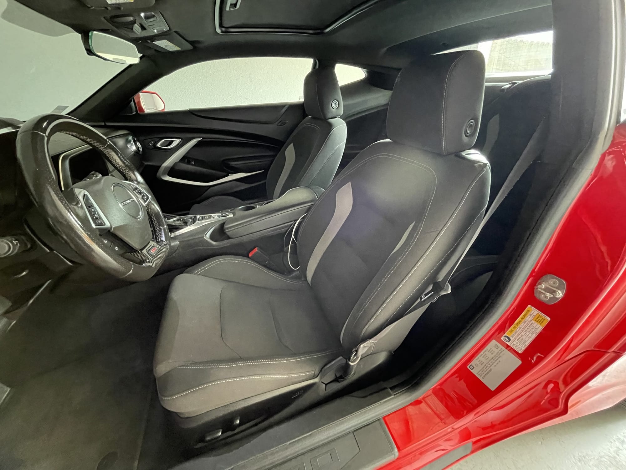 470whp 2018 Chevrolet Camaro SS in Red Hot with 62,000 miles for sale! Powered by a 6.2L LT1 that’s fitted with a Texas Speed camshaft, and mated to an 8-speed automatic transmission. Additional performance upgrades include a pair of Texas Speed 1-7/8” headers, catless mids, and Borla ATAK mufflers. A majority of the modifications were installed under the previous owner, and the car was tuned on 93 octane with an output of 470whp/440wtq. In regards to track times, it ran a 7.3 @ 97mph in the 1/8-mile (only went twice), the owner guarantees the car will run high 6’s on E85. This cammed 6th gen Camaro sounds amazing and makes reliable power with a fun simple setup. Always garage kept and well maintained, the interior is a 9/10 while the exterior is an 8/10. The reverse bulbs, oil, and battery were all recently replaced! All records are clean and up to date, the car is ready for a new owner! Clean title and Carfax!