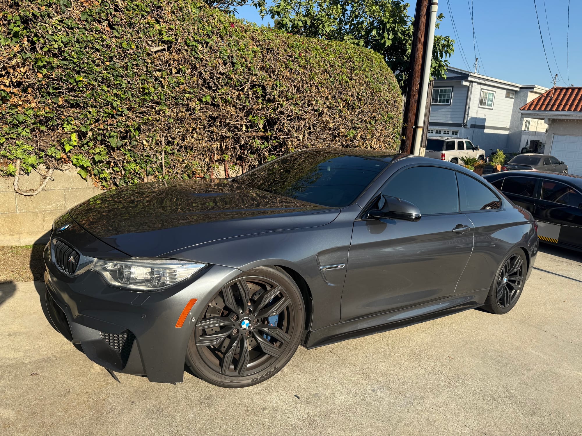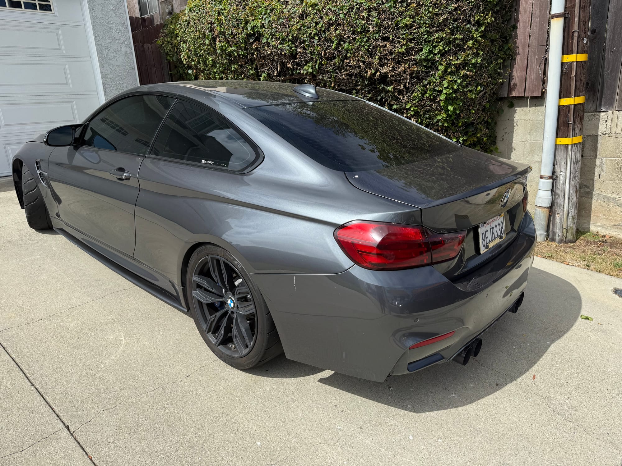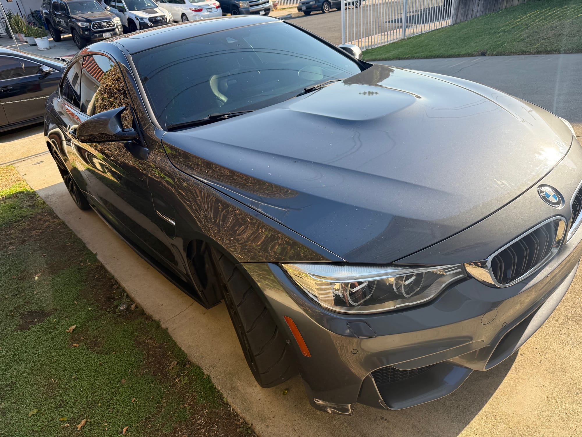 567whp 2015 BMW M4 in Mineral Grey with 60,800 miles for sale! This F82 M4 was modified by SSR Performance with receipts/invoices for all of the work performed. Beginning with the twin-turbocharged 3.0L S55 inline-six, which features the keyed 4-pin crank hub upgrade along dual cone high flow intakes and a charge pipe upgrade kit, both finished in custom Royal Blue. The current exhaust configuration consists of a custom 3” stainless steel exhaust pipe upgrade, and a Dinan cat-back with black tips. Further equipped with upgraded spark plugs for the E85 tune (gapped to 0.018”), and an eMMOTION lowering spring kit. Tuning was completed by SSR Performance with a custom E85 dyno tune (Stage 2) as well with an output of 567whp/621wtq. The owner just had a baby, so unfortunately the car just sits in the garage, there are zero issues other than a small scuff that’s located on the lower right side of the front bumper. Clean title!