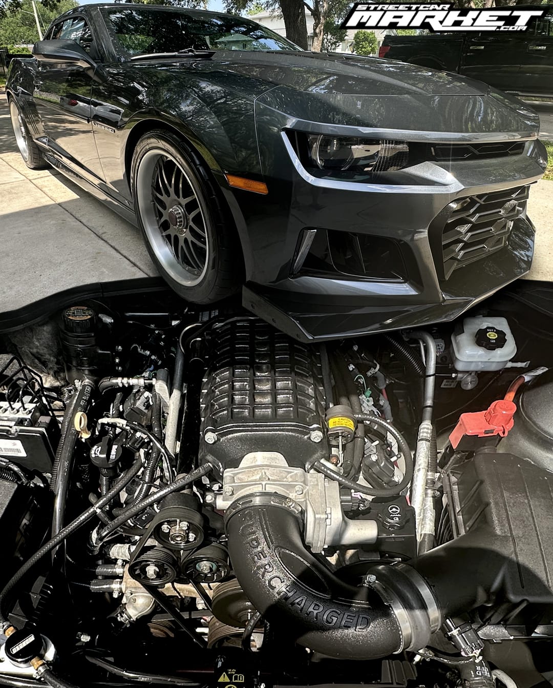 593whp 2010 Chevrolet Camaro 2SS/RS in Cyber Gray with 40,400 miles for sale! This 5th gen Camaro was modified and custom tuned by Speed Tek Performance out of Haltom City, TX with over $30K put into the car. Powered by a heads/cam 6.2L L99 that’s topped with a Magnuson TVS2300 supercharger, and mated to a brand new built 6L80 6-speed automatic transmission with a Yank 3200 stall converter. More specifically, the engine was fitted with a COMP blower camshaft along with a pair of CNC ported Corvette ZR1 aluminum heads/dual valve springs. A Kenne Bell Boost-A-Pump was installed to boost the voltage of the factory pump, followed by a set of 85Ib fuel injectors, ensuring fuel demands were met. Further equipped with a pair of American Racing long tube headers, custom exhaust, B&M transmission cooler, new KW coilovers, Eibach sway bars, PowerStop Track Day drilled/slotted brake kit, a nicely spec’d set of 20” Forgeline wheel with the Formula One-Style Flush-Loc centerlock conversion and more. This setup generated 593whp/564wtq on a Dynojet once tuning was finalized by Speed Tek Performance. This Camaro has been used primarily as a father-son project and has seen careful use throughout the modification process. The only reason for the sale is the owner’s son has left for college, and the shared project has come to a close. There are numerous additional modifications not listed here, serious inquiries are welcome to request a full breakdown. Invoices are available! Clean title!