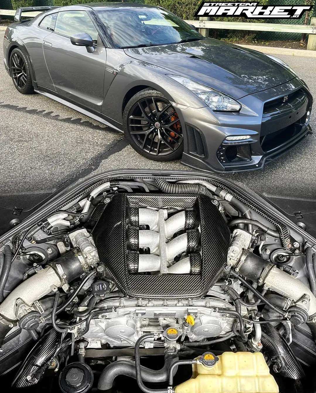 ~600whp 2014 Nissan GT-R in Gun Metallic with 36,000 miles for sale! This stunning GT-R is outfitted with a full Tommy Kaira 8-piece wet carbon kit ($14K) along with a few power modifications. The VR38DETT features AMS carbon fiber intakes, real carbon fiber engine cover, and an AMS front mount intercooler. The fuel system was upgraded as well with the installation of dual ASNU 340lph in tank fuel pumps and a set of FIC 1150cc fuel injectors. Additional upgrades include a VRSF catless y-pipe, Armytrix 90mm catback with a valvetronic remote, and Motorsport Tech 15mm/20mm spacers. Modifications were installed by Fury Automotive and tuning was handled via EcuTek ProECU by John Visconti of Visconti Tuning on 93 octane. The car has never been dyno'd, however the owner notes it should make around 600whp with this setup. This GT-R runs strong with no issues, service record receipts are available, and an oil/brake change was just completed this week! No accidents!