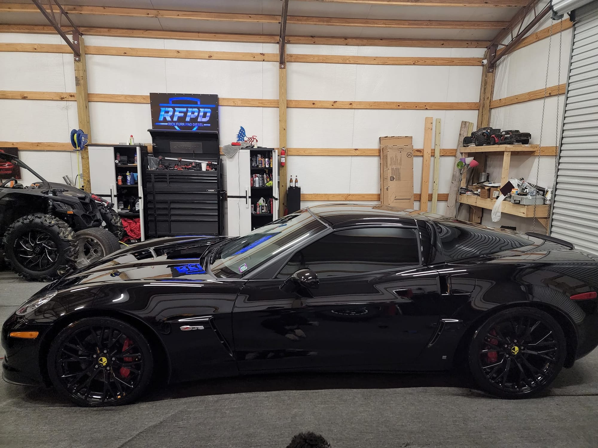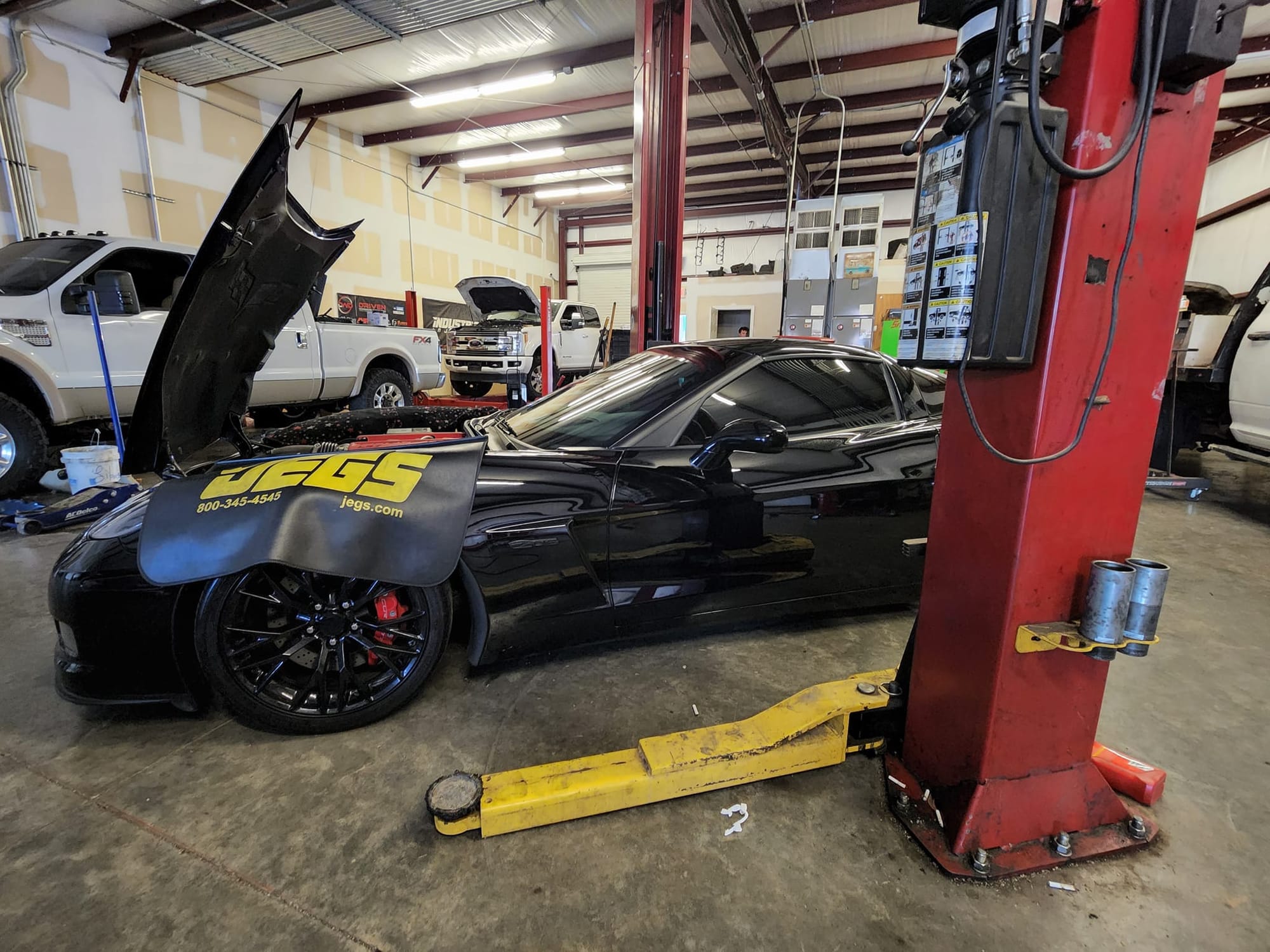 ~620whp 2006 Chevrolet Corvette Z06 in Black with 2,600 miles for sale! This sinister low mileage C6Z is powered by a 7.0L LS7 that’s matched with an A&A supercharger kit, and mated to a T56 6-speed manual transmission. The supercharger kit utilizes a V3-Ti trim head unit that’s finished in Satin Black, followed by a 4.0” pulley and 50mm bypass valve. Additional upgrades include a set of 650cc fuel injectors, Boost-A-Pump, C6 aluminum radiator, C7 Z06 wheels/tires, and an aftermarket sound system (head unit/speakers/custom sub box with 12” sub). This is a relatively fresh setup that was installed by Rick Furr Pro Diesel, and tuning was handled by Herold Motorsports with an estimated output of around 620whp. Receipts are available! Clean title!