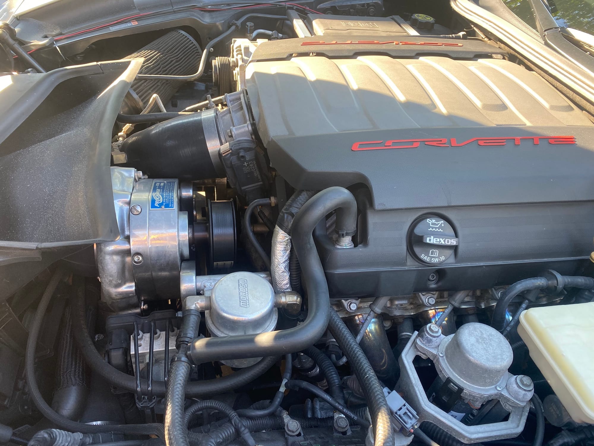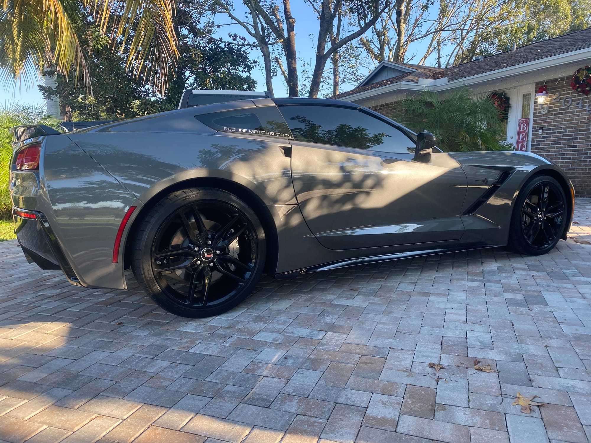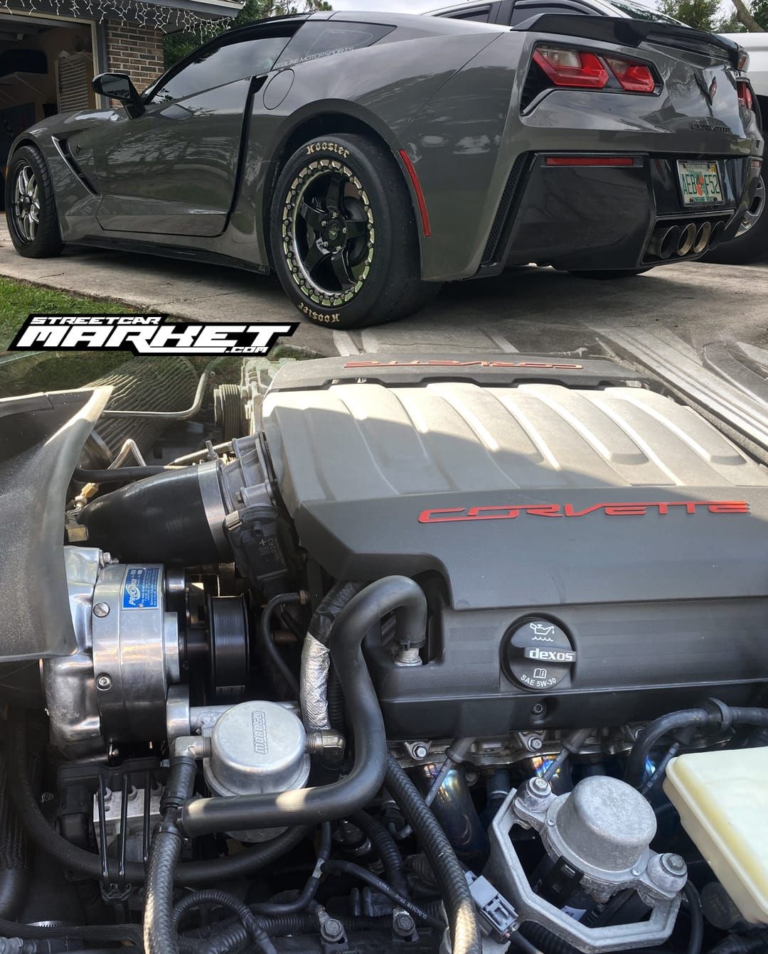 628whp 2015 Chevrolet Corvette Stingray 2LT in Shark Gray with 52,000 miles for sale! This clean C7 was modified by Redline Motorsports, who paired the 6.2L LT1 with a P1 ProCharger (installed @ 9K miles) along with a handful of additional upgrades. The power produced from this combination is transferred to the rear through an 8-speed paddle shift automatic transmission with a Circle D 4000 stall converter. Further equipped with a Moroso catch can, TSP headers/x-pipe, Alky Control dual nozzle methanol injection system, adjustable rear sway bar/toe links, laser jammer, and Carbon Flash side skirts. Tuning was finalized by Howard at Redline Motorsports with an output of 628whp/594wtq, resulting in a reliable setup that runs bottom 10-second passes, it previously ran a 10.378 @ 135.66mph in the 1/4-mile. This ProCharged C7 can be driven across the country without any issues, the owner and his wife cruise the car everywhere they go, and it has never let them down. Receipts for the work performed are available! Clean title!
