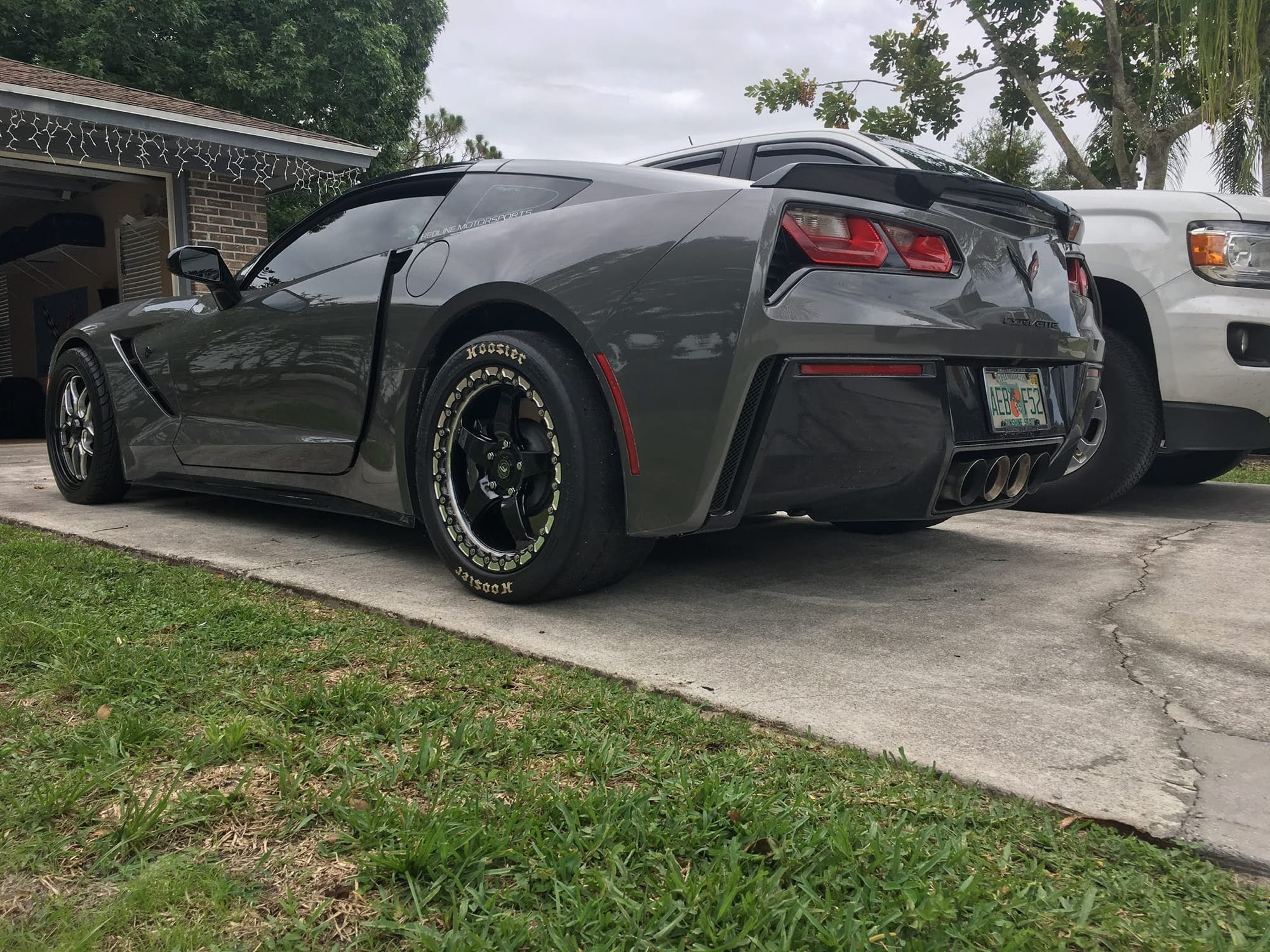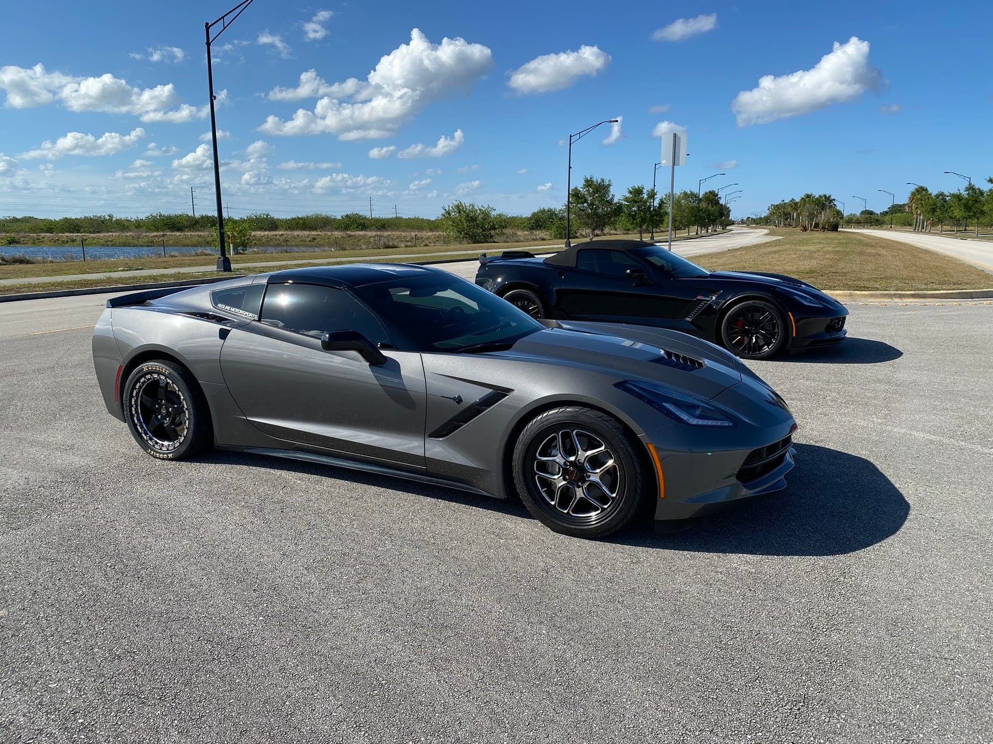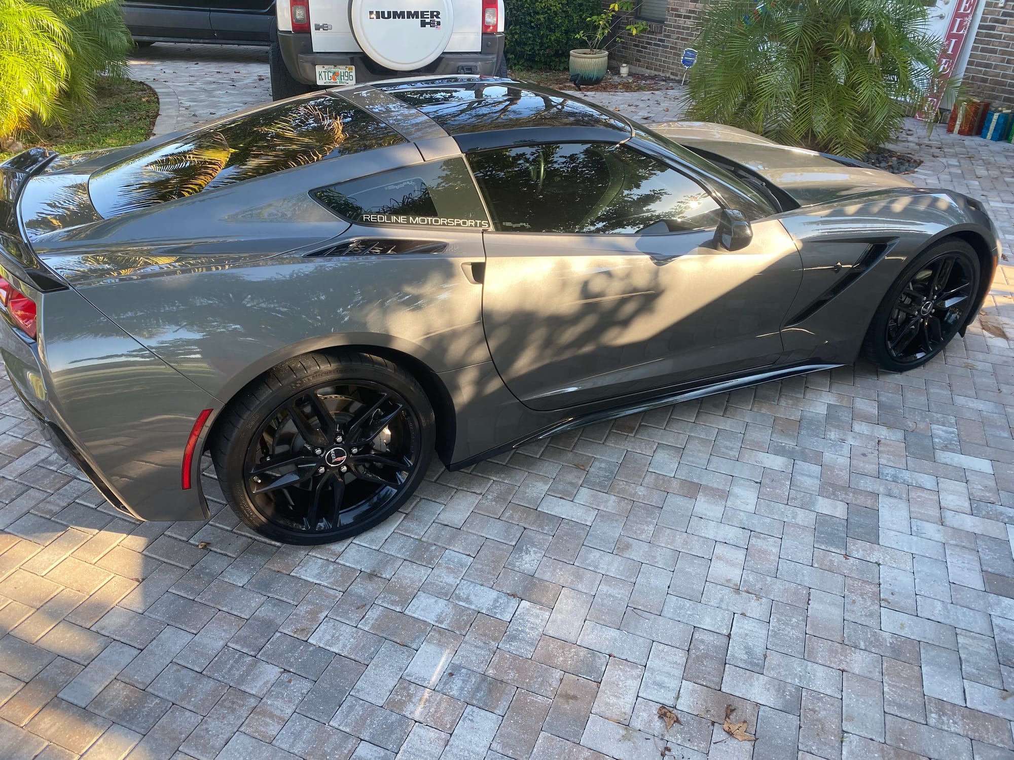 628whp 2015 Chevrolet Corvette Stingray 2LT in Shark Gray with 52,000 miles for sale! This clean C7 was modified by Redline Motorsports, who paired the 6.2L LT1 with a P1 ProCharger (installed @ 9K miles) along with a handful of additional upgrades. The power produced from this combination is transferred to the rear through an 8-speed paddle shift automatic transmission with a Circle D 4000 stall converter. Further equipped with a Moroso catch can, TSP headers/x-pipe, Alky Control dual nozzle methanol injection system, adjustable rear sway bar/toe links, laser jammer, and Carbon Flash side skirts. Tuning was finalized by Howard at Redline Motorsports with an output of 628whp/594wtq, resulting in a reliable setup that runs bottom 10-second passes, it previously ran a 10.378 @ 135.66mph in the 1/4-mile. This ProCharged C7 can be driven across the country without any issues, the owner and his wife cruise the car everywhere they go, and it has never let them down. Receipts for the work performed are available! Clean title!
