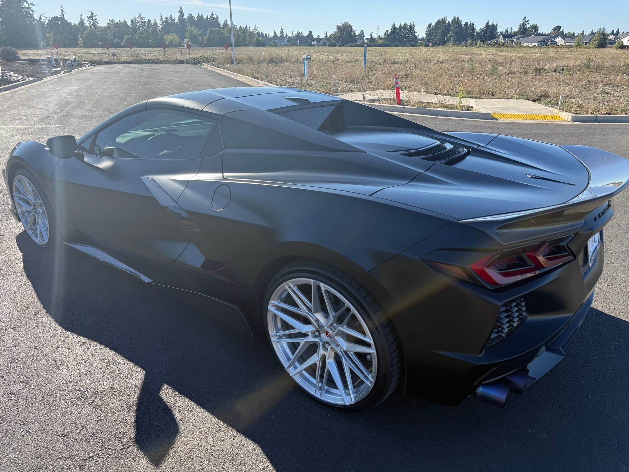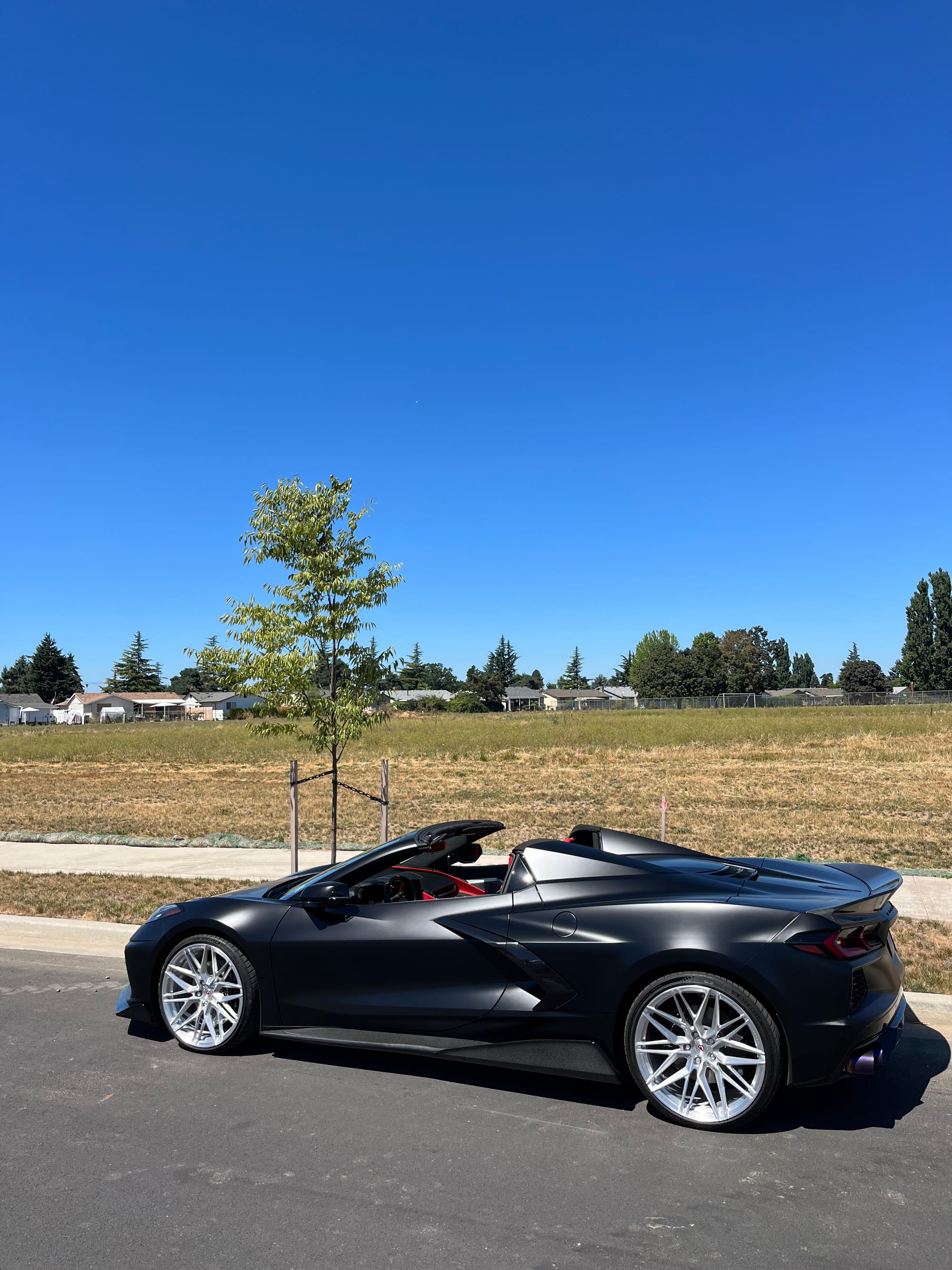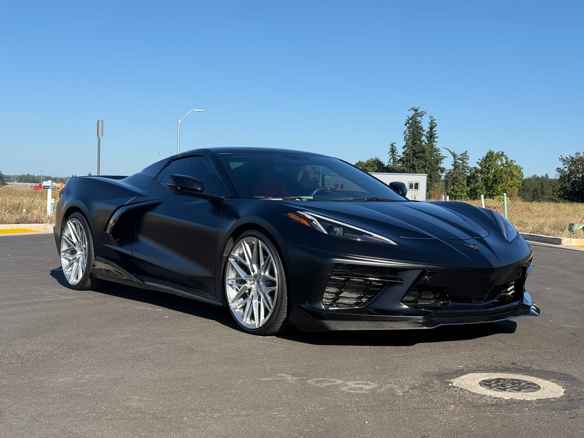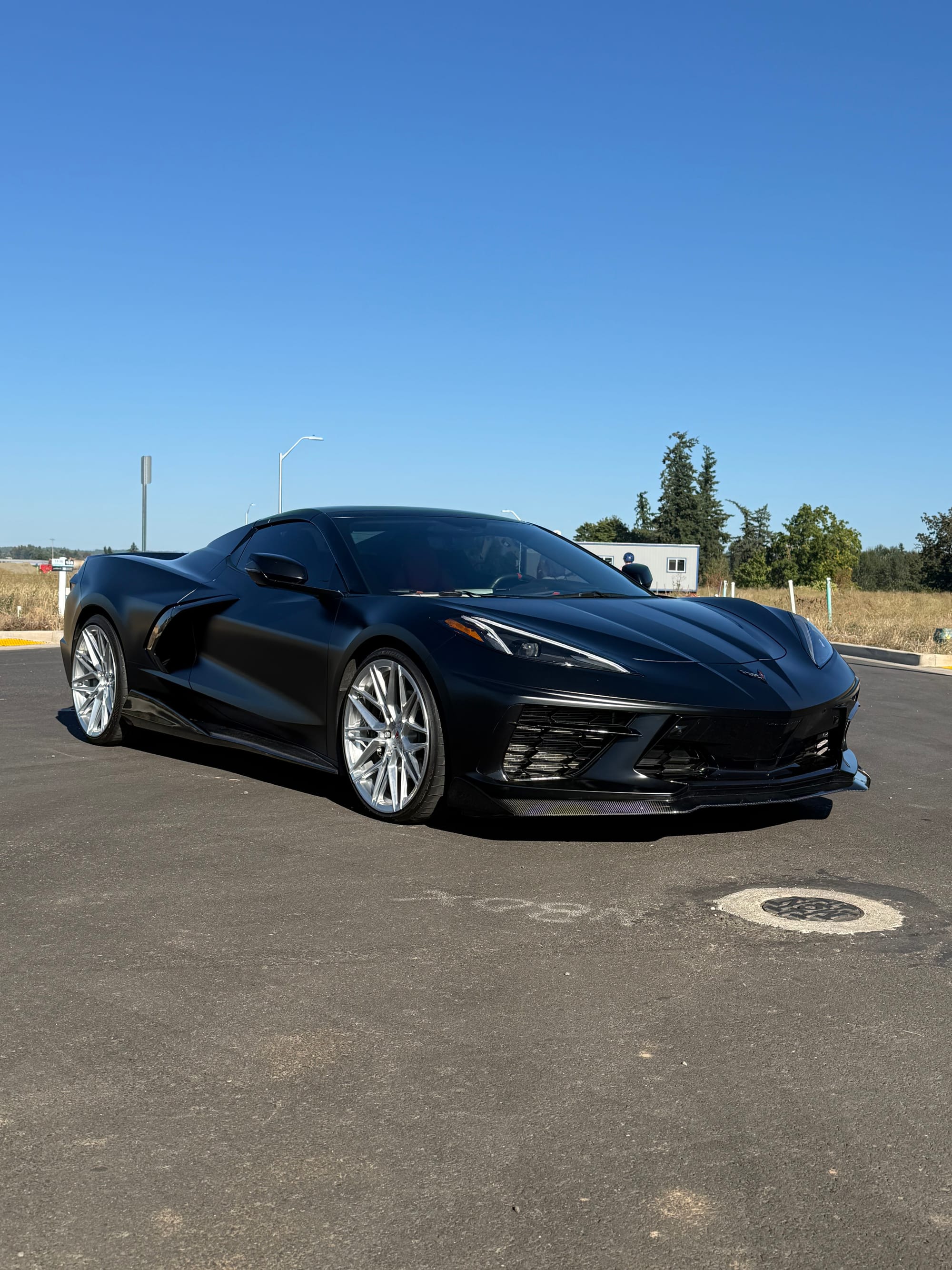 688whp 2021 Chevrolet Corvette Stingray Convertible 3LT in Black with 7,961 miles for sale! This C8 was modified by Doc Race, the 6.2L LT2 was armed with their custom twin turbo kit, which utilizes a pair of PTE6466 turbochargers. This setup employs the factory Tremec TR-9080 8-speed dual-clutch transmission, however a Peitz Performance clutch pressure controller was installed to enable more clutch pressure in the gearbox and prevent clutch slippage, allowing the car to hold additional horsepower/torque with stock clutches. The current full titanium exhaust configuration with Soul Performance catalytic converters sounds absolutely incredible paired with the ear-pleasing sounds generated from the twin turbos. The ECU was unlocked and tuned via HP Tuners MPVI3 OBDII by Peitz Performance with an output of 688whp on 6Ibs of boost and 92 octane pump gas. The car ran a 10.6 @ 128mph in the 1/4-mile with this setup via Dragy. In terms of aesthetics, the stunning factory black paint was topped with XPEL Stealth Paint Protection Film (provides a unique satin finish), which was further protected with a ceramic coating, and clear was applied to the carbon components as well. Carbon upgrades include a C7 carbon fiber front splitter/side skirts, and an RSC Tuning carbon fiber duckbill spoiler. There are currently only 3K miles on the setup! Clean title!