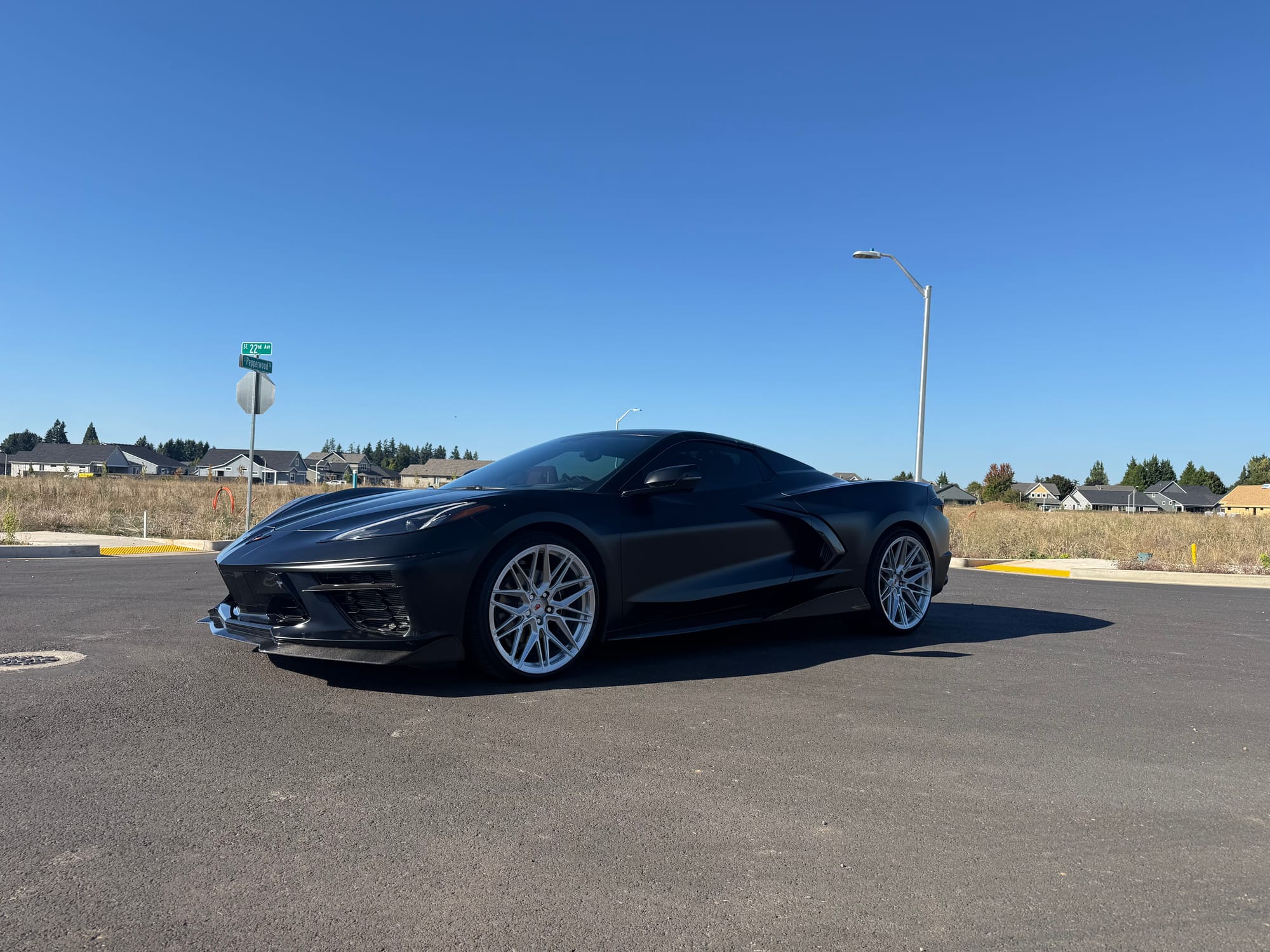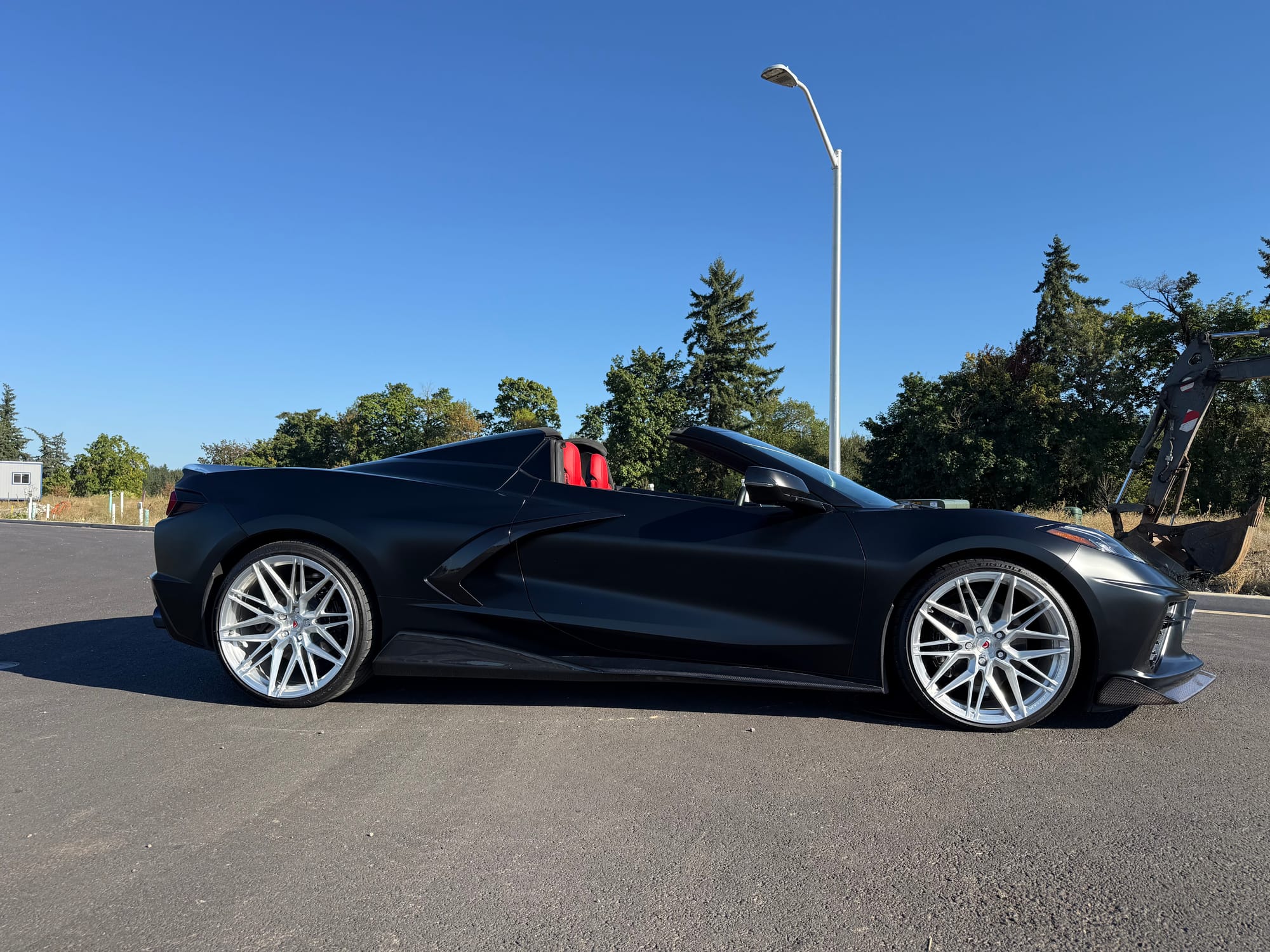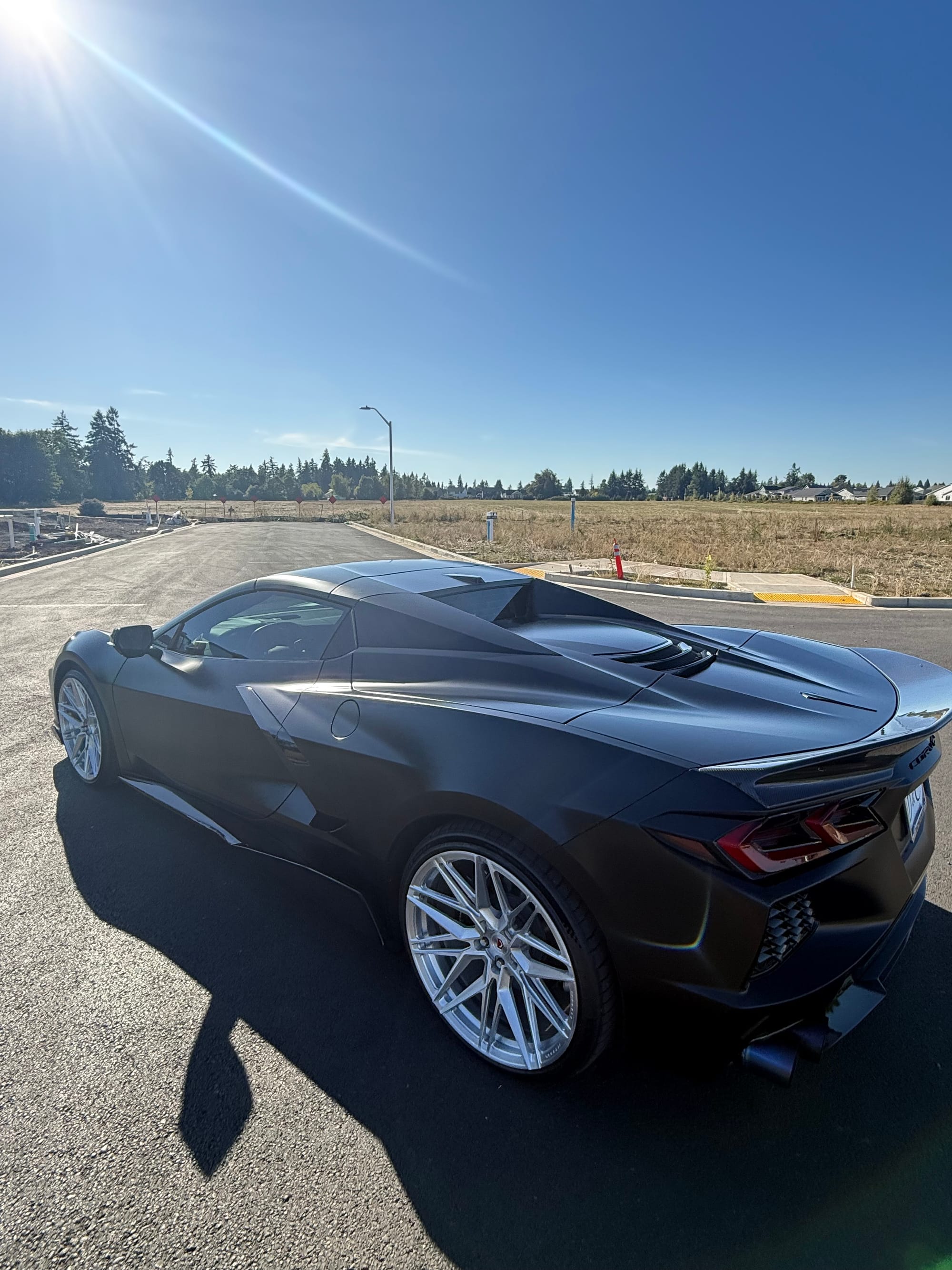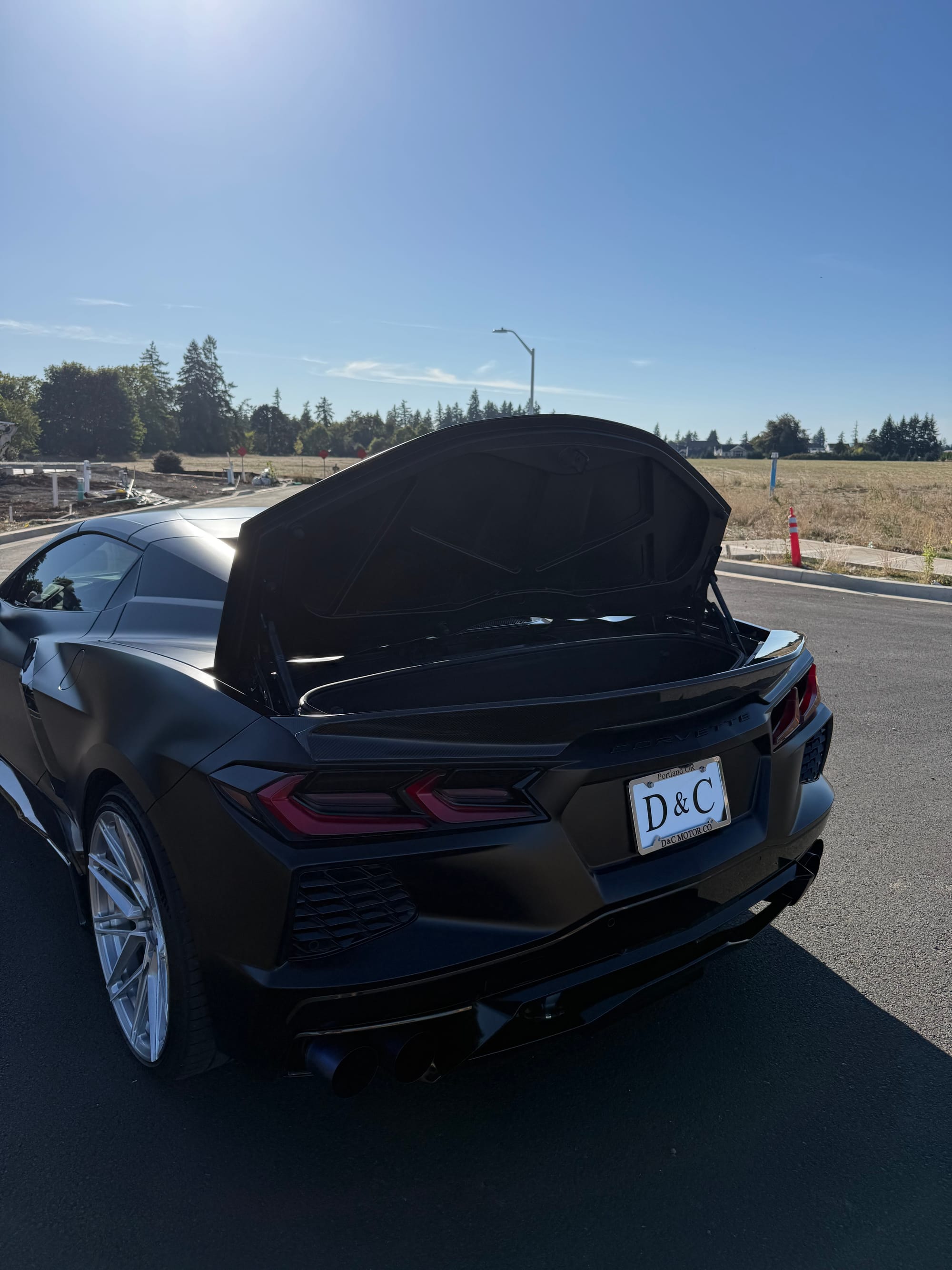688whp 2021 Chevrolet Corvette Stingray Convertible 3LT in Black with 7,961 miles for sale! This C8 was modified by Doc Race, the 6.2L LT2 was armed with their custom twin turbo kit, which utilizes a pair of PTE6466 turbochargers. This setup employs the factory Tremec TR-9080 8-speed dual-clutch transmission, however a Peitz Performance clutch pressure controller was installed to enable more clutch pressure in the gearbox and prevent clutch slippage, allowing the car to hold additional horsepower/torque with stock clutches. The current full titanium exhaust configuration with Soul Performance catalytic converters sounds absolutely incredible paired with the ear-pleasing sounds generated from the twin turbos. The ECU was unlocked and tuned via HP Tuners MPVI3 OBDII by Peitz Performance with an output of 688whp on 6Ibs of boost and 92 octane pump gas. The car ran a 10.6 @ 128mph in the 1/4-mile with this setup via Dragy. In terms of aesthetics, the stunning factory black paint was topped with XPEL Stealth Paint Protection Film (provides a unique satin finish), which was further protected with a ceramic coating, and clear was applied to the carbon components as well. Carbon upgrades include a C7 carbon fiber front splitter/side skirts, and an RSC Tuning carbon fiber duckbill spoiler. There are currently only 3K miles on the setup! Clean title!