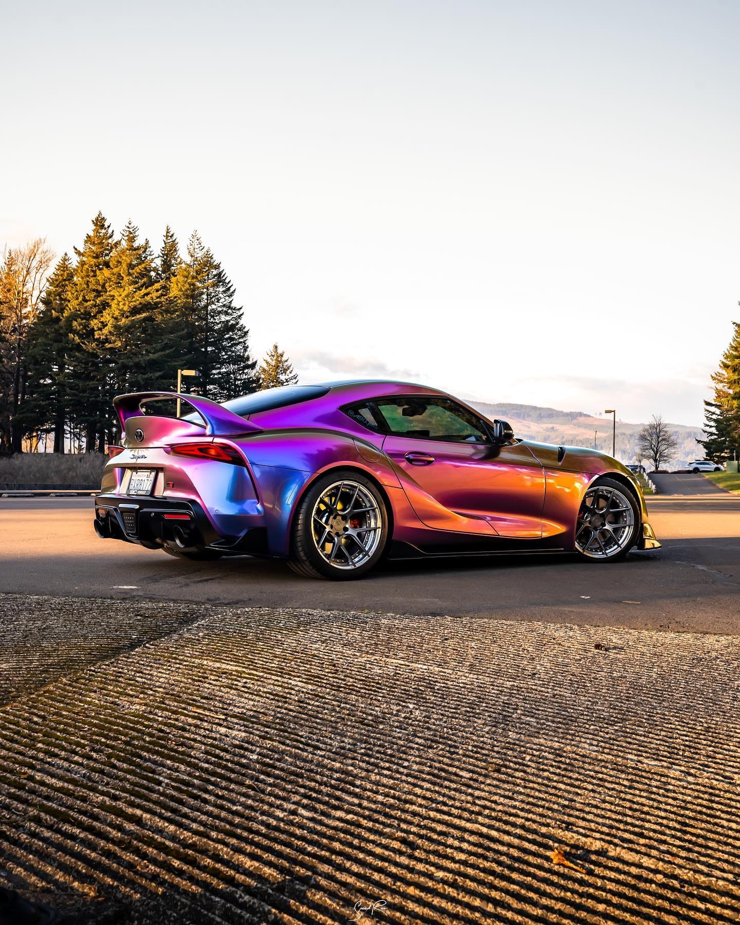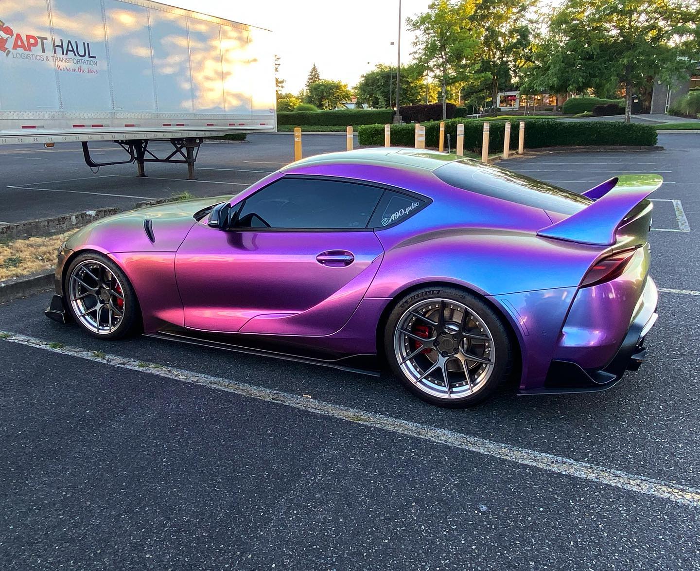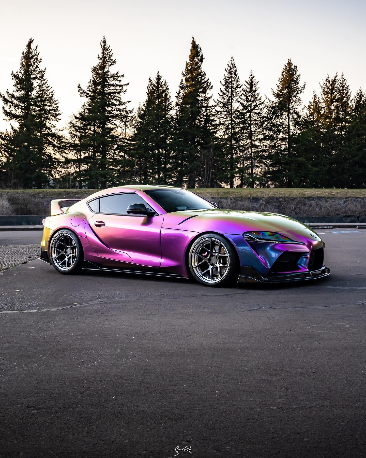 713whp 2020 Toyota Supra Launch Edition in Nocturnal Black (Wrapped) with 20,000 miles for sale! Being no. 319 of the 1,500 Launch Editions made, this one features a wide variety of performance upgrades that were installed by AR Motorsports. Power is sourced from a turbocharged B58 3.0L inline-six that’s paired with an ETS 6466 PTE turbo kit, and mated to a Jack’s Stage 2 950 Drag 8-speed automatic transmission. In regards to the fuel system, this setup utilizes EOSpeed port injection with 750cc injectors, Visconti LPFP, and a Visconti flex fuel kit. Tuning was finalized via EcuTek by Jeff Payne, this breathtaking Supra previously laid down 713whp on E70, however this setup is capable of producing 800+whp. The exterior looks absolutely amazing as it features an Inozetek Celestial Unicorn wrap that was completed by @wrap.magic, and the car is sitting on a nice set of BC Forged 3-piece HCS02 wheels. There are currently only 6K miles on the build with receipts for everything! Clean title!