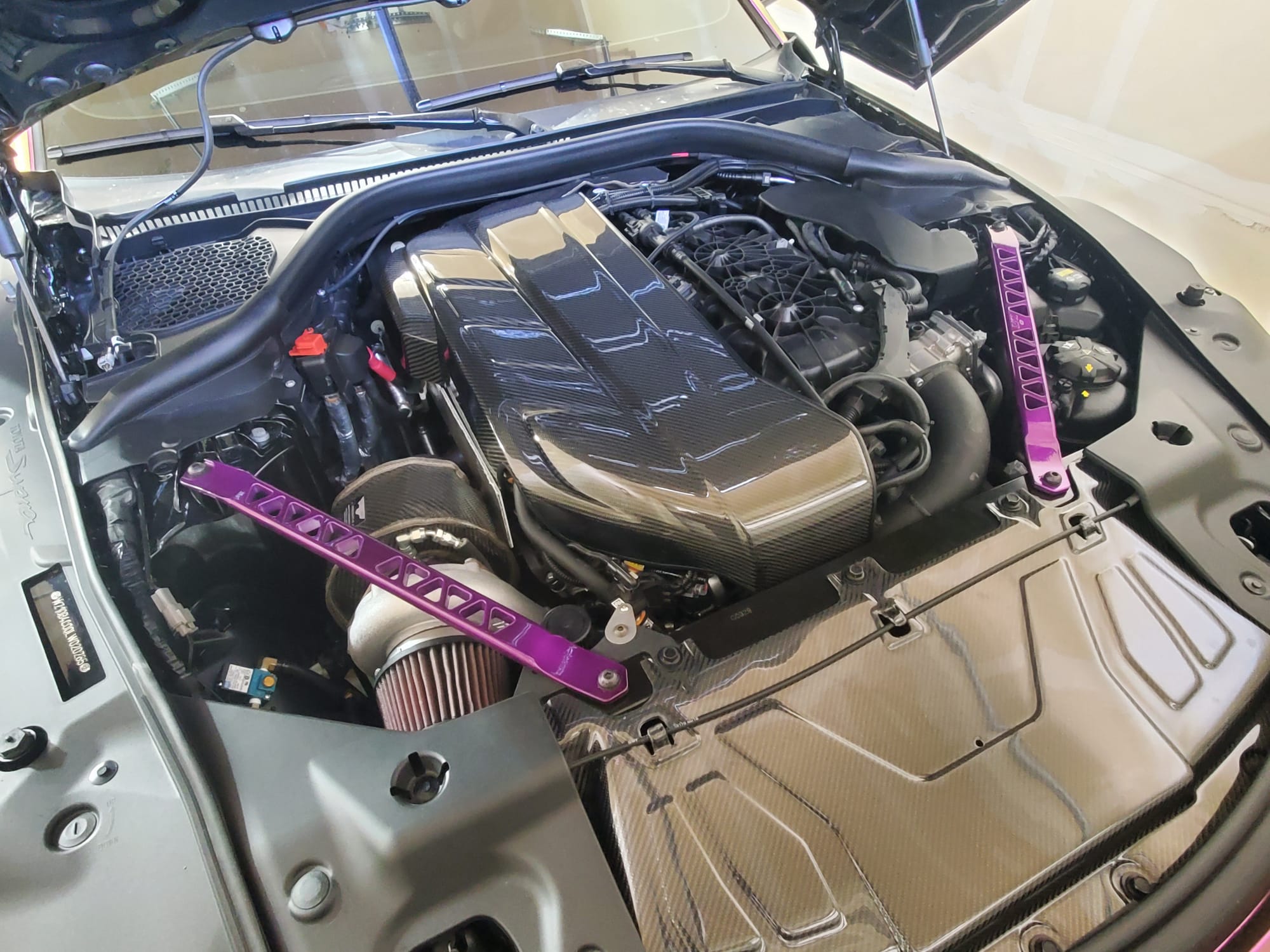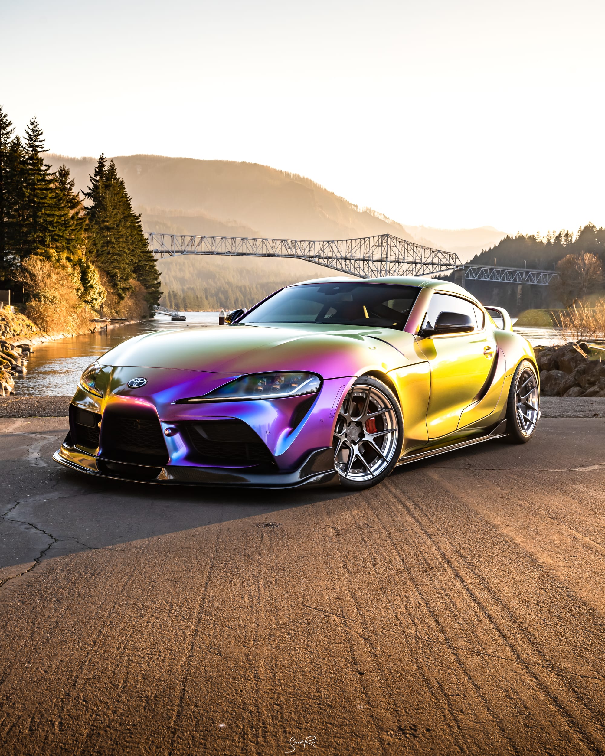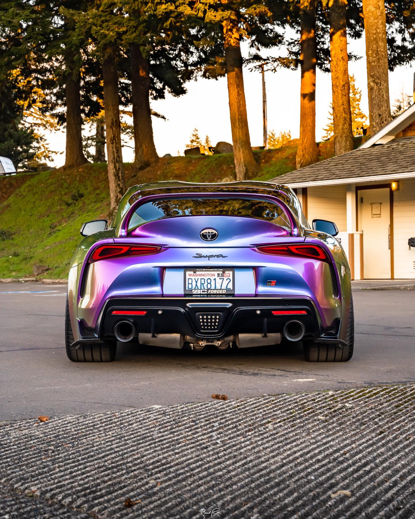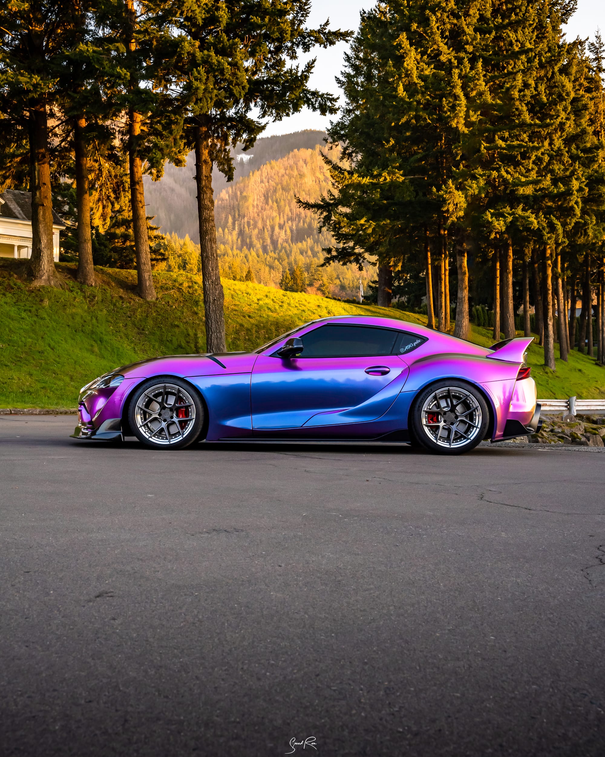 713whp 2020 Toyota Supra Launch Edition in Nocturnal Black (Wrapped) with 20,000 miles for sale! Being no. 319 of the 1,500 Launch Editions made, this one features a wide variety of performance upgrades that were installed by AR Motorsports. Power is sourced from a turbocharged B58 3.0L inline-six that’s paired with an ETS 6466 PTE turbo kit, and mated to a Jack’s Stage 2 950 Drag 8-speed automatic transmission. In regards to the fuel system, this setup utilizes EOSpeed port injection with 750cc injectors, Visconti LPFP, and a Visconti flex fuel kit. Tuning was finalized via EcuTek by Jeff Payne, this breathtaking Supra previously laid down 713whp on E70, however this setup is capable of producing 800+whp. The exterior looks absolutely amazing as it features an Inozetek Celestial Unicorn wrap that was completed by @wrap.magic, and the car is sitting on a nice set of BC Forged 3-piece HCS02 wheels. There are currently only 6K miles on the build with receipts for everything! Clean title!
