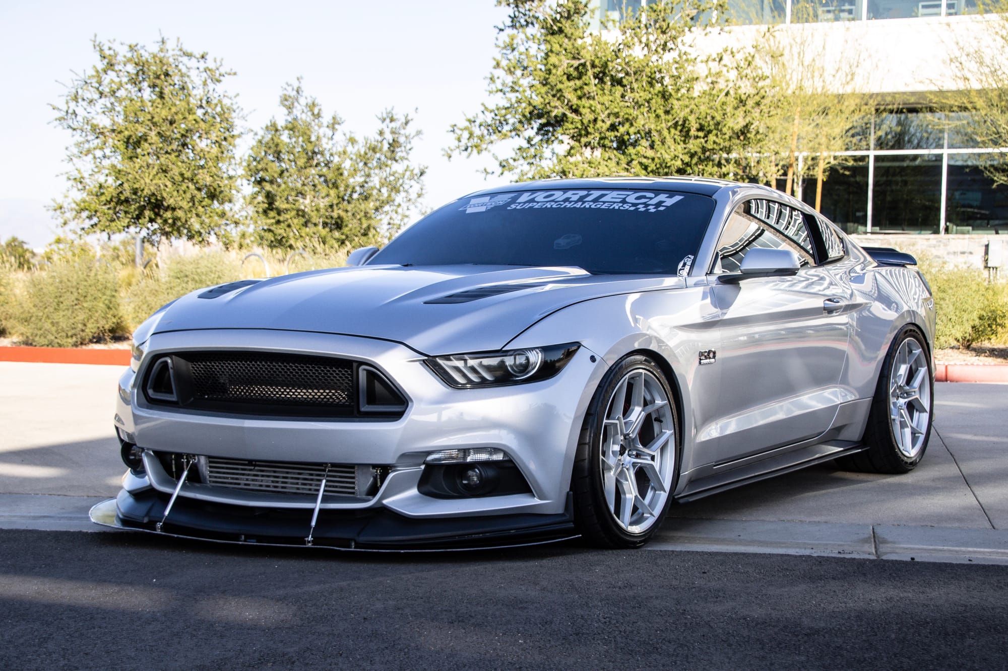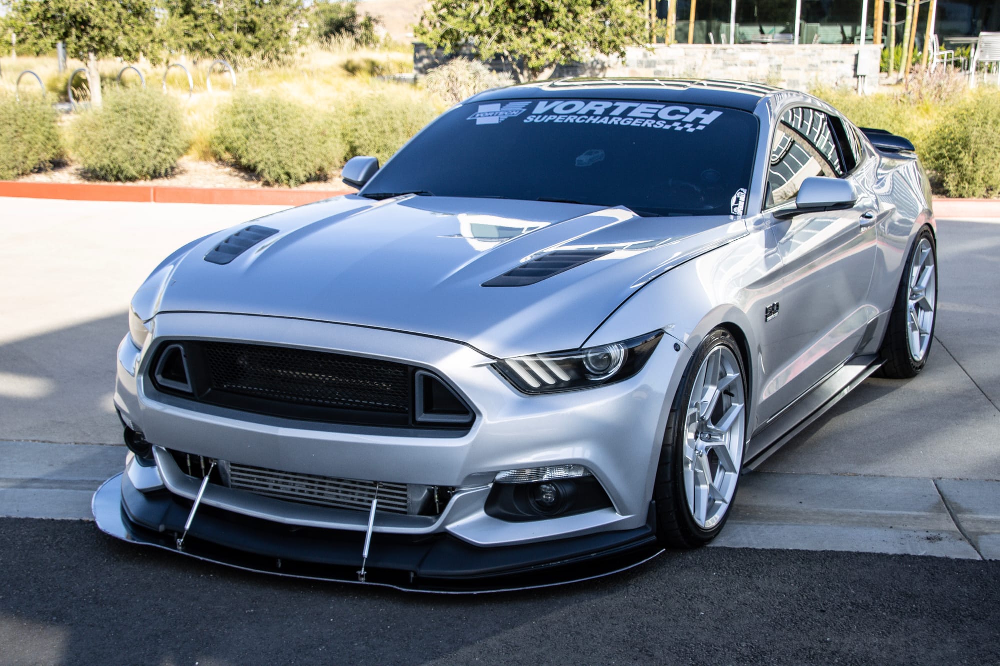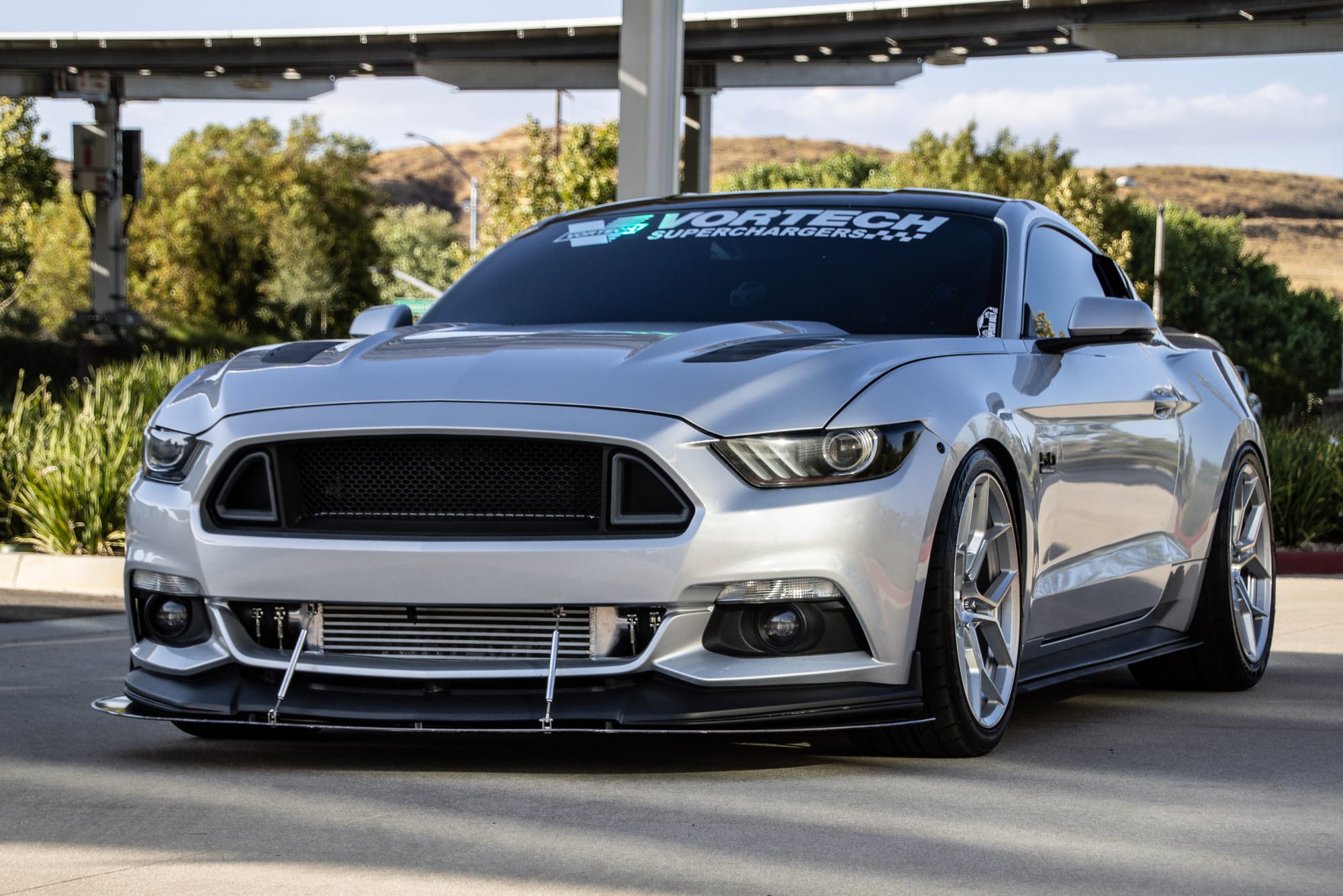 727whp 2016 Ford Mustang GT Premium in Ingot Silver with 78,000 miles for sale! Powered by a gen-II 5.0L Coyote that’s paired with a Vortech V-3 SI tuner kit, and mated to a Calimer 26 spline Stage 3 MT-82 6-speed manual transmission with a McLeod RXT 1200 twin disc clutch/flywheel. This S550 features a myriad of modifications, including MMR oil pump gears/crank sprocket, Max Flow Race BOV, polished intercooler, BBK long tube headers/catless x-pipe, Corsa Xtreme catback, GT350 half shafts, J-Fiber carbon fiber driveshaft, numerous Steeda components, several aesthetic upgrades, and more. Modifications were installed by the owner/PKauto/Ramzy, and tuning was handled by a very reputable performance shop in California with an output of 727whp. The fuel system was maxed out at this level, once the car is upgraded to a full return style fuel system with a fuel pressure regulator, it will make 850whp on E85 with a 3.33” pulley. The car is currently running full E85, the owner has the 3.33” pulley in hand. Only 5K miles on the modifications! Clean title!