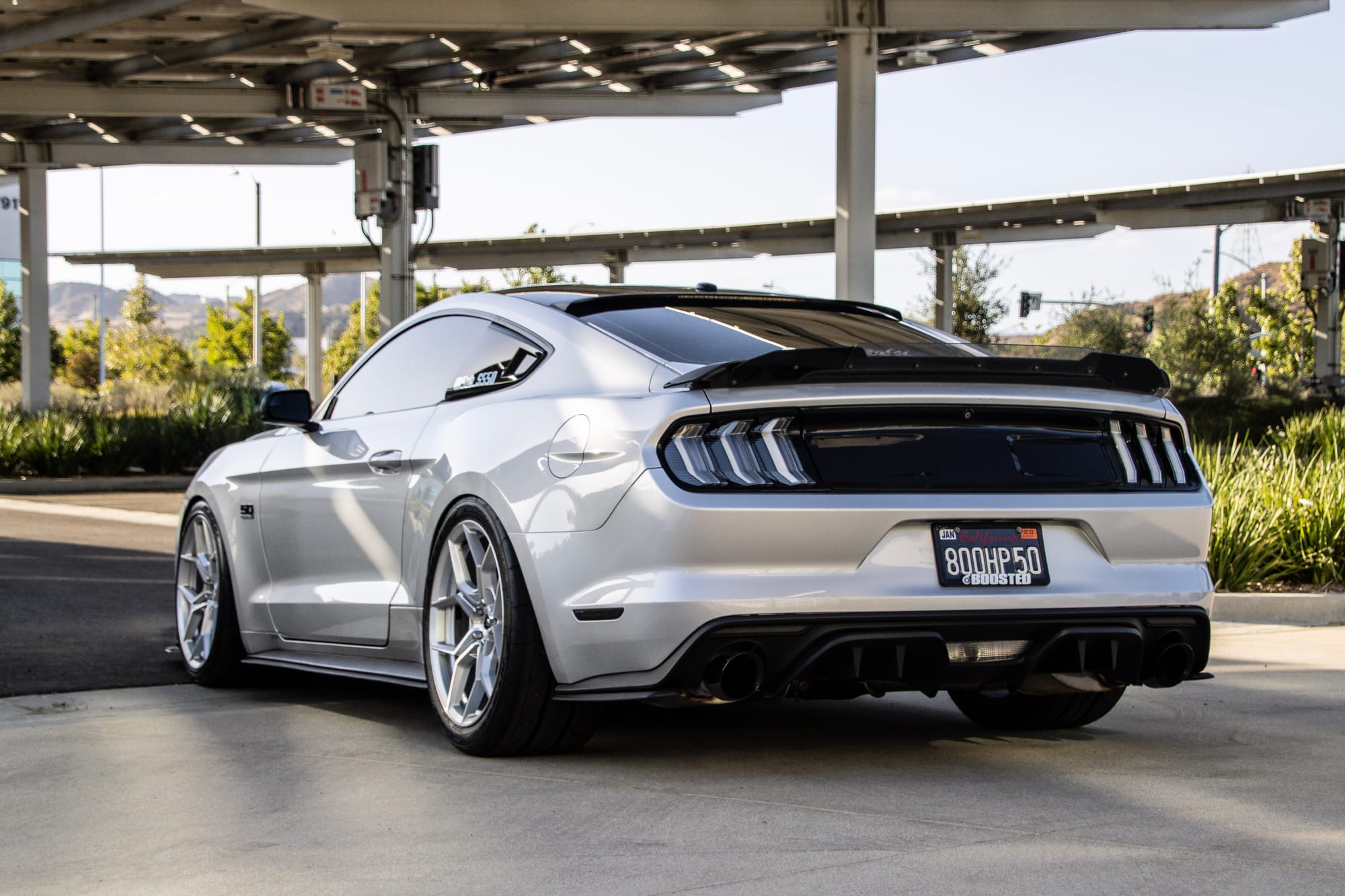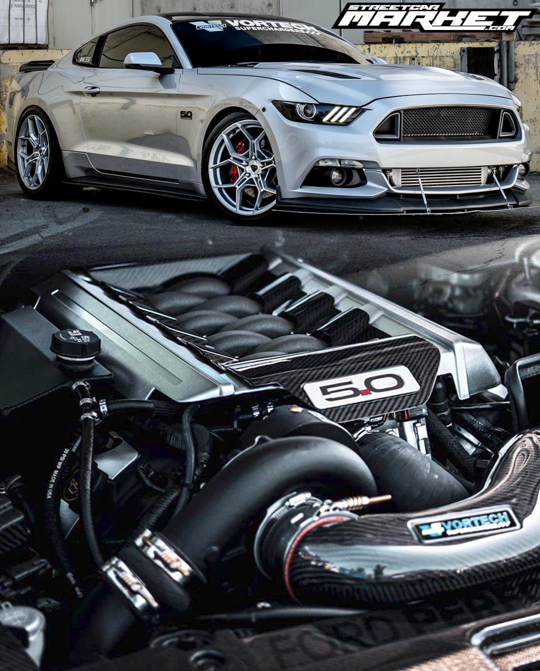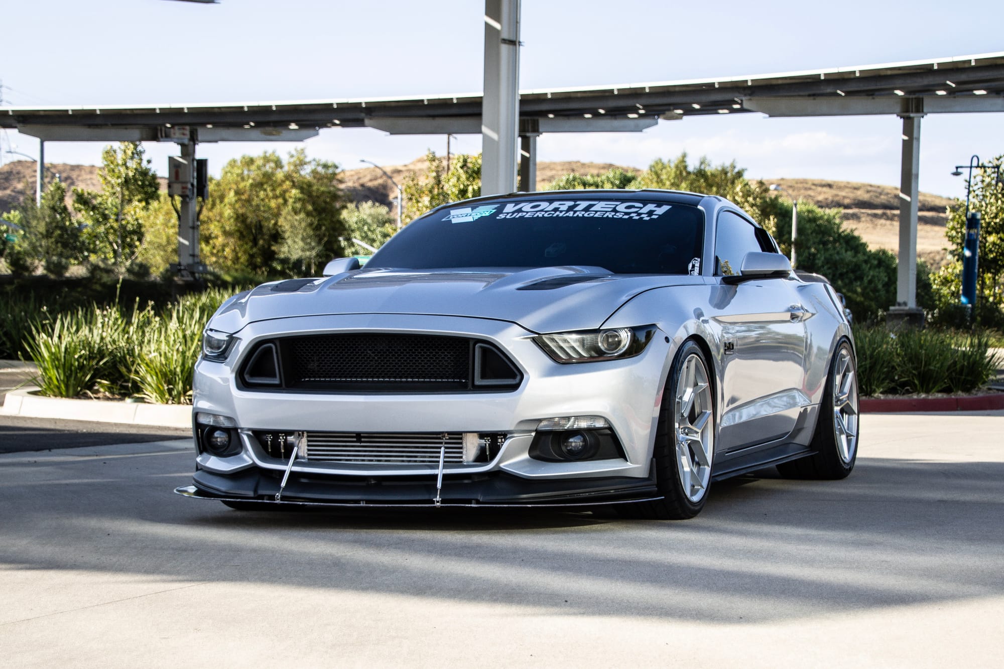 727whp 2016 Ford Mustang GT Premium in Ingot Silver with 78,000 miles for sale! Powered by a gen-II 5.0L Coyote that’s paired with a Vortech V-3 SI tuner kit, and mated to a Calimer 26 spline Stage 3 MT-82 6-speed manual transmission with a McLeod RXT 1200 twin disc clutch/flywheel. This S550 features a myriad of modifications, including MMR oil pump gears/crank sprocket, Max Flow Race BOV, polished intercooler, BBK long tube headers/catless x-pipe, Corsa Xtreme catback, GT350 half shafts, J-Fiber carbon fiber driveshaft, numerous Steeda components, several aesthetic upgrades, and more. Modifications were installed by the owner/PKauto/Ramzy, and tuning was handled by a very reputable performance shop in California with an output of 727whp. The fuel system was maxed out at this level, once the car is upgraded to a full return style fuel system with a fuel pressure regulator, it will make 850whp on E85 with a 3.33” pulley. The car is currently running full E85, the owner has the 3.33” pulley in hand. Only 5K miles on the modifications! Clean title!