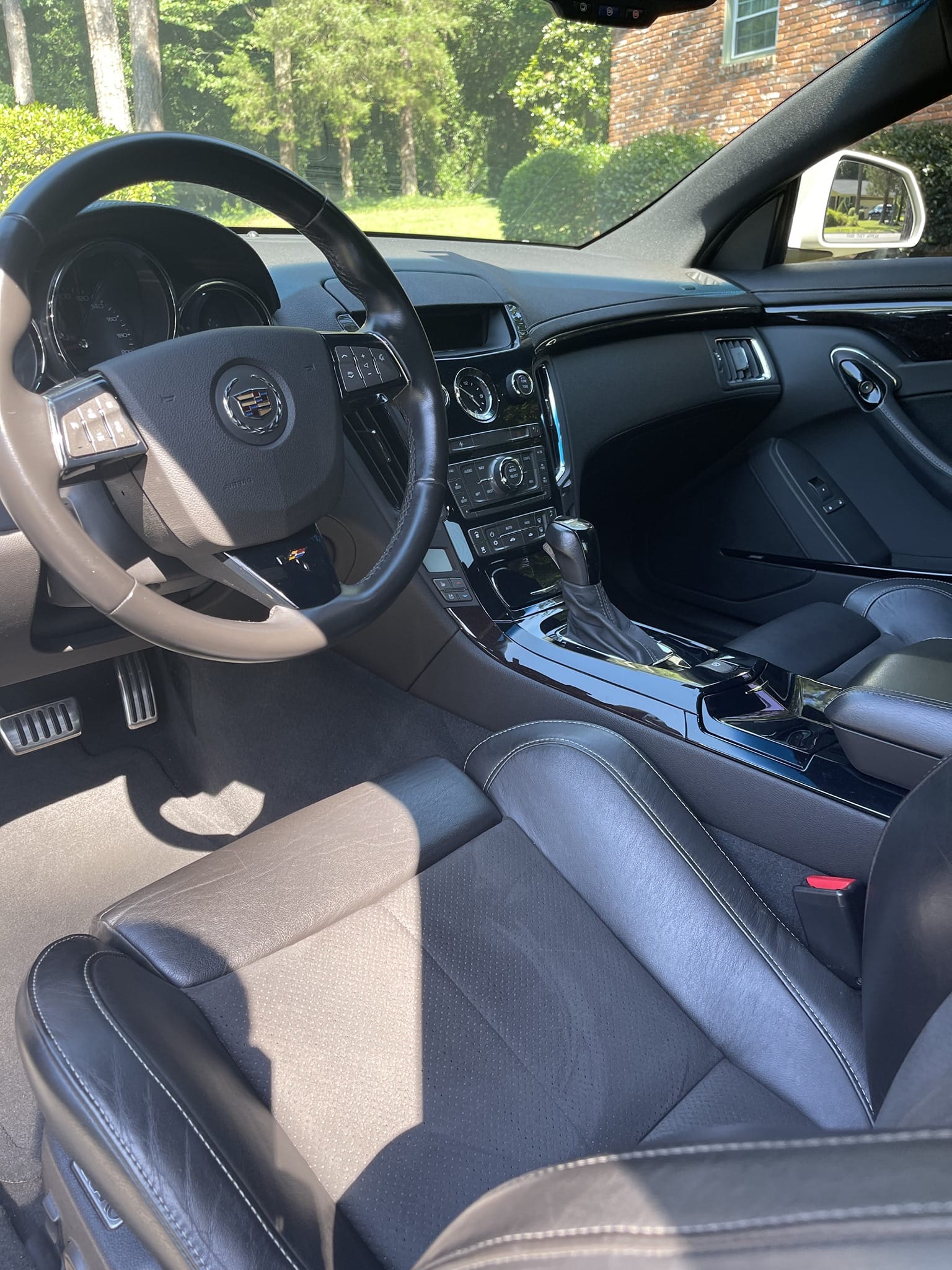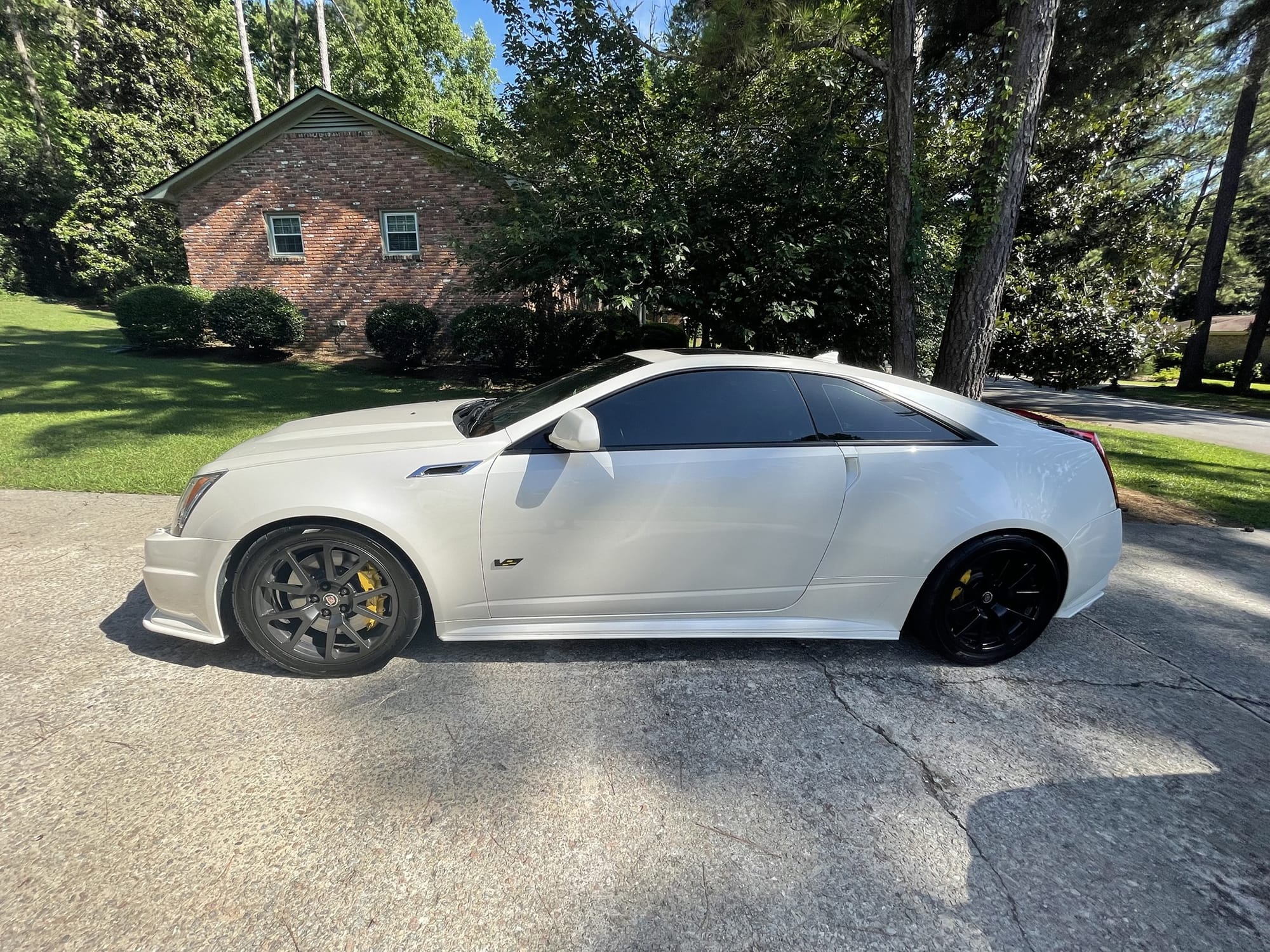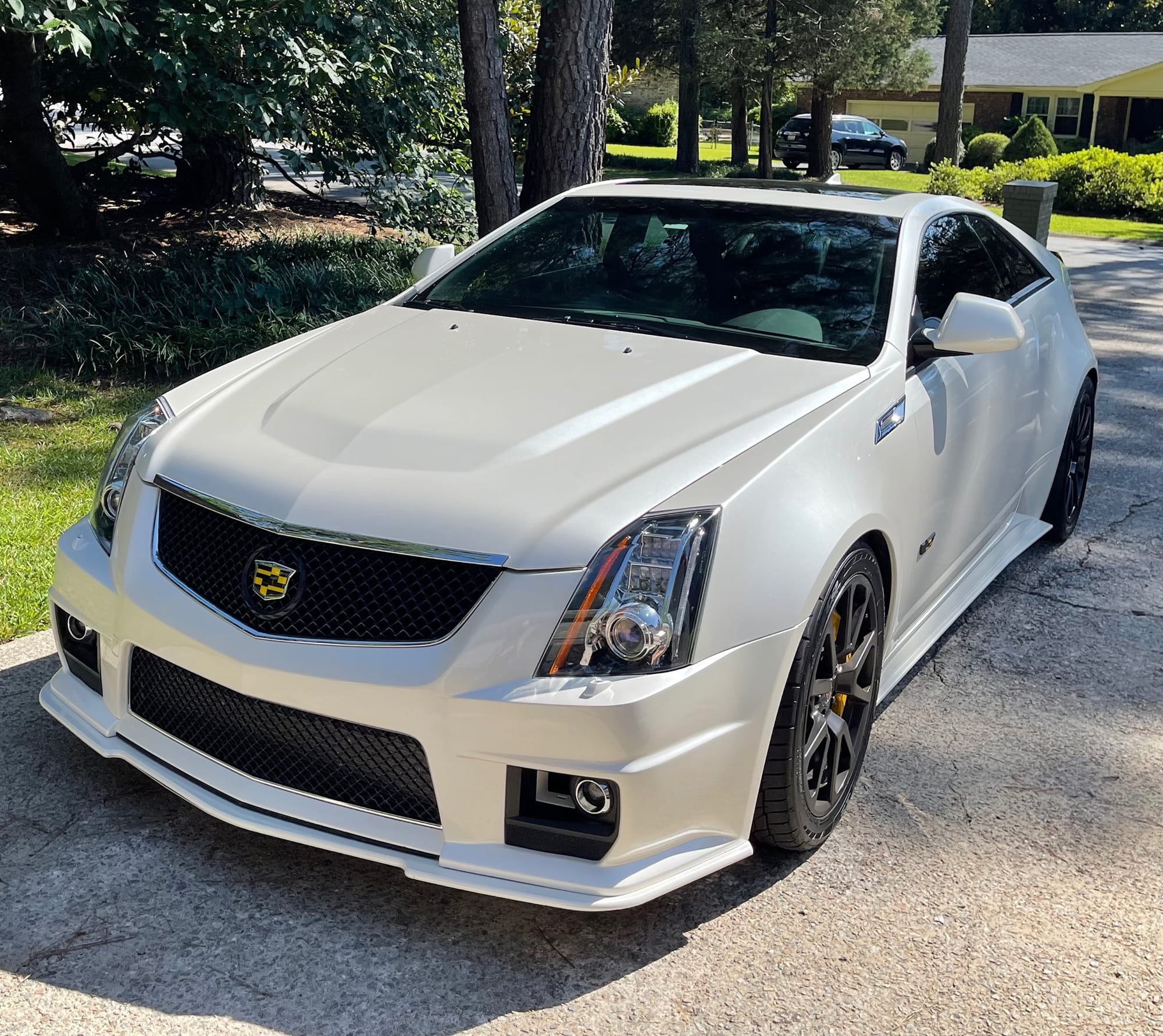 746whp 2013 Cadillac CTS-V Coupe in White Diamond with 35,442 (Chassis) miles for sale! This CTS-V packs a TSP block that's fitted with Wiseco pistons, H-beam rods, and a steel LSA crankshaft. The top end features a MTI stage 2 camshaft, LS7 lifters, dual valve springs, titanium retainers, 1-piece pushrods, and a 3-bolt upper cam sprocket. All topped with a ported supercharger/snout/throttle body that utilizes a 2.45" GripTec upper pulley, and 9.1 Metco lower pulley. The fuel system consists of a DSX fuel pump kit along with a set of Injector Dynamics 1050X fuel injectors. Additional upgrades include Kooks headers, x-pipe, Corsa axleback exhaust, reinforced brick, DMS heat exchanger, and more. Modifications were installed by Motorsport Technologies, Inc., and tuning was handled by Pat G Tuning with an output of 746whp/737wtq. The owner notes this CTS-V is in excellent condition with receipts for the work that was performed! Only 2K miles on the modifications! Clean title!