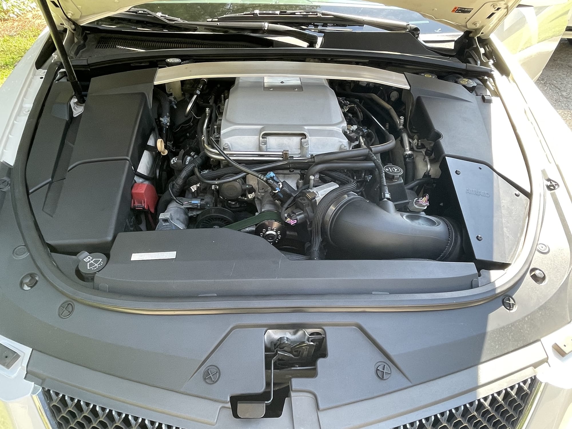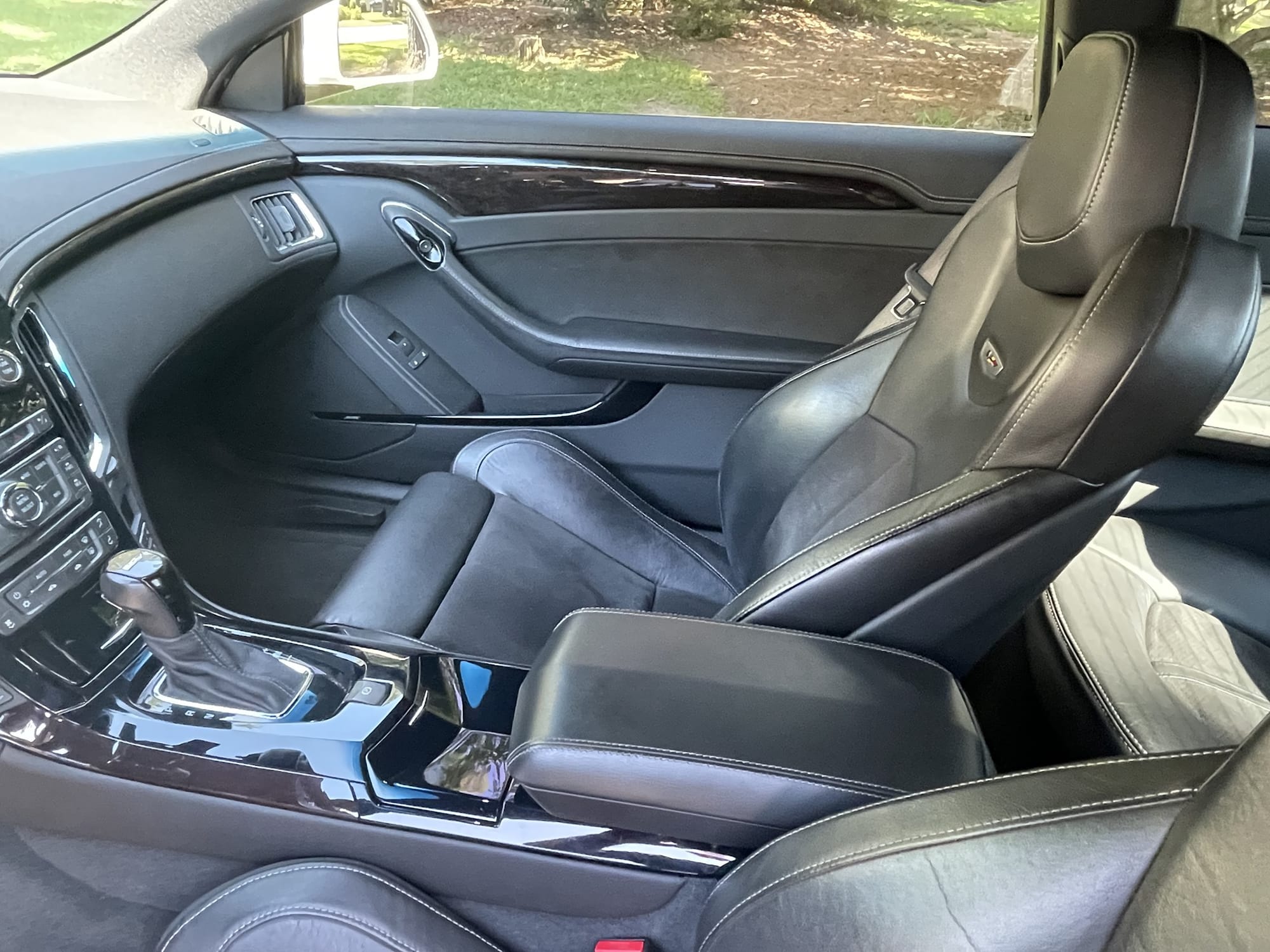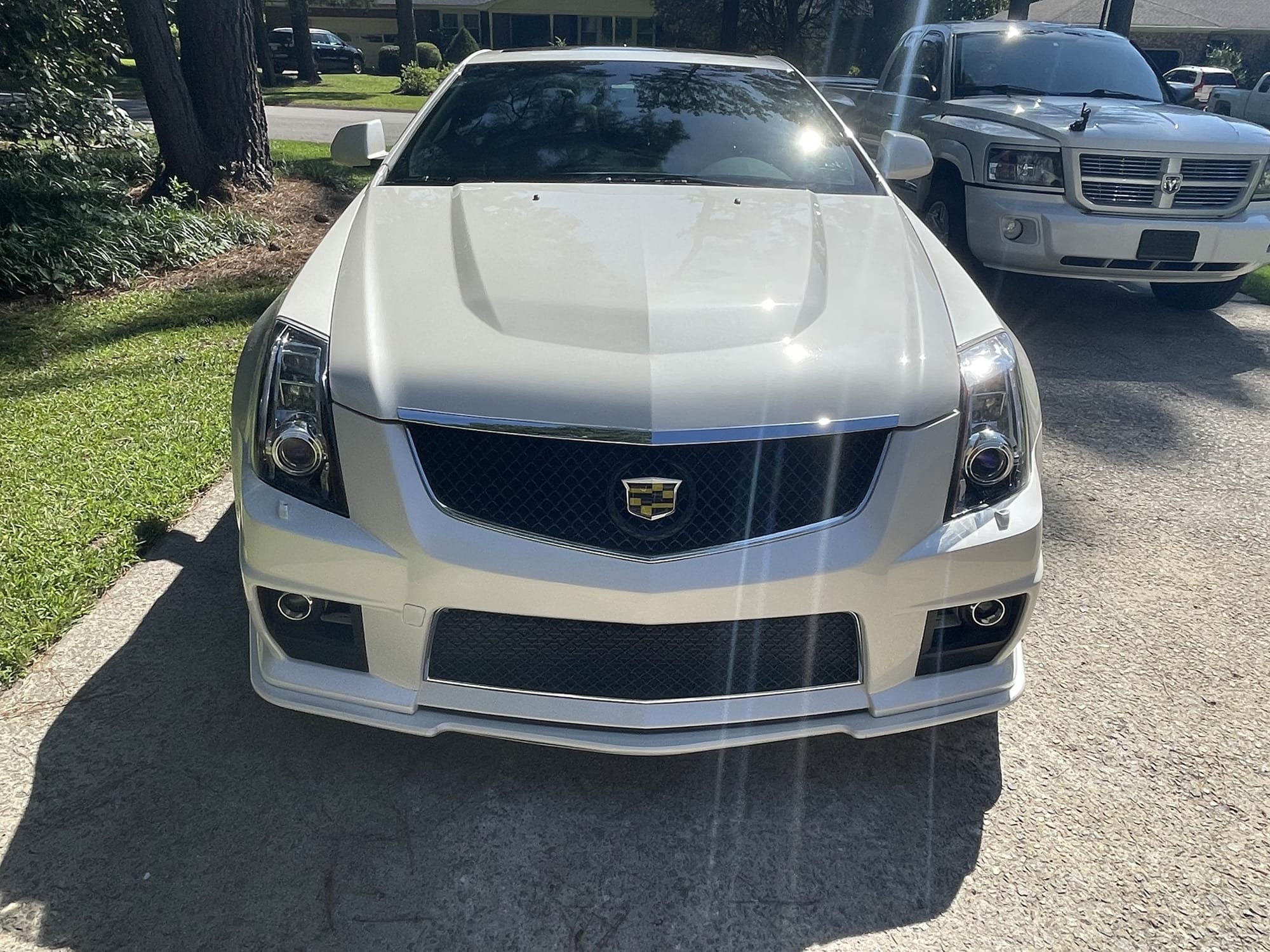 746whp 2013 Cadillac CTS-V Coupe in White Diamond with 35,442 (Chassis) miles for sale! This CTS-V packs a TSP block that's fitted with Wiseco pistons, H-beam rods, and a steel LSA crankshaft. The top end features a MTI stage 2 camshaft, LS7 lifters, dual valve springs, titanium retainers, 1-piece pushrods, and a 3-bolt upper cam sprocket. All topped with a ported supercharger/snout/throttle body that utilizes a 2.45" GripTec upper pulley, and 9.1 Metco lower pulley. The fuel system consists of a DSX fuel pump kit along with a set of Injector Dynamics 1050X fuel injectors. Additional upgrades include Kooks headers, x-pipe, Corsa axleback exhaust, reinforced brick, DMS heat exchanger, and more. Modifications were installed by Motorsport Technologies, Inc., and tuning was handled by Pat G Tuning with an output of 746whp/737wtq. The owner notes this CTS-V is in excellent condition with receipts for the work that was performed! Only 2K miles on the modifications! Clean title!