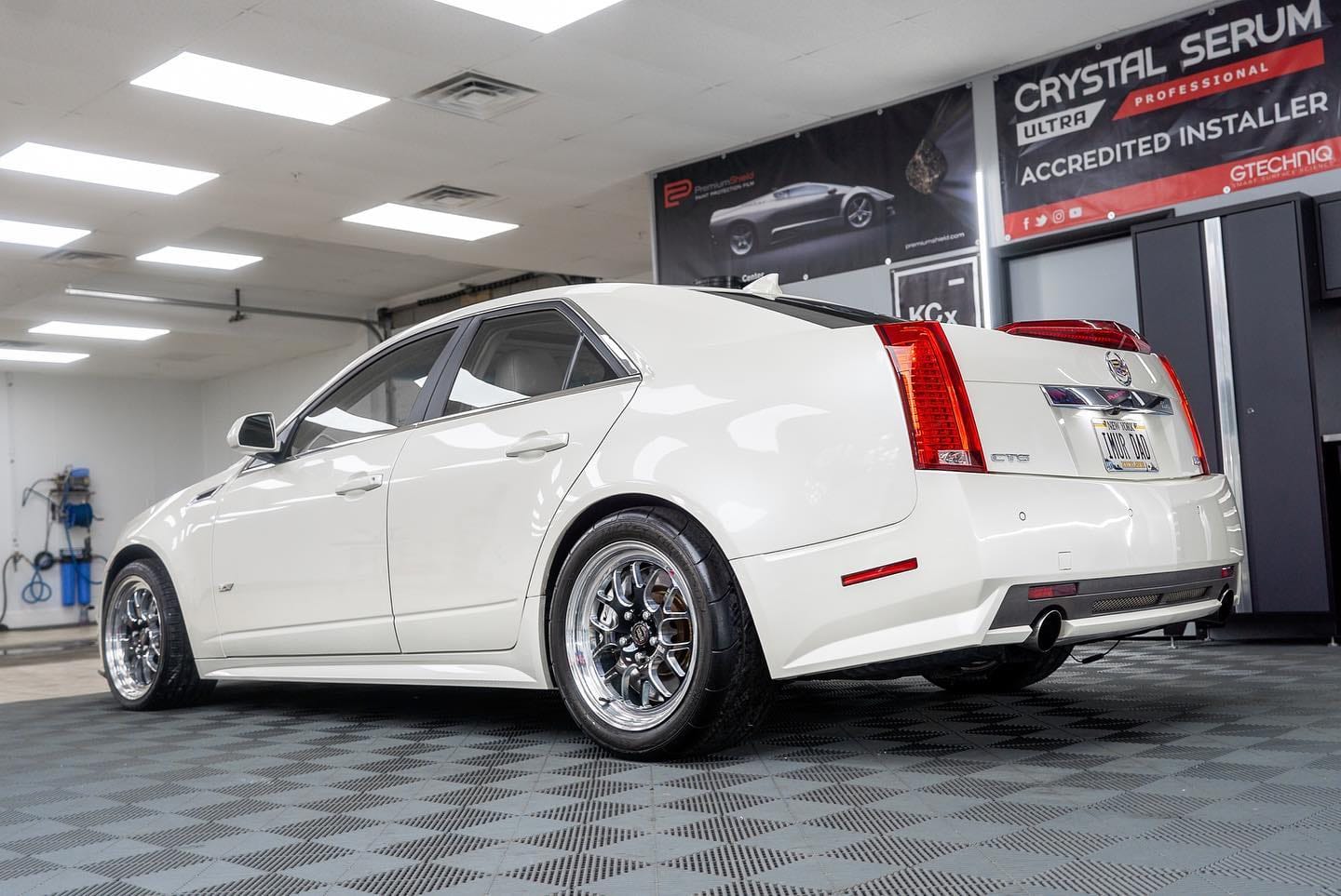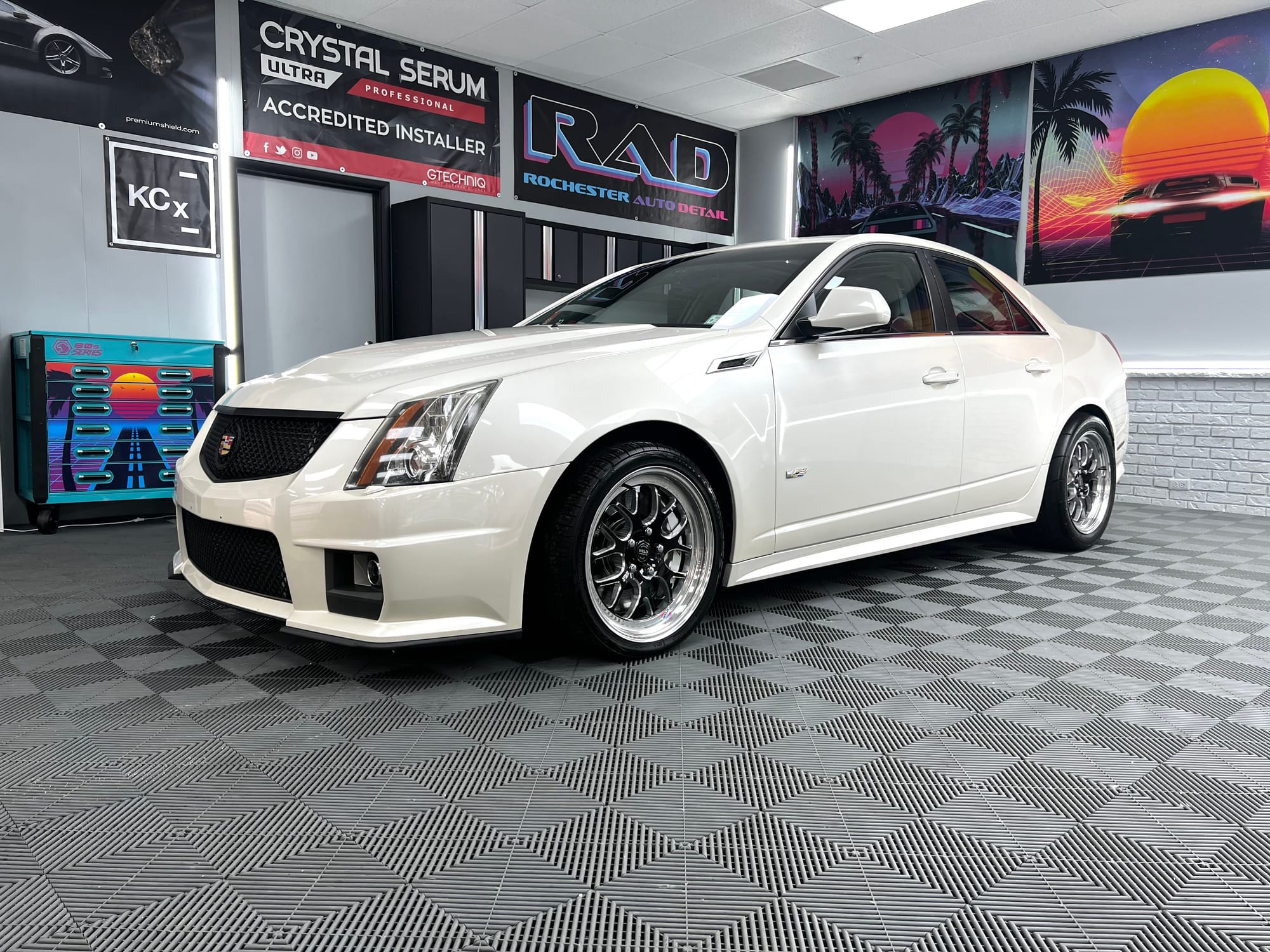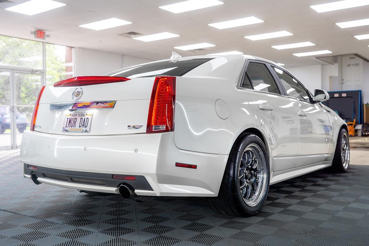 ~750whp 2011 Cadillac CTS-V Sedan in White Diamond with 73,960 miles for sale! This V2 is powered by a 6.2L LSA that’s topped with a Modern Airflow Dynamics ported supercharger, utilizing a 2.45” GripTec and 9.1 ATI lower (16-17psi) pulley combo. The LSA was also fitted with a BTR stage 3 torque cam along with BTR pushrods/dual valve springs, and a trunnion upgrade. The fuel system features an Aux fuel pump, followed by a set of FID 1300cc injectors and an E85 flex fuel sensor. Further equipped with Texas Speed headers/x-pipe, QTP low-profile cutouts, Vadder Destroyer dual heat exchanger, 8 gallon ice tank, 0FX2GV EMP pump, ported 102mm snout, 102mm Throttle body, ZL1 lid with a reinforced brick, and more. The car was built by Tony Bozzi, and tuning was handled by Justin White Tuned with an estimated output of 750-790whp. As for track times, the previous owner claims the car ran a 9.9x @ 137mph in the 1/4-mile. The exterior looks absolutely amazing as it received a 1-step paint correction, and Gtechniq Crystal Serum Light 5 year ceramic coating was applied to the stunning White Diamond paint by Rochester Auto Detail on 9/10/2022 (Gtechniq coating applied to wheels/calipers/all glass as well). There are currently only 6K miles on the modifications! Clean title!