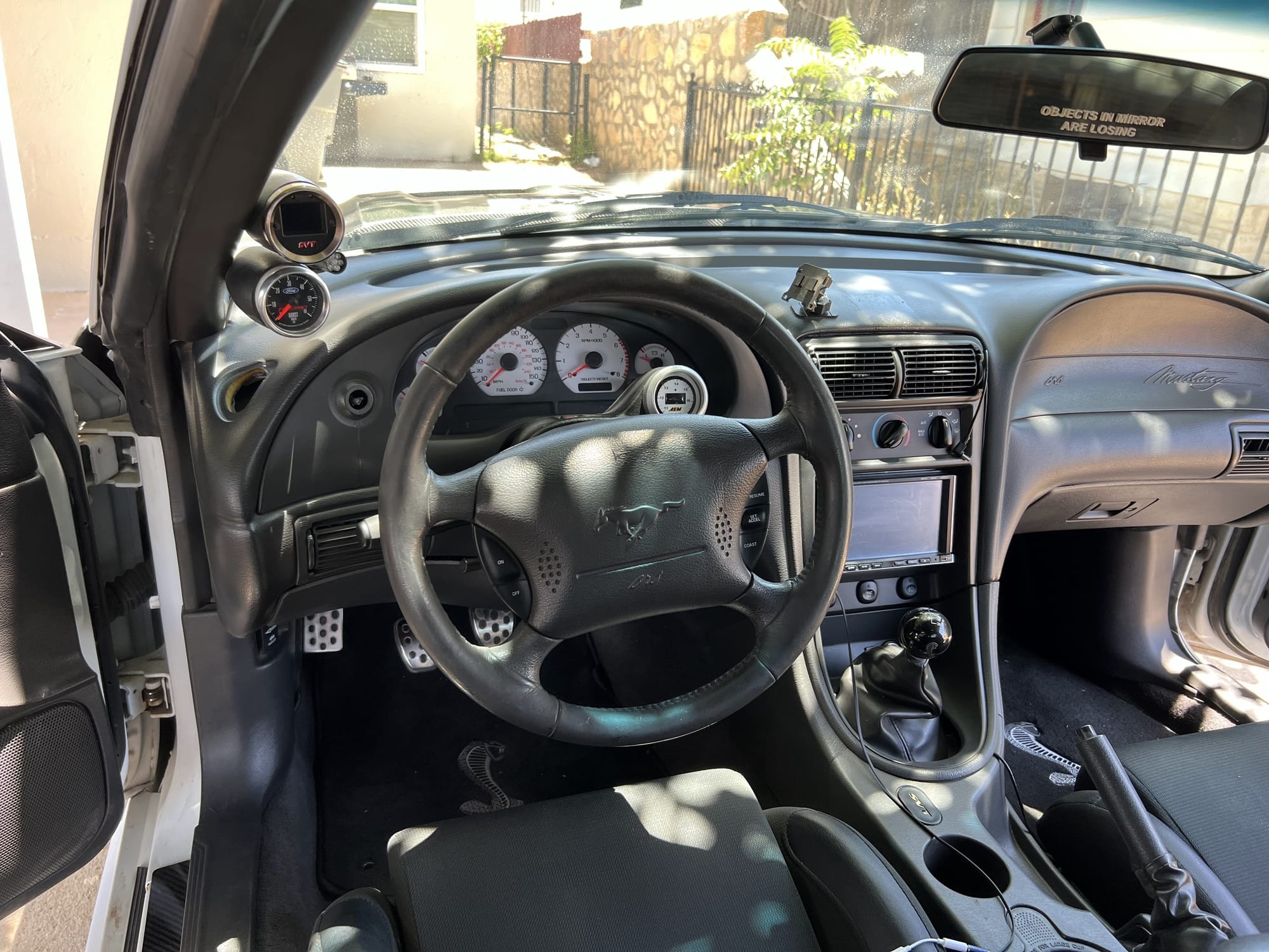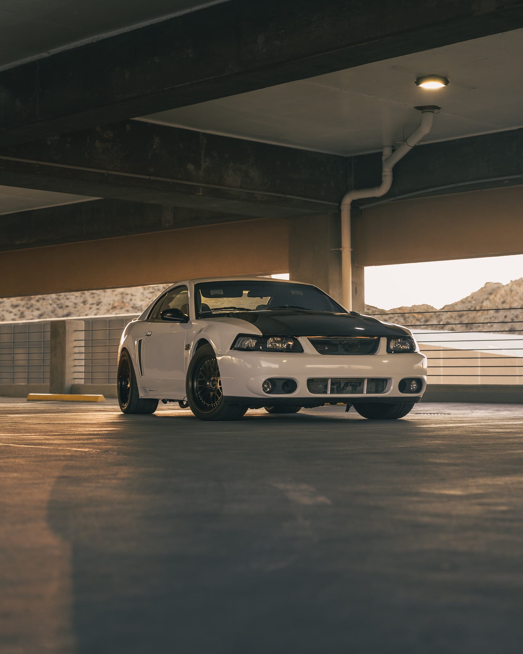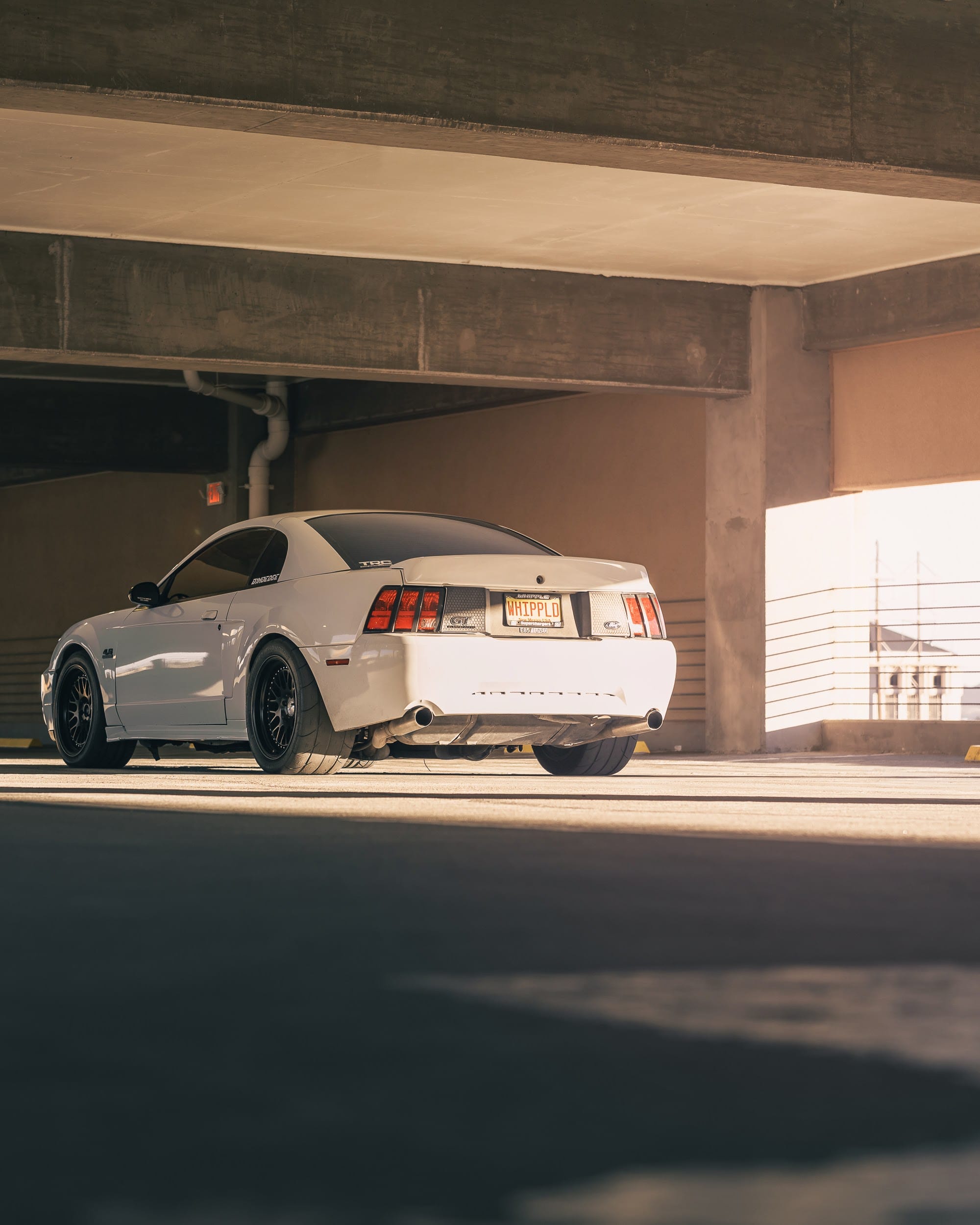 760whp 2003 Ford Mustang GT in Oxford White with 126,000 (Chassis) miles for sale! The owner has owned this stunning New Edge Mustang for over 9 years, he’s poured a lot of time and money into the build, no shortcuts were taken, this is a quality setup. The car features a built Terminator swap, beginning with a built engine (assembled by Segura’s Automotive) with a Whipple 2.9L Gen 4 supercharger atop, all backed by a Tremec T-56 6-speed manual transmission that’s paired with a McLeod RXT twin disc clutch. This beast of a setup is fueled by a return style fuel system with twin Walbro 465 pumps, followed by ID1000 injectors, and Fore fuel rails. Following the T-56, the drivetrain also features 31 spline axles, Ford Performance differential with carbon discs, Ford Racing differential cover, and 3:55 gears. Additional upgrades include a polished 3.0 GripTec pulley, Metco pulleys, American Racing long tube headers, MagnaFlow Magnapack exhaust, AFCO heat exchanger, Mishimoto radiator, trunk mounted ice tank with an EMP pump, J2Fab 1” intercooler mod, and more. Tuning was handled by Chris from Dynoedge with an output of 760whp/750wtq. As for cons, the paint is not perfect, however it’s still in overall good condition as it was recently corrected/ceramic coated on 6/23/23. There’s also currently a small leak from the brake master cylinder, and the hood could use a slight adjustment. There’s roughly 15-20K miles on the built engine, and ~3K miles on the Whipple. Clean title in hand!