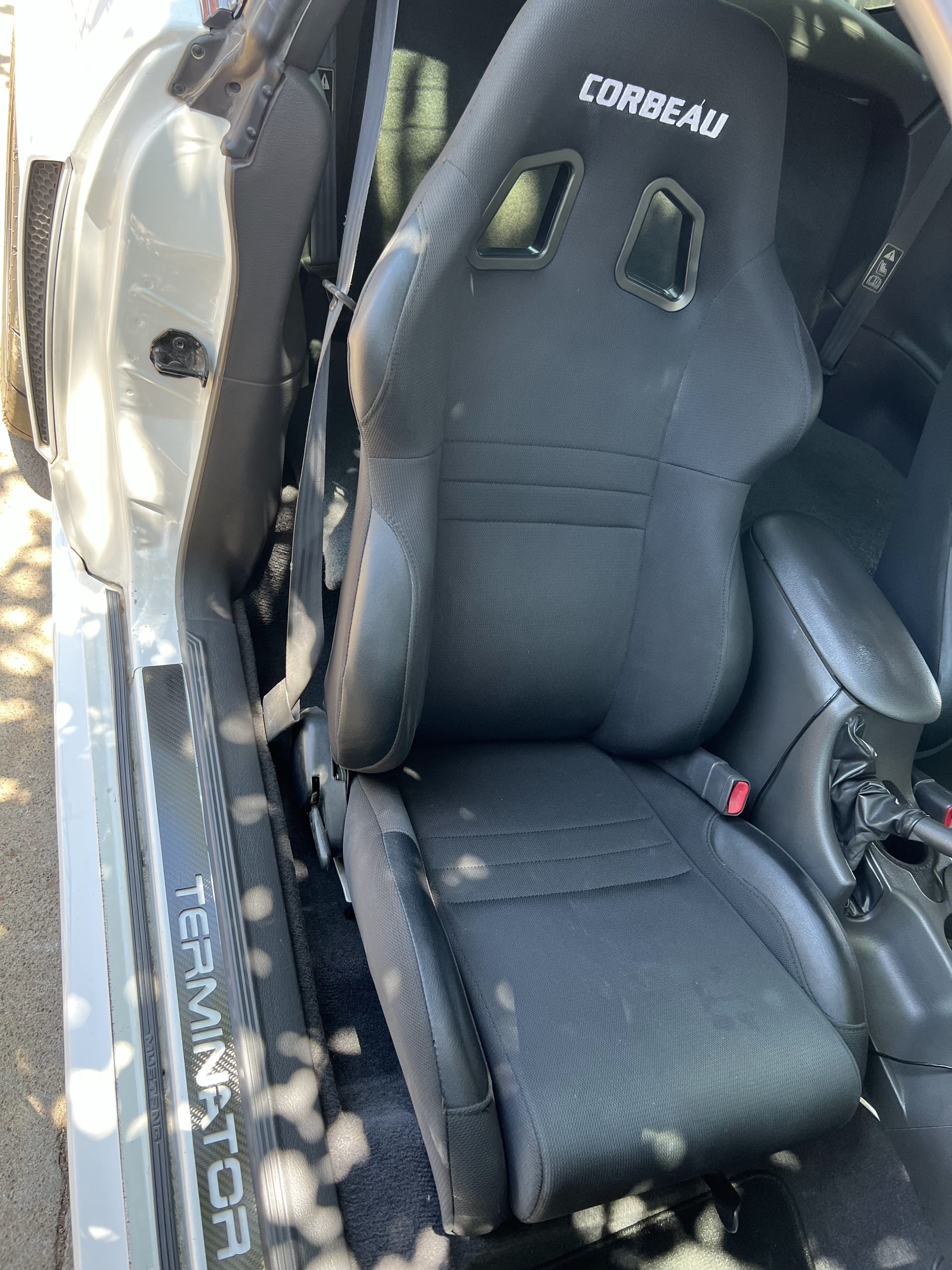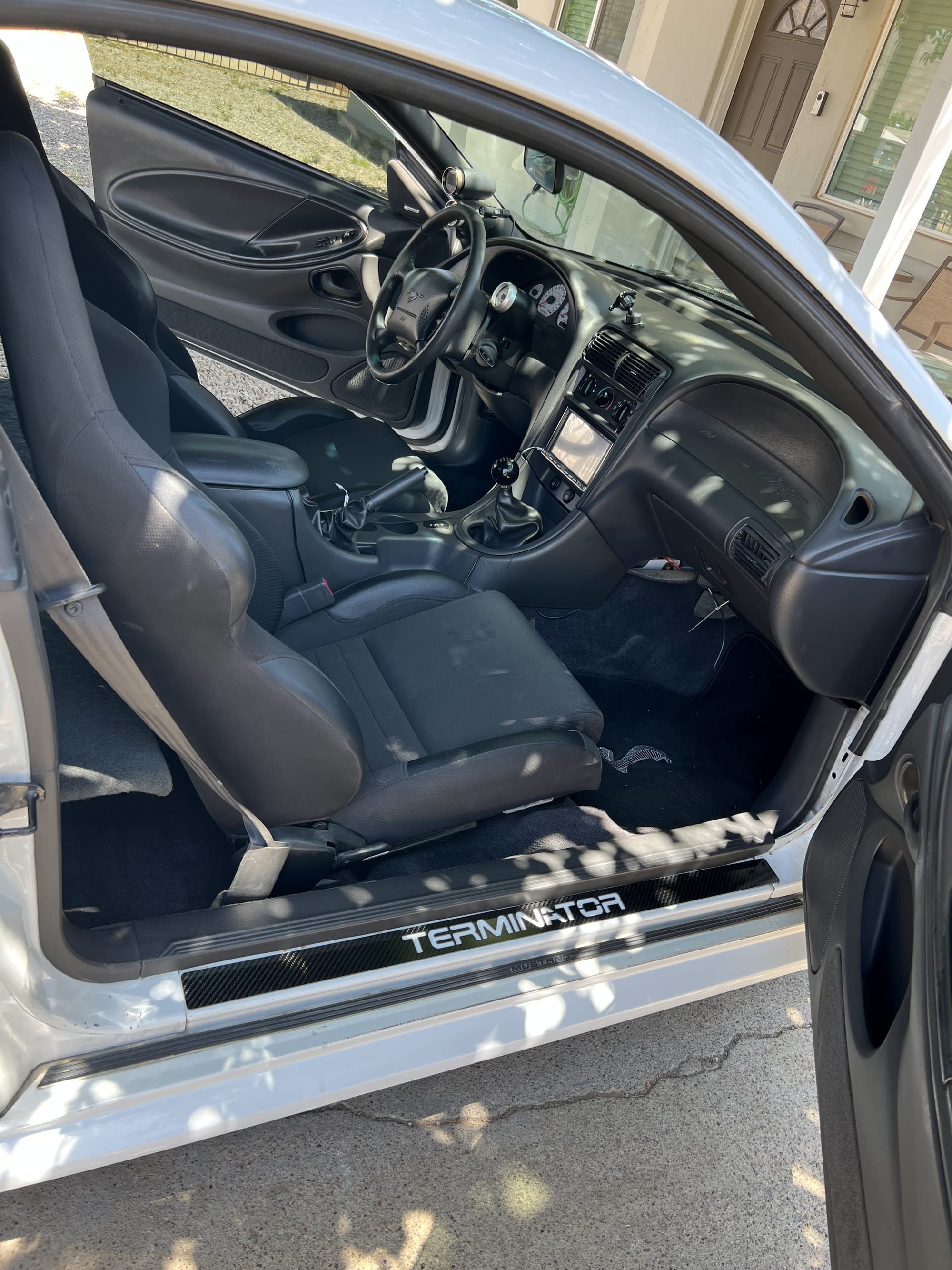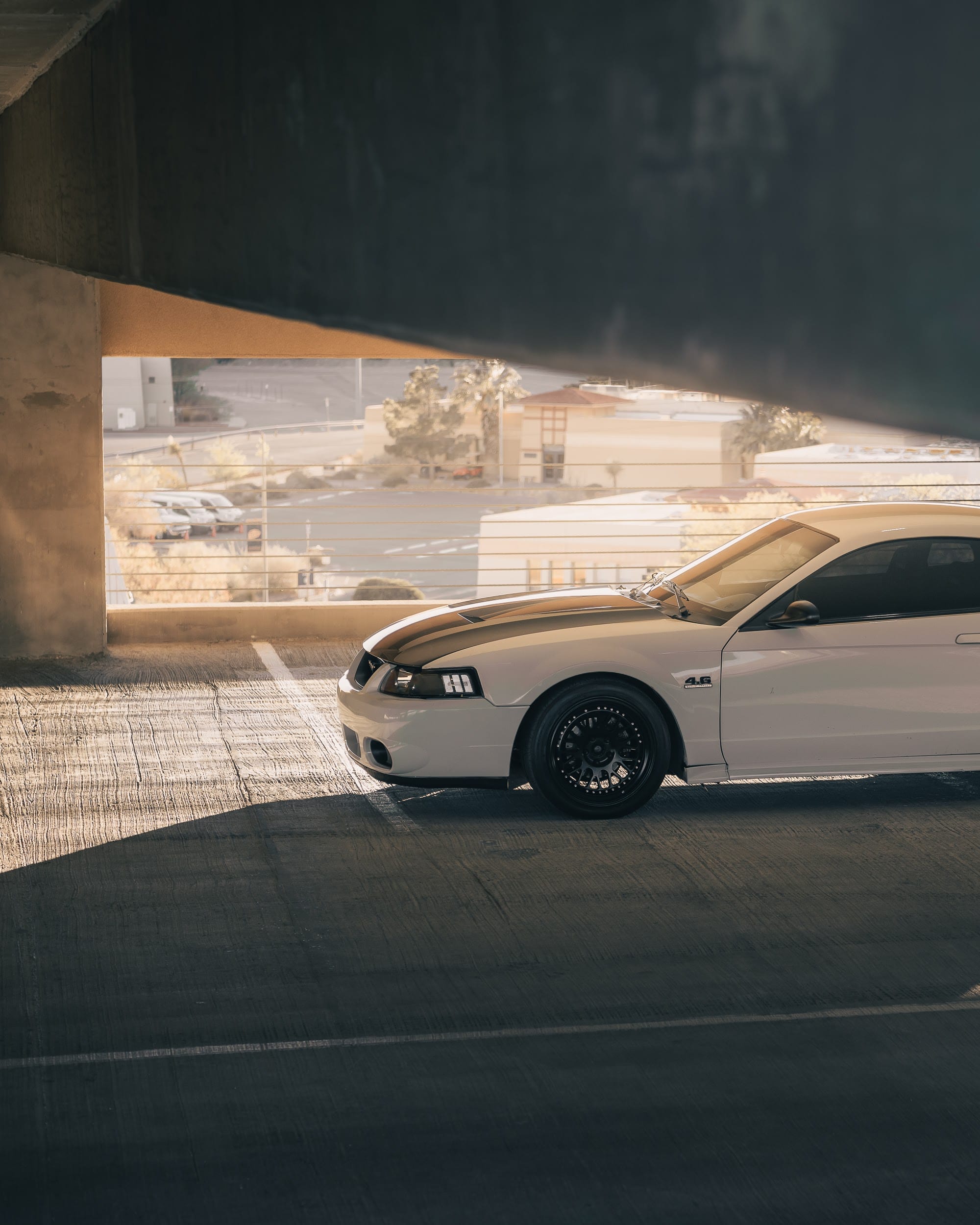 760whp 2003 Ford Mustang GT in Oxford White with 126,000 (Chassis) miles for sale! The owner has owned this stunning New Edge Mustang for over 9 years, he’s poured a lot of time and money into the build, no shortcuts were taken, this is a quality setup. The car features a built Terminator swap, beginning with a built engine (assembled by Segura’s Automotive) with a Whipple 2.9L Gen 4 supercharger atop, all backed by a Tremec T-56 6-speed manual transmission that’s paired with a McLeod RXT twin disc clutch. This beast of a setup is fueled by a return style fuel system with twin Walbro 465 pumps, followed by ID1000 injectors, and Fore fuel rails. Following the T-56, the drivetrain also features 31 spline axles, Ford Performance differential with carbon discs, Ford Racing differential cover, and 3:55 gears. Additional upgrades include a polished 3.0 GripTec pulley, Metco pulleys, American Racing long tube headers, MagnaFlow Magnapack exhaust, AFCO heat exchanger, Mishimoto radiator, trunk mounted ice tank with an EMP pump, J2Fab 1” intercooler mod, and more. Tuning was handled by Chris from Dynoedge with an output of 760whp/750wtq. As for cons, the paint is not perfect, however it’s still in overall good condition as it was recently corrected/ceramic coated on 6/23/23. There’s also currently a small leak from the brake master cylinder, and the hood could use a slight adjustment. There’s roughly 15-20K miles on the built engine, and ~3K miles on the Whipple. Clean title in hand!