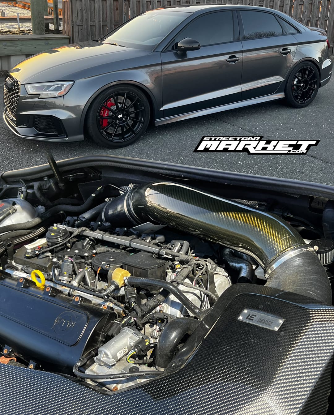800+whp 2020 Audi RS3 in Daytona Gray Pearl with 8,000 (Chassis) miles for sale! This clean RS3 is powered by a built motor that’s equipped with an Iroz IMS850S turbo kit, and mated to a 7-speed dual-clutch automatic transmission with a DCT 1300HD clutch/Iroz DQ500 flywheel upgrade. The bottom end of the engine features EuroCode’s Mahle/Carrillo piston and rod combo with upgraded CARR bolts for 8,000+RPM, topped with a EuroCode CNC ported DAZA cylinder head. The fuel system features Audi 8V RS brushless in-tank dual OEM fuel pumps, EC low pressure injectors, SRM flex fuel kit, and a P3 ethanol sensor voltage adapter. Additional upgrades include APR throttle body inlet, BFI stage 1 full billet engine mount kit, IMS intercooler (oversized), AWE SwitchPath exhaust, Diamond black RS-style tips, and more. Modifications were installed by EuroCode/TCR, and the car was street tuned by Darin at Double D Tuning. Only 500 miles on the build, all invoices are available! Clean title!