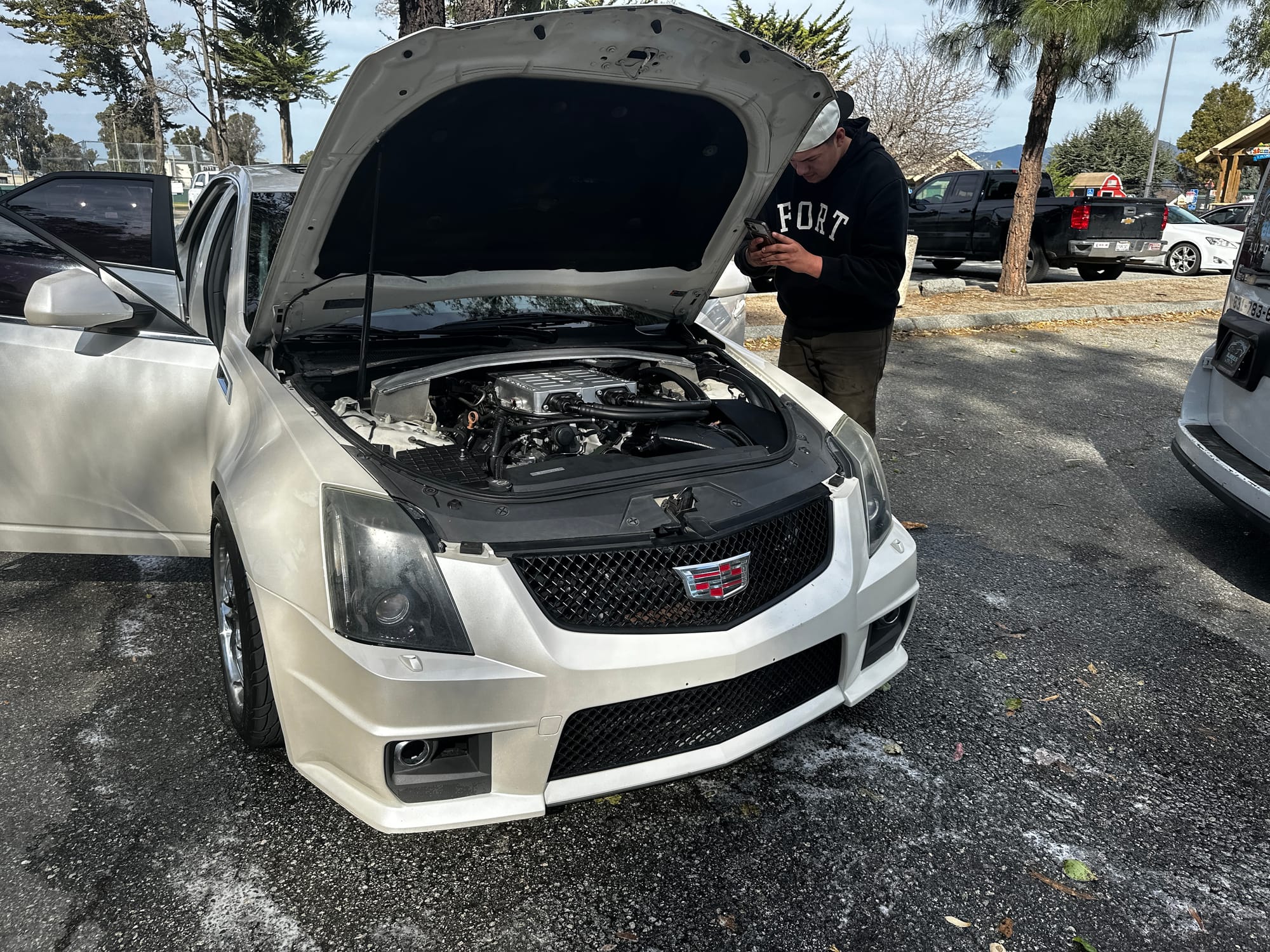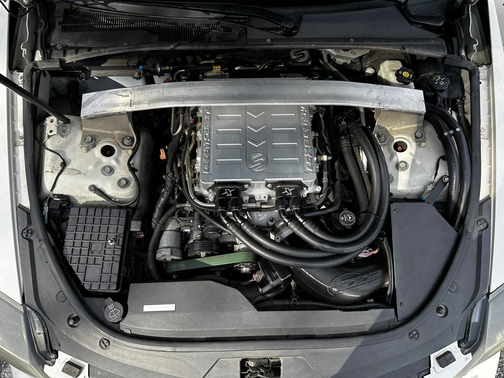 800whp 2013 Cadillac CTS-V Sedan in White Diamond with 62,000 (Chassis) miles for sale! This V2 is powered by a built LSA with a Synergy Race ported/rebuilt LSA supercharger on top, delivering a solid boost in power, which is transferred to the rear through a 6L90 6-speed automatic transmission. All engine work was completed by Synergy Motorsports with receipts/paperwork for all of the work, details and specifics can be provided to serious buyers. Key engine upgrades include a set of Wiseco pistons, Compstar rods, Clevite rod bearings, WCCH heads, GP Tuning 2.5 cam, CHE trunnion rocker kit, BTR .650 valve springs, Synergy ported oil pan/modified oil pick-up, and more. Following the port work/rebuild, the supercharger system also features a fully spec’d Synergy lid, Griptec 2.45” upper pulley, ATI Balancer 9.1 ring, Nick Williams 102mm throttle body, and DDP 5” intake. The fuel system features a DSX auxiliary kit with an upgraded pump along with a set of FIC 1700cc injectors, and a DSX flex fuel sensor (the pump and injectors have less than 100 miles). Additional upgrades include American Racing 2” long tube headers, all titanium exhaust piping with v-bands and Borla XR1 mufflers, Synergy complete trunk tank kit, Track Attack intercooler, Ahobbs front coilovers, full WELD Racing drag pack, Carlyle 15” conversion, and more. Both Synergy Motorsports and M&M Performance took part in the build, while tuning was handled by @slwcddy, this setup churned out 800whp (tuned on E85 only). As for performance metrics, the car ripped a 9.766 pass in the 1/4-mile with the previous owner, it’s only been to the track once with the current owner the same day it was purchased, and it ran a 10.1. There are currently 22K miles on the build. Invoices are available! Clean title!