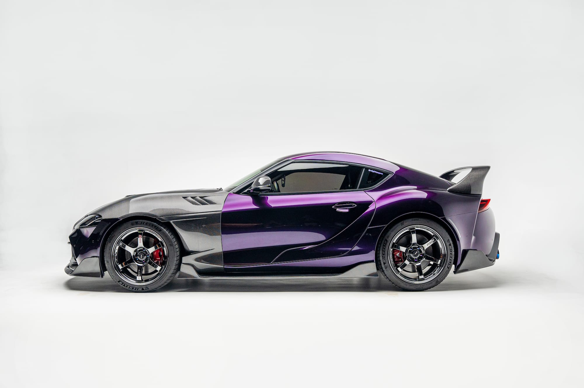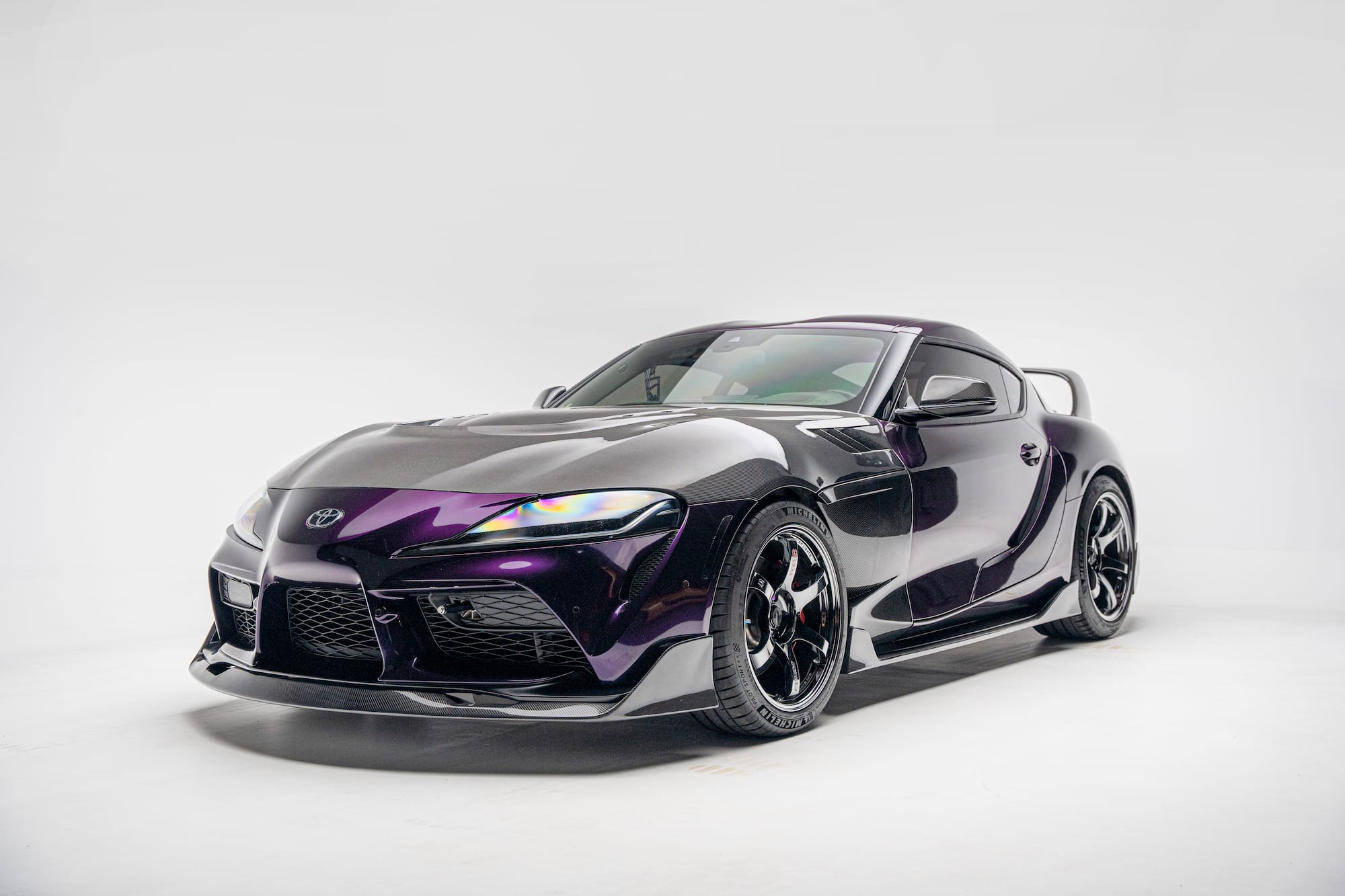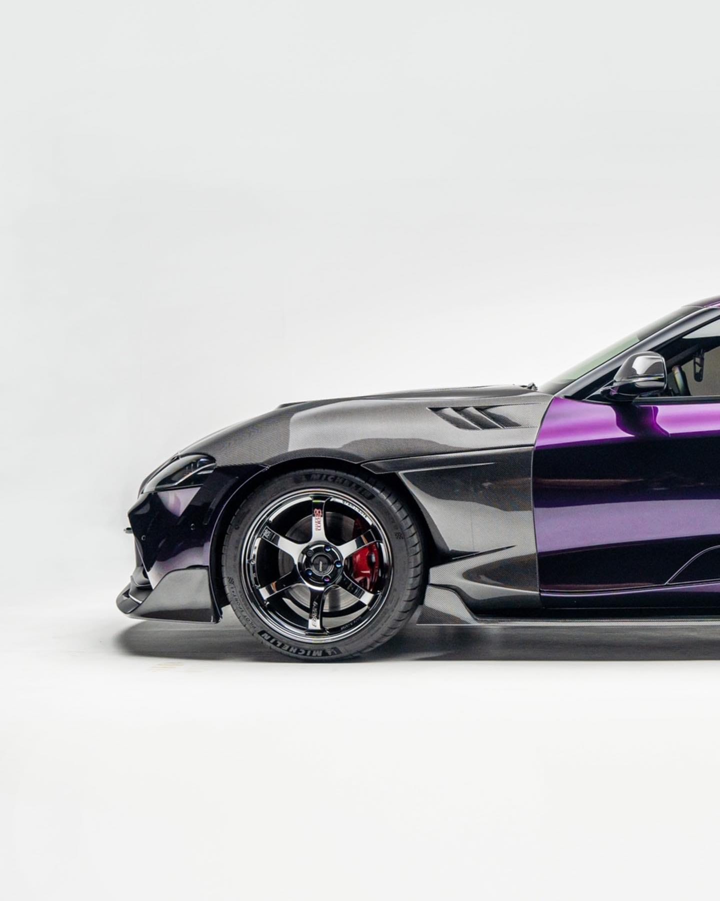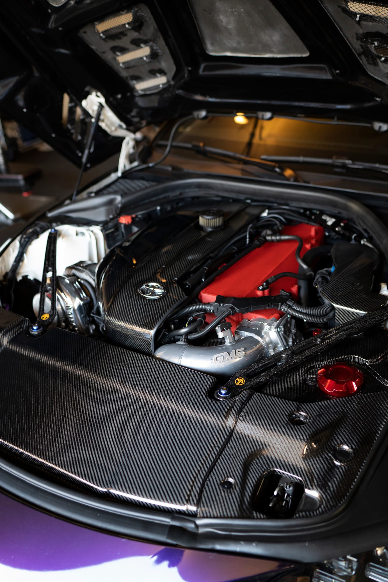 805whp 2020 Toyota GR Supra in Absolute Zero (Wrapped) with 31,000 miles for sale! This is an incredibly fast, turn key Supra that’s armed with over $38K in parts (not including taxes and labor), all of which were installed by Speedlogic, Haus of Power, and Studio RSR. Powered by a 3.0L B58 that’s paired with a GMS G600 turbo kit, and mated to a Pure Drivetrain Solutions stage 1 transmission. Further equipped with ID1050X injectors, Visconti stage 1 LPFP, ReFlex controller, Tomei titanium exhaust system, CSF/Titan Motorsports Prototype Intake Manifold, Inozetek Midnight Purple wrap, numerous carbon fiber components, and more. Tuning was handled via EcuTek by Mikey Botti with an output of 805whp, there are multiple maps with the highest map running 39psi. The car has been heavily maintained, the owner only runs Motul 300v 5W-30, and it’s changed every 3K miles. There are currently only 12K miles on the setup, all receipts for the work performed are available! Clean title!