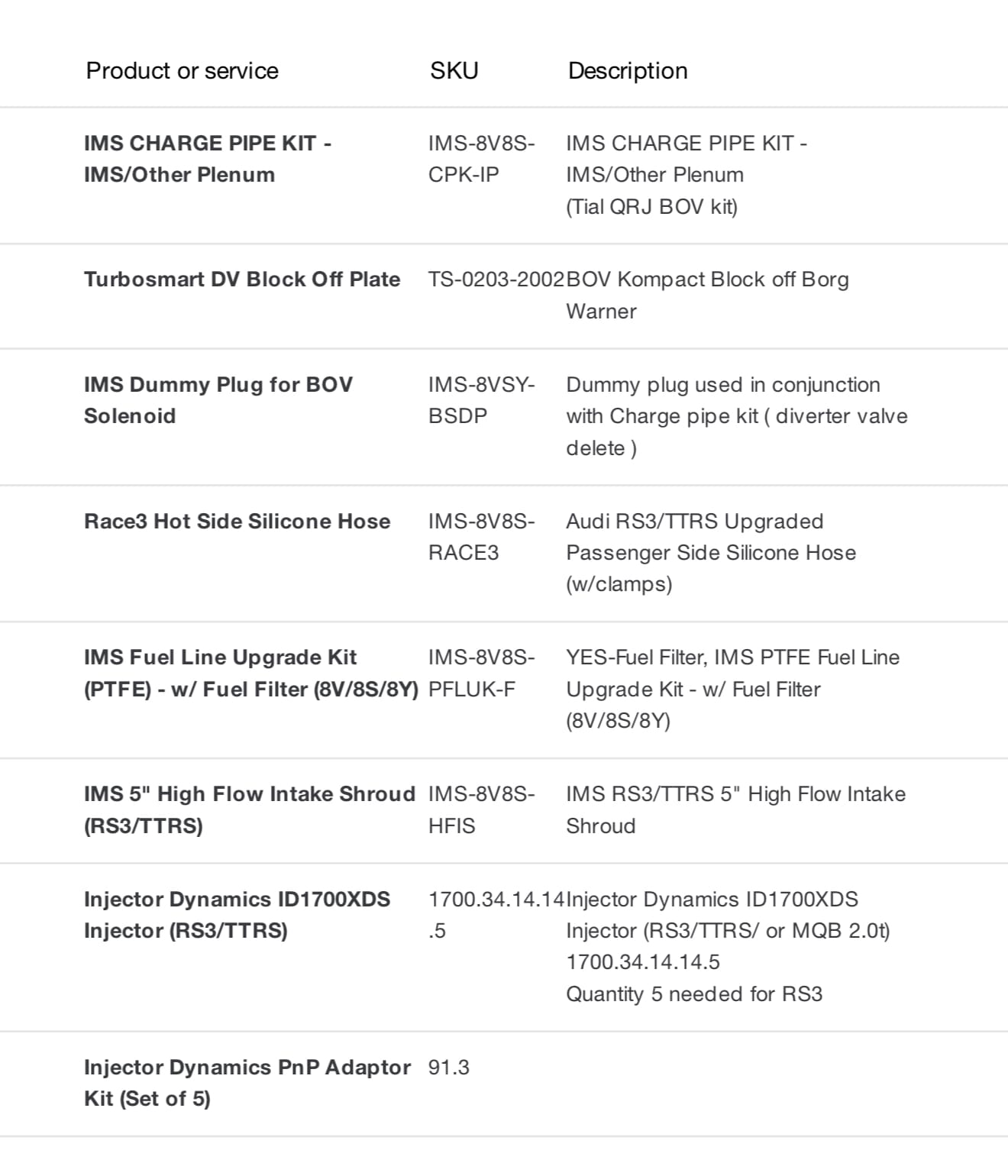 - Injector Dynamics PnP Adapter Kit