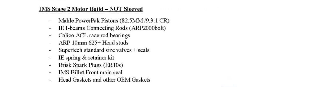 - IMS Stage 2 Engine Build (Not Sleeved)
