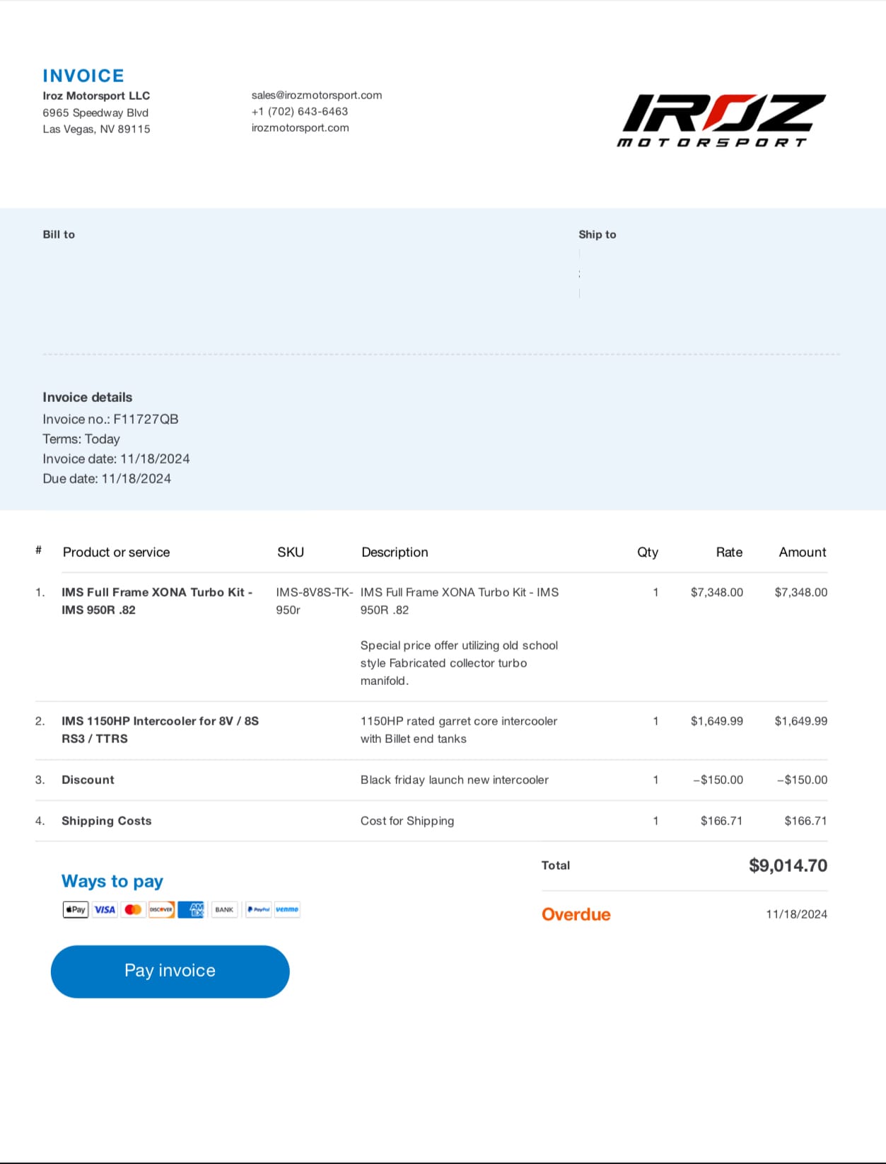 - IMS 1150HP Rated Garrett Core Intercooler w/ Billet End Tanks