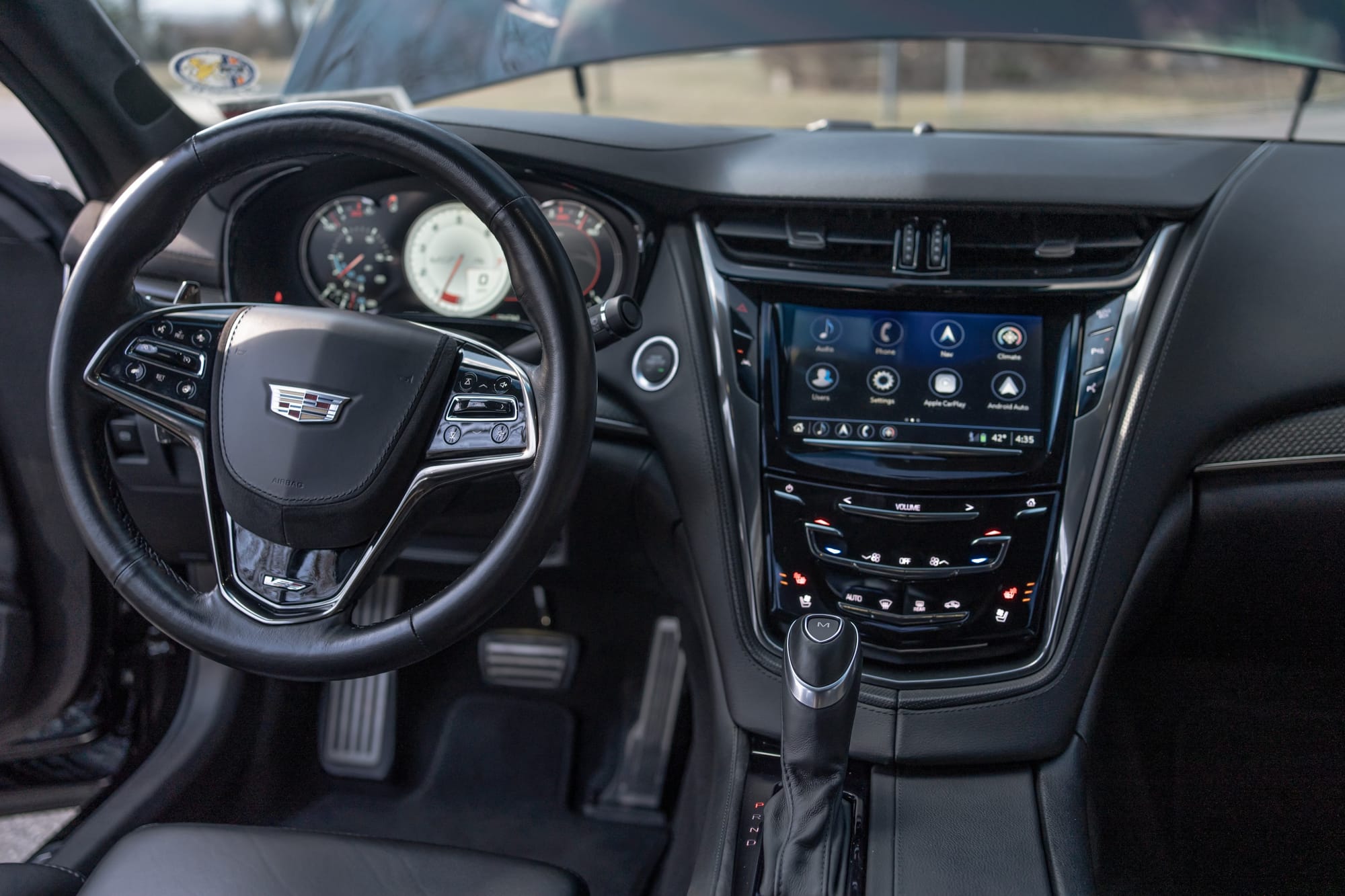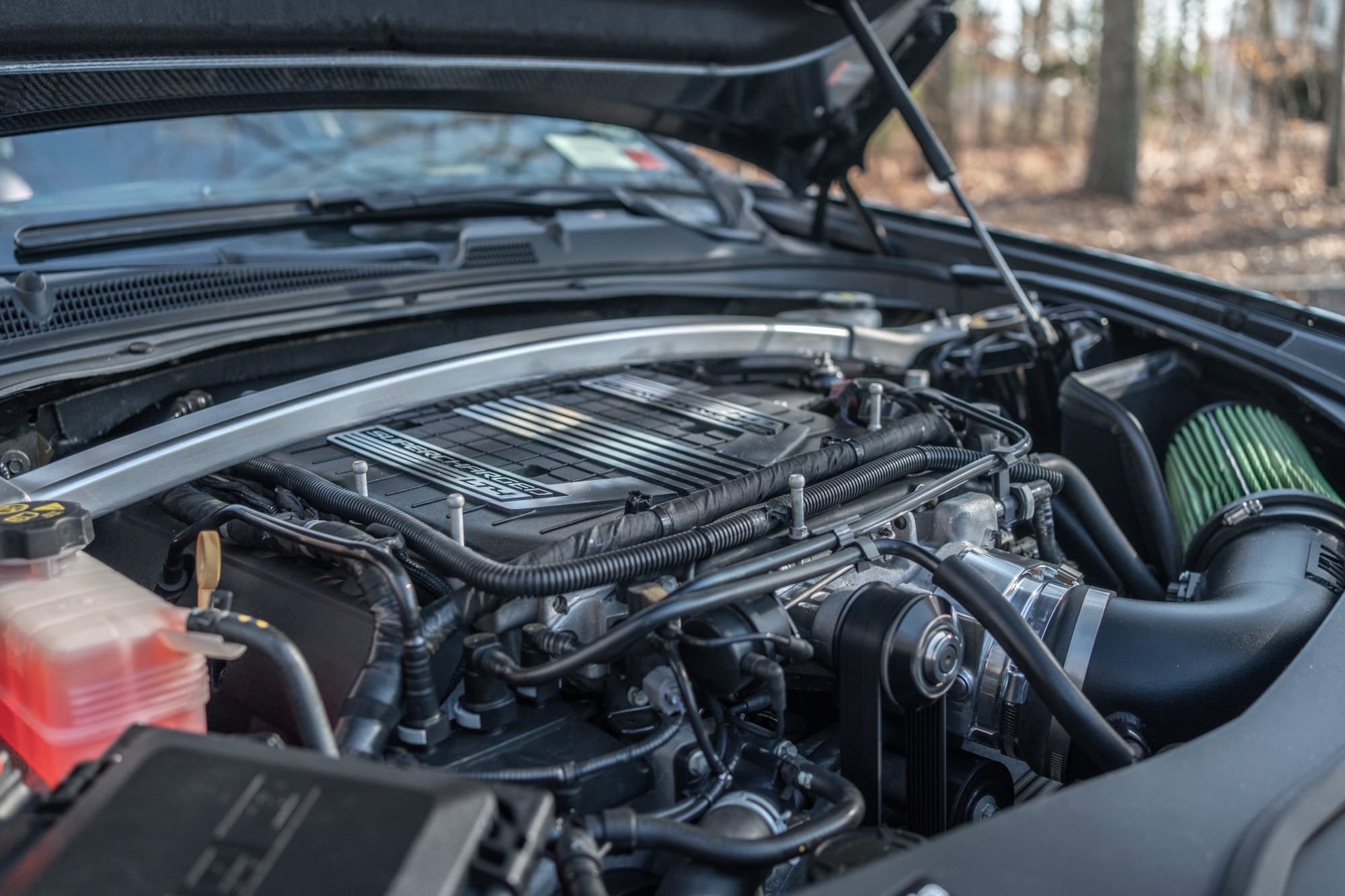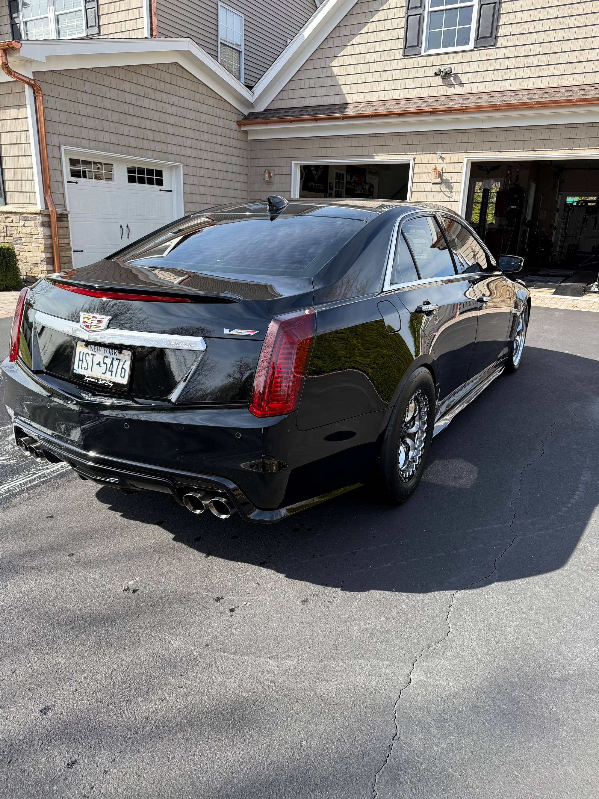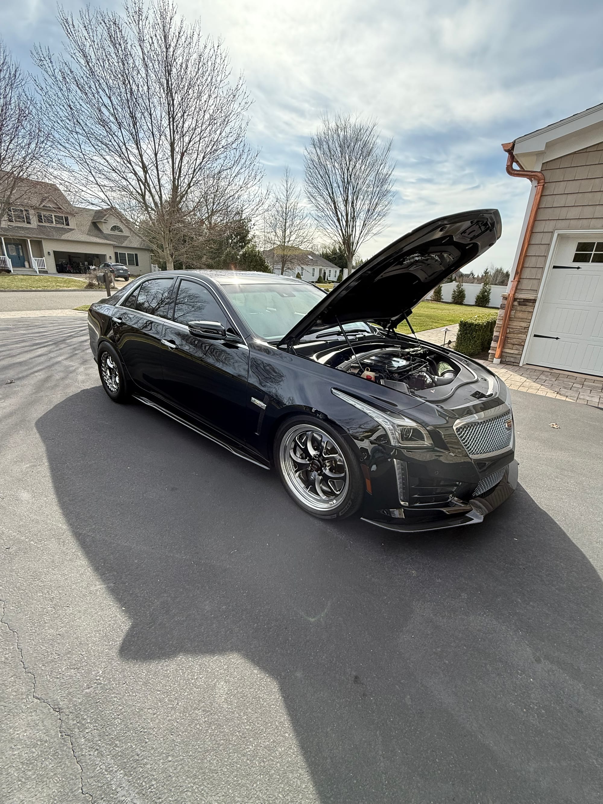 823whp 2017 Cadillac CTS-V in Black with 5,435 miles for sale! There’s no denying this is one mean Cadillac, which was transformed into a strikingly fast and enjoyable street car by JTM Motorsports with the installation of their Stage 4 Package. Powered by a H/C 6.2L LT4 that’s topped with a Kong CNC ported LT4 supercharger, and linked to an 8L90 8-speed automatic transmission. More specifically, the engine was fitted with a JTM custom ground cam along with a set of LME CNC heads with all supporting valvetrain upgrades. The Kong ported supercharger utilizes a Griptec 2.30” upper/15% overdrive lower pulley combination along with a Nick Williams 103mm throttle body, and custom JTM 4.5” cold air intake. As for the fuel system, a JTM low side fuel system was installed, followed by a flex fuel sensor. The ECU calibration was completed on a Mustang 1100SE chassis dyno by JTM Motorsports, resulting in an output of 823whp (full street test drive/data-logging performed as well). Paint Protection Film (PPF) was also applied on the vehicle by Impressive Auto Body (Oceanside, NY), this was custom done on the car, so you cannot tell PPF is on it (not a pre-cut kit). This is a low mileage build with only 2,600 miles on the modifications, laminated print of dyno results, and invoices for the work performed! 1 Owner! Clean title!