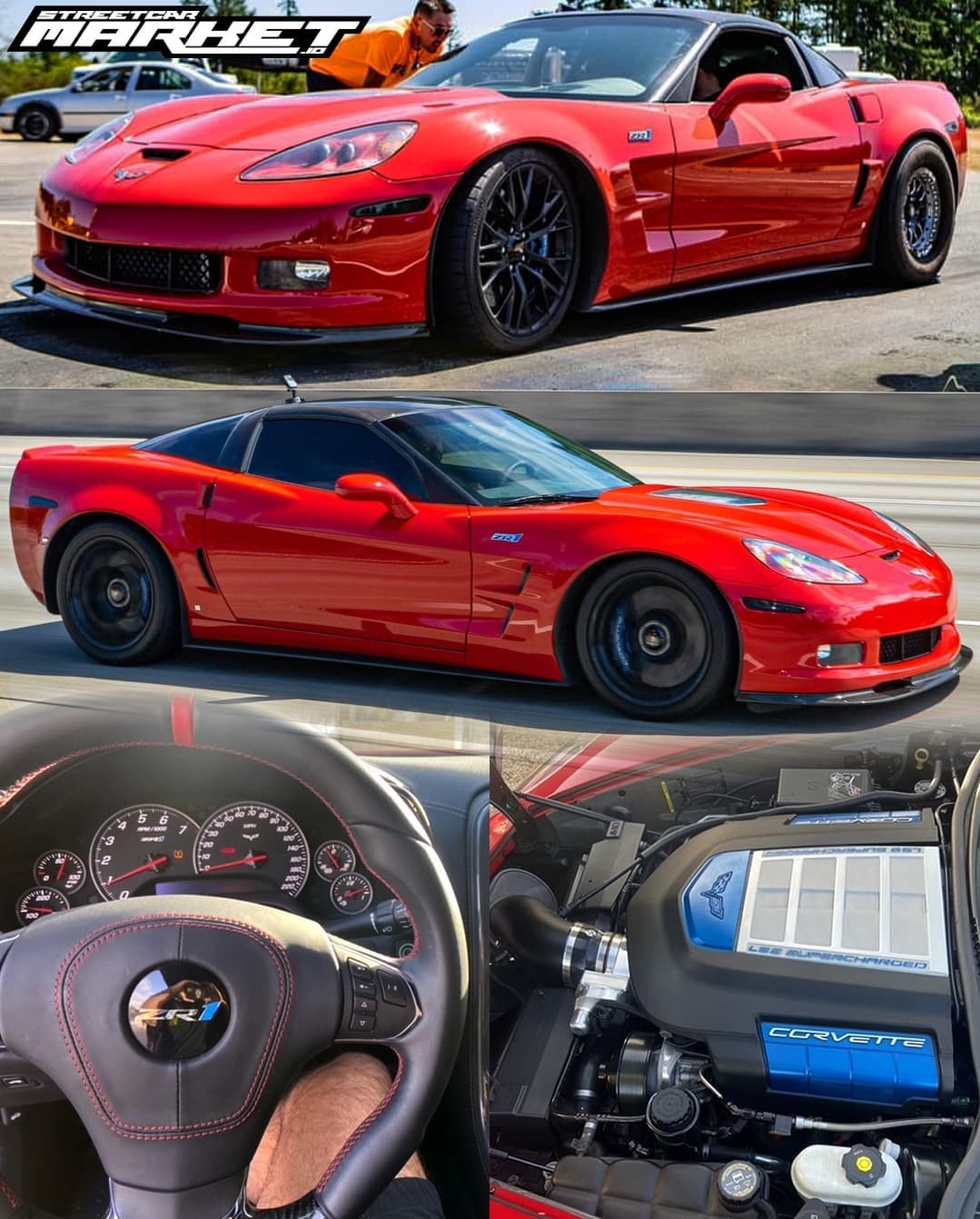 828whp 2009 Chevrolet Corvette ZR1 in Victory Red with 17,100 miles for sale! This menacing ZR1 was built by G-Force MotorSports, and tuned by Kaizenspeed with an enhanced output of 828whp. Powered a supercharged 6.2L LS9 that's topped with a ported factory LS9 supercharger, and mated to a Tremec TR-6060 6-speed manual transmission. This ZR1 is in excellent condition, the owner also recently had the entire car detailed. As for recent maintenance, 500 miles ago the engine oil was drained and refilled, filter/transmission fluid/differential fluid were replaced, and the cooling system was drained and refilled. The 15" wheels will not be included, the owner has the steering wheel, shifter, etc. The car will come equipped with 19" wheels wrapped in Toyo R888R tires, as shown in the photos. 15" Welds can be included for an additional cost. Only 2K miles on the build! Receipts for the whole build and all of the maintenance work are available! Clean title!