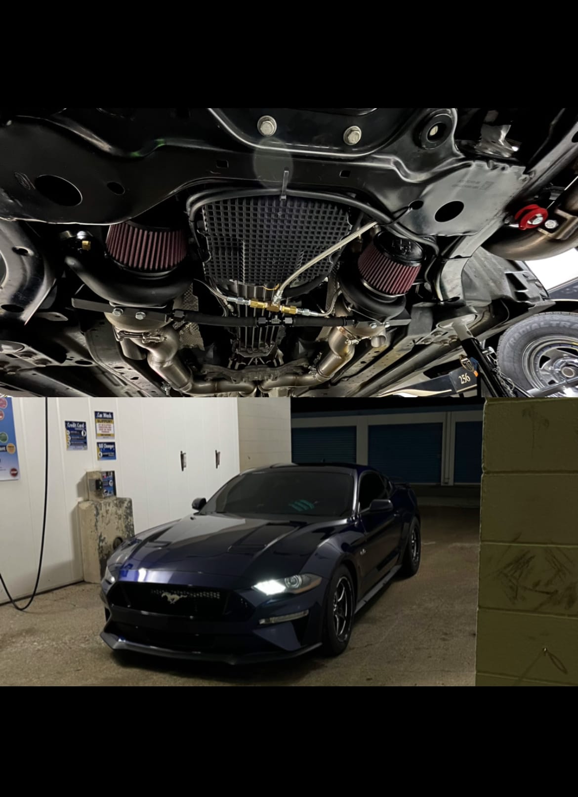 885+whp 2020 Ford Mustang GT PP1 in Kona Blue with 42,650 miles for sale! Power is sourced from a gen 3 5.0L Coyote that’s coupled with a Hellion bottom mount twin turbo kit, which employs a pair of 62/62 turbos, 4-1 Hellion headers, and an eBoost2 controller. The Coyote was also fitted with Boundary oil pump gears/crank sprocket. Fuel delivery is handled by a Fore Innovations dual pump fuel system with dual 295 pumps along with a set of FIC 1000cc fuel injectors. The drivetrain was beefed up with the installation of a built Stage 2 Calimer MT-82 6-speed manual transmission with the 26 spline upgrade, followed by a MGW x-spec short throw shifter, Vengeance stage 2 clutch with a steel braided clutch line, and Driveshaft Shop 3” aluminum driveshaft. Additional upgrades include a UPR vented catch can, 170* thermostat, several Steeda components, IRS subframe support braces/bushing/alignment kit, VMS Racing drag pack, and more. Modifications were installed by Paul’s Automotive Engineering, and tuning was finalized by Lund Racing with an output of 885whp/785wtq on 11psi (dyno sheet included). The car has a 7Ib wastegate spring in both wastegates, it’s been up to 12.5psi with this setup. There are 3 tunes, beginning with a 93 octane tune, E85 tune, and a pump out tune to remove the gas from the tank when switching fuel (this can all be changed throughout the LRX handheld device). There are currently only 3,971 miles on the modifications! Invoices are available! Clean title!