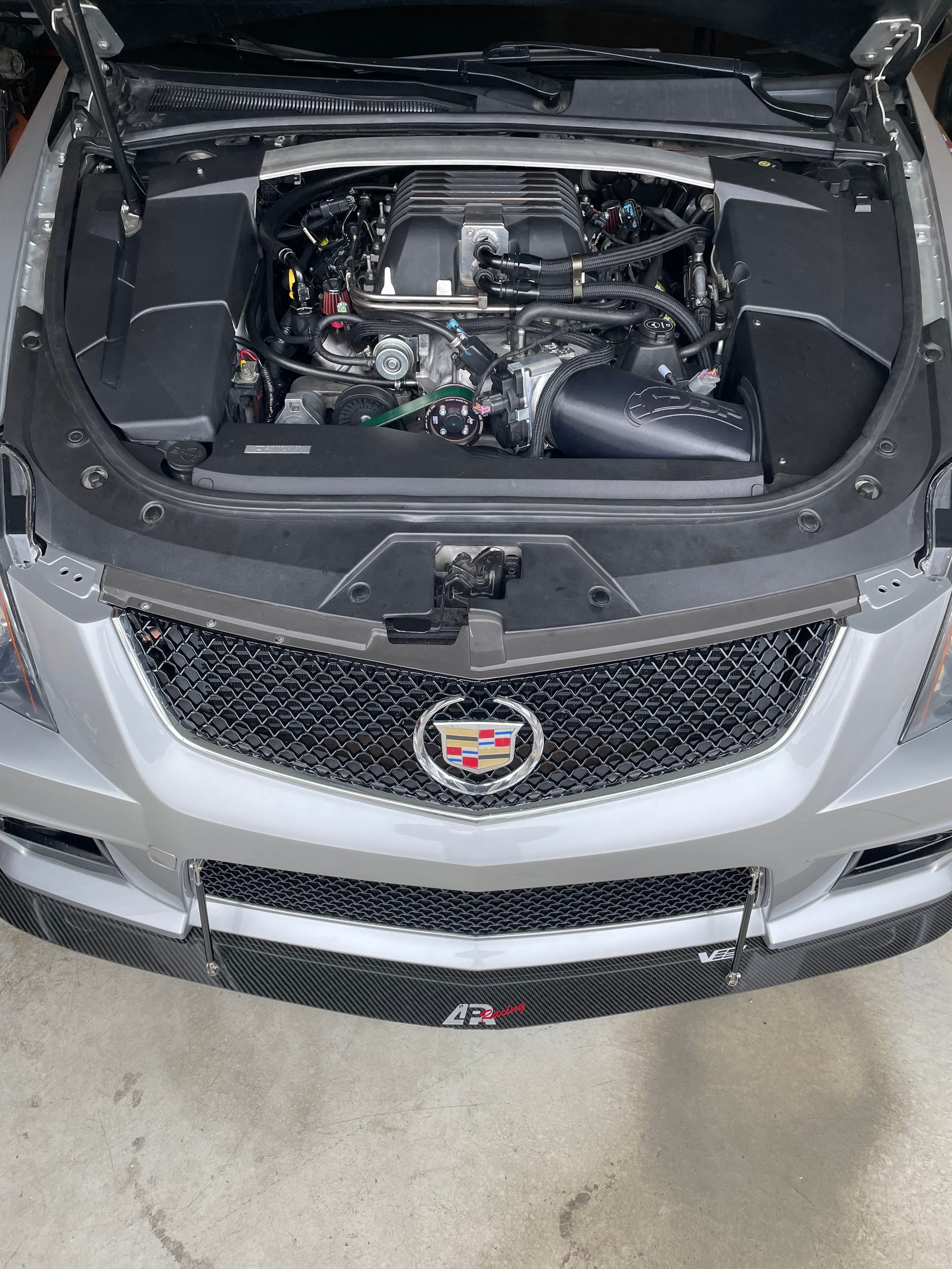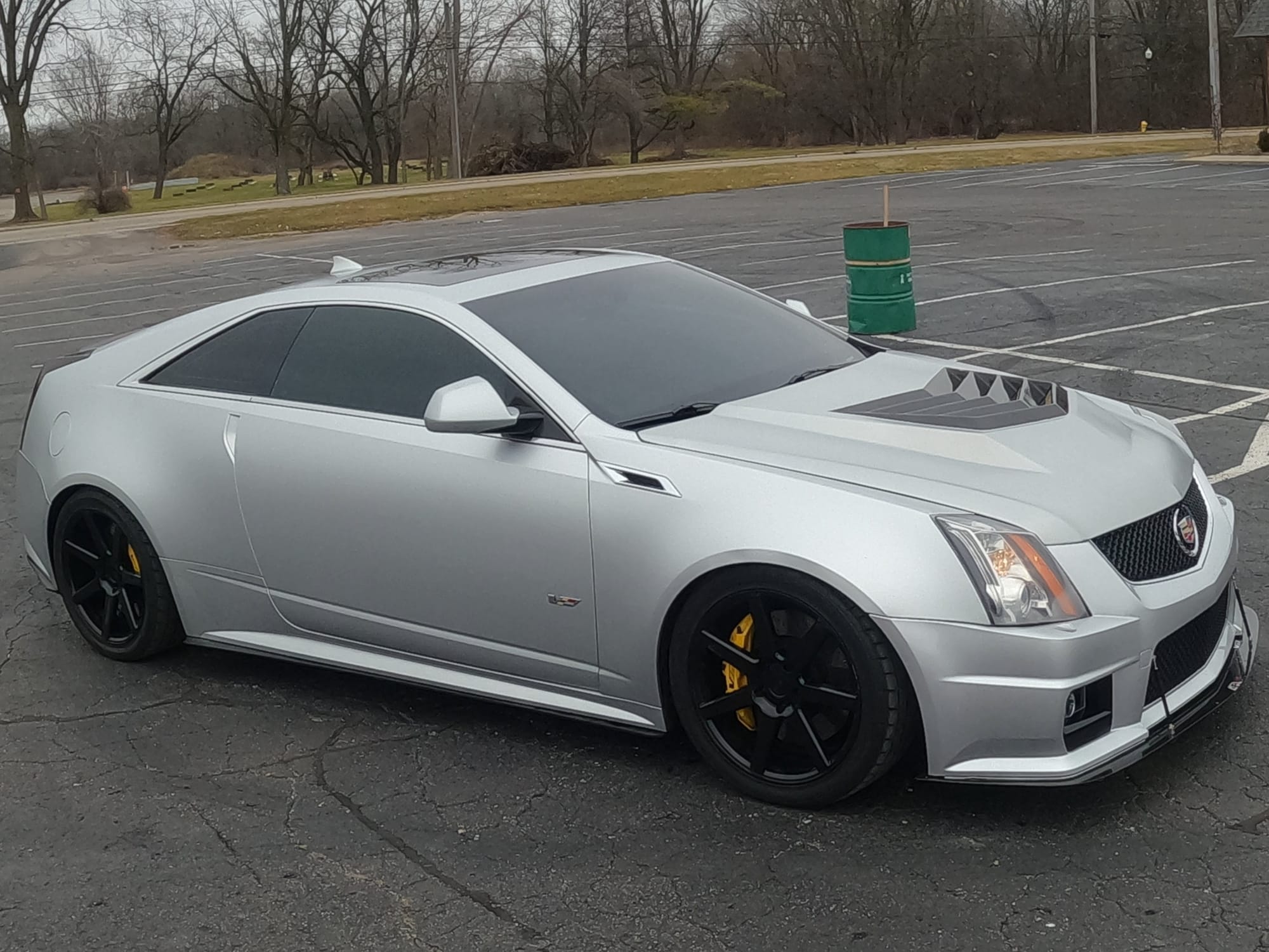 887whp 2013 Cadillac CTS-V Coupe in Silver Frost with 56,300 (Chassis) miles for sale! The Silver Frost Edition was a special run of only 100 CTS-V Coupes featuring special low-gloss matte paint finish. Powered by a Billy Briggs Race Engines built/sleeved LSA that’s fitted with a forged bottom end along with an Outlawed Street custom grind cam, and a pair of MAST LS3 255cc Black Label heads. The engine build was finished off with a Kong 2650 supercharger that currently utilizes a 3.0” upper/9.17” lower pulley combo, followed by a ZL1 lid, Nick Williams 103mm boosted throttle body, and DDP intake. The fuel system consists of FID 1300 injectors, Walbro TI Auto F90000274 primary/secondary pumps, Fore FC3 controller, Fore triple pump module, and a flex fuel sensor to run 93 octane/E85. Power is delivered to the rear through a Circle D Stage 4 6L90 6-speed automatic transmission with a 2800 Circle D converter, which is trailed by a Driveshaft Shop 1-piece dual CV aluminum driveshaft. Additional upgrades include a Vader heat exchanger, 5 gallon ice tank in trunk, Kooks long tube headers, 2” stainless exhaust, QTP cutouts, Eibach lowering springs, and more. Tuning was completed via HP Tuners by DDTech with an output of 887whp/855wtq. This is a very solid setup, there’s still plenty of room for more boost with a smaller pulley. Only 1,500 miles on the build! Clean title!